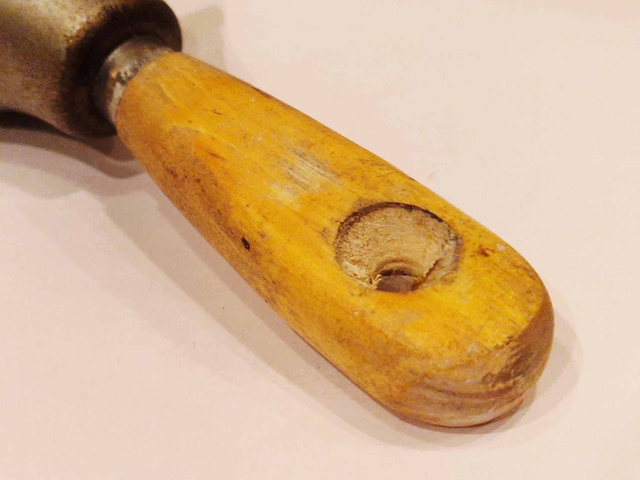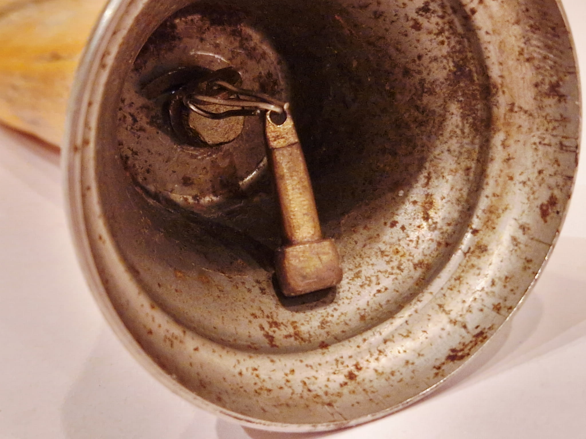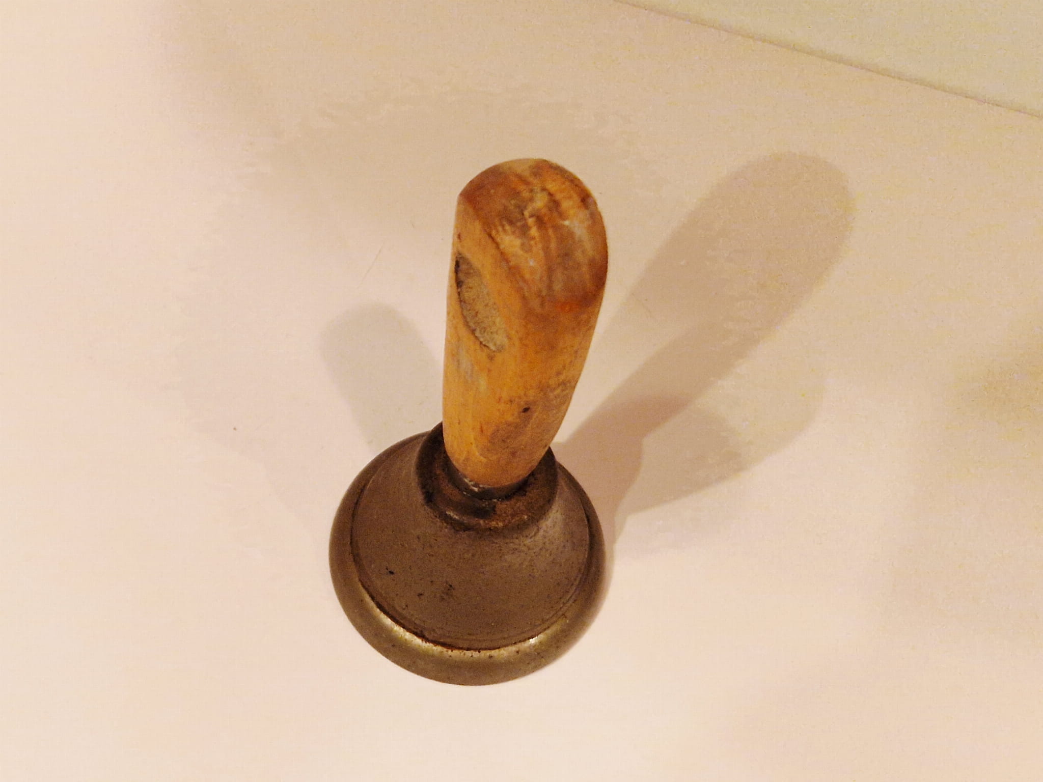 STARY (I poł.) STALOWY DZWONEK STOJĄCY (drewniana rączka)