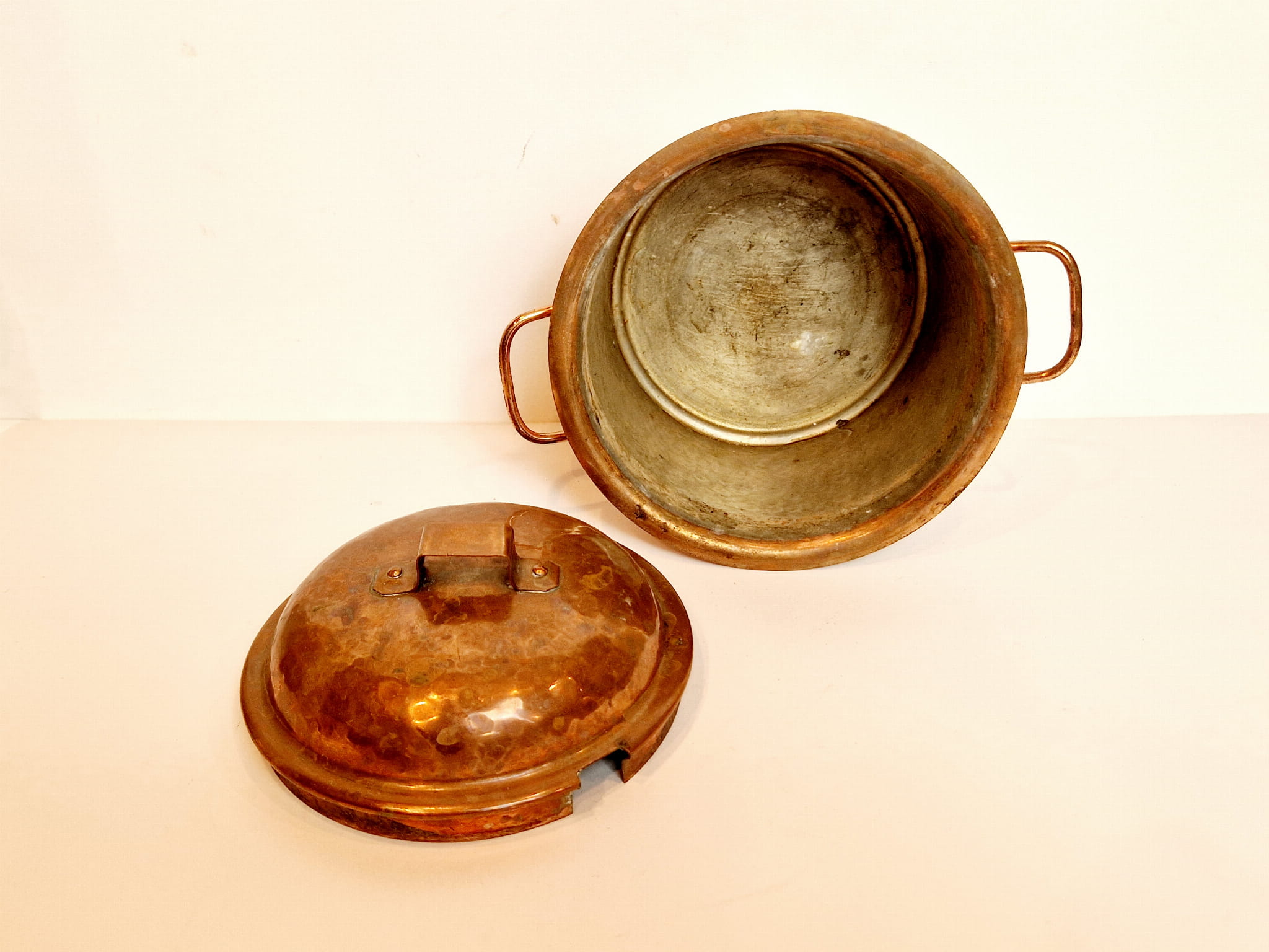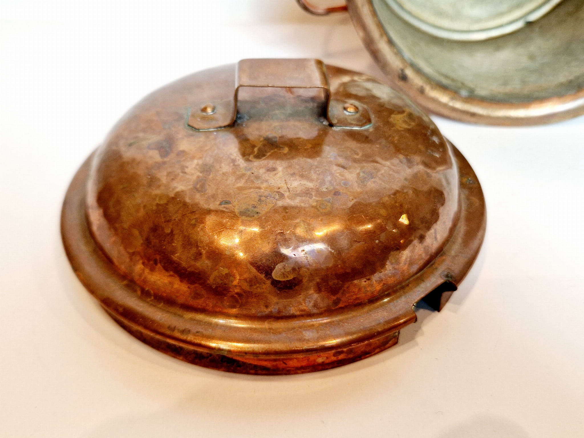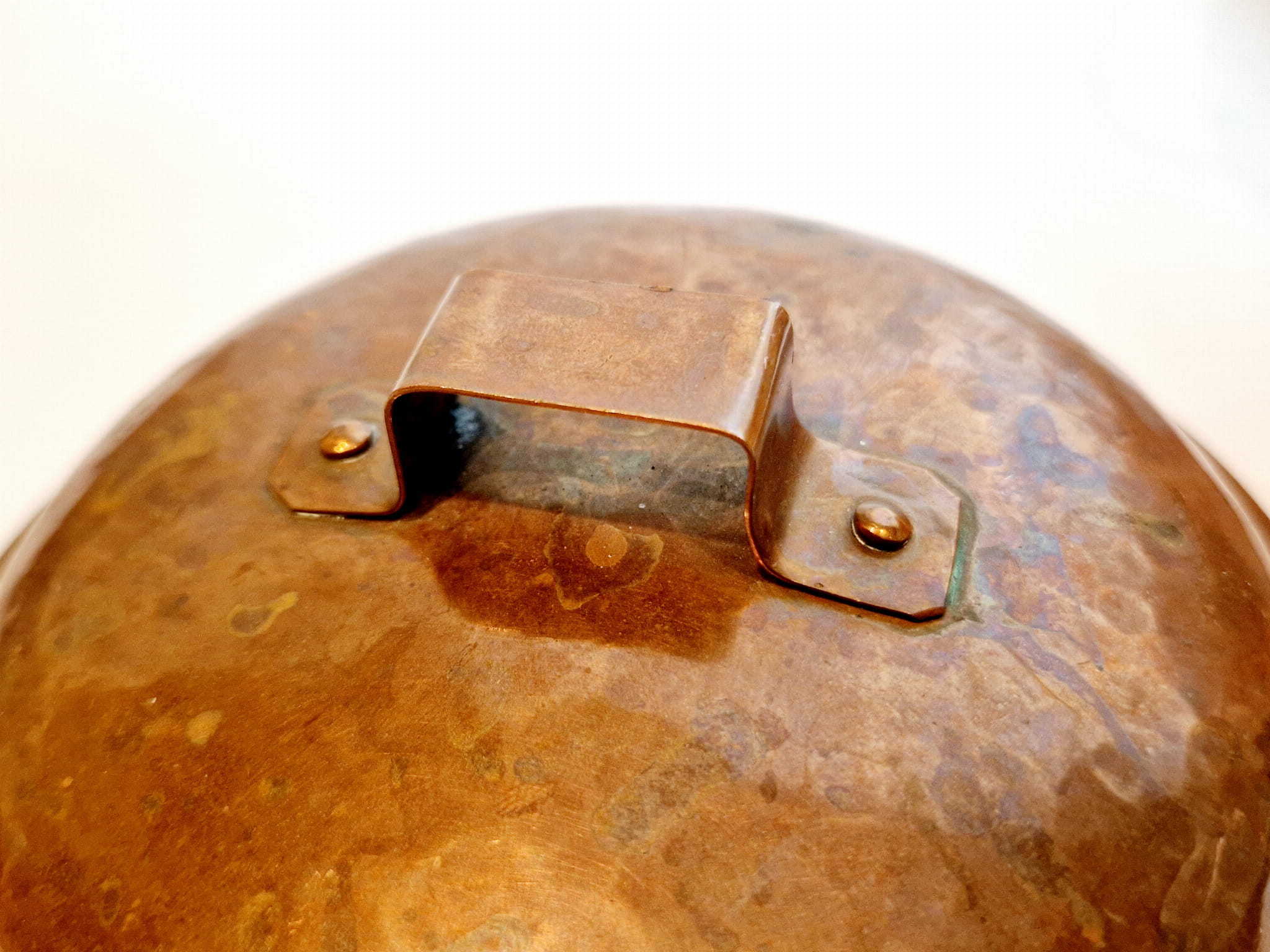 Uchwyt pokrywki - miedziany - nitowany miedzią, w pełni stabilny, w bardzo dobrym stanie zachowania...
