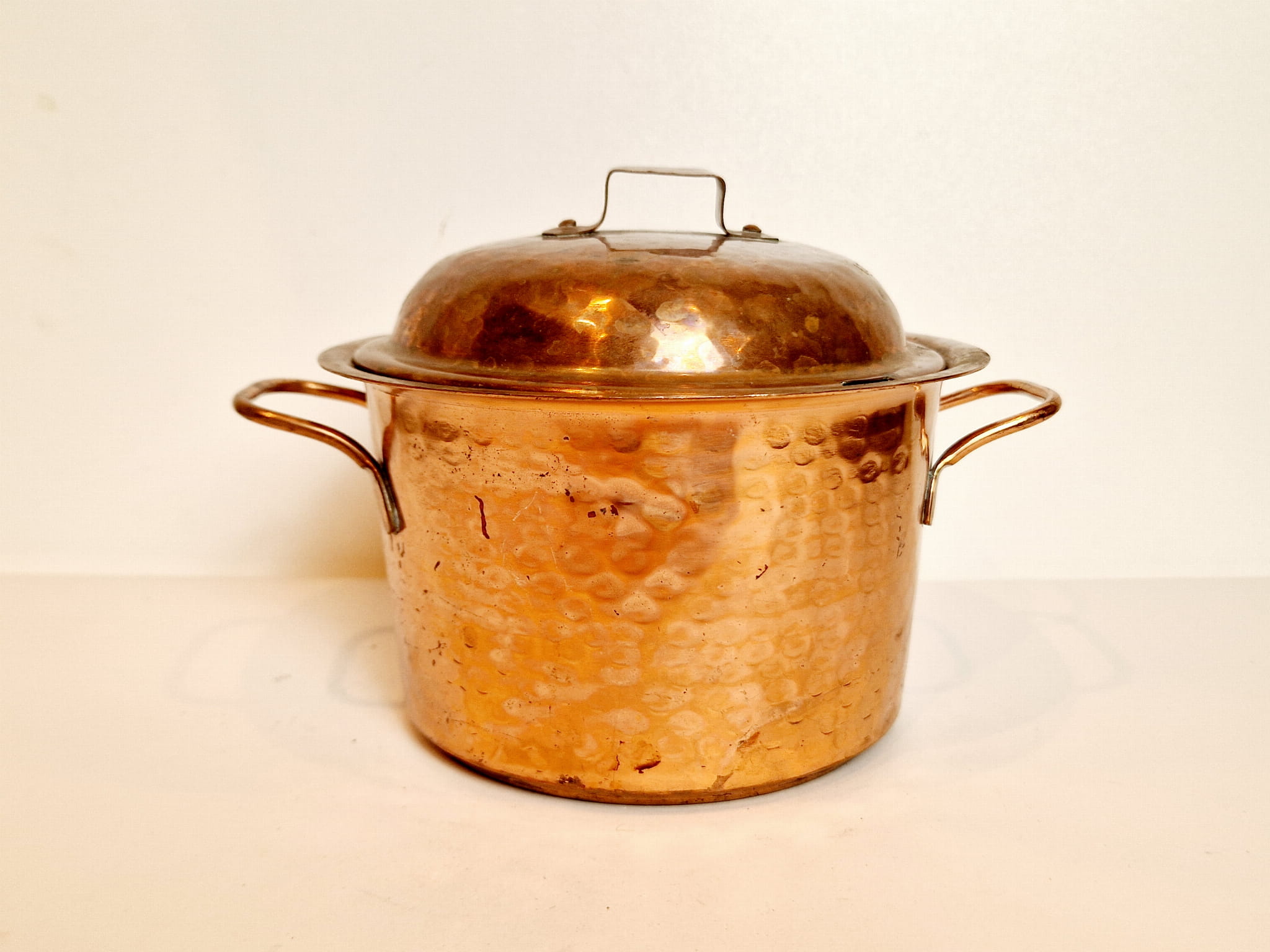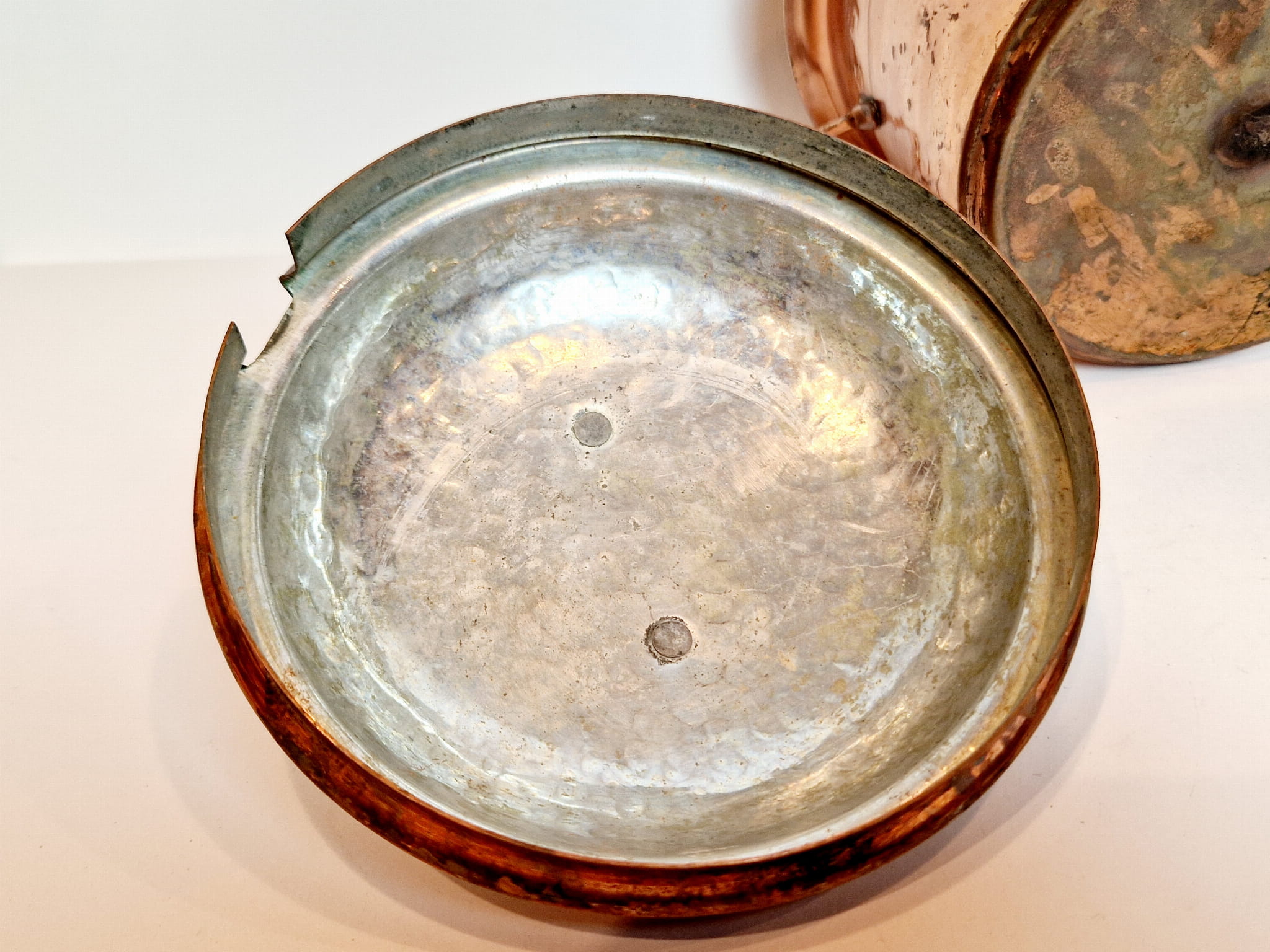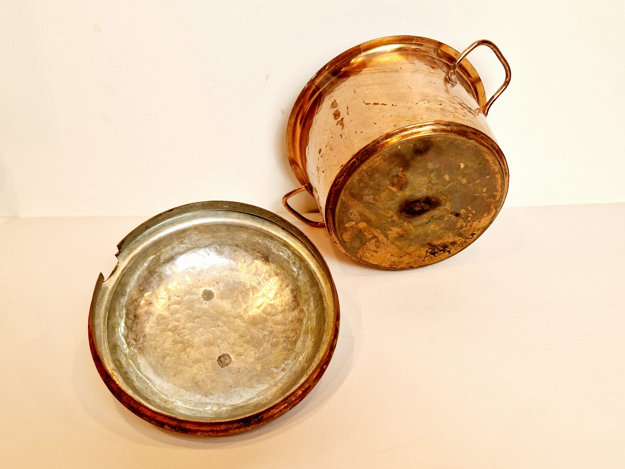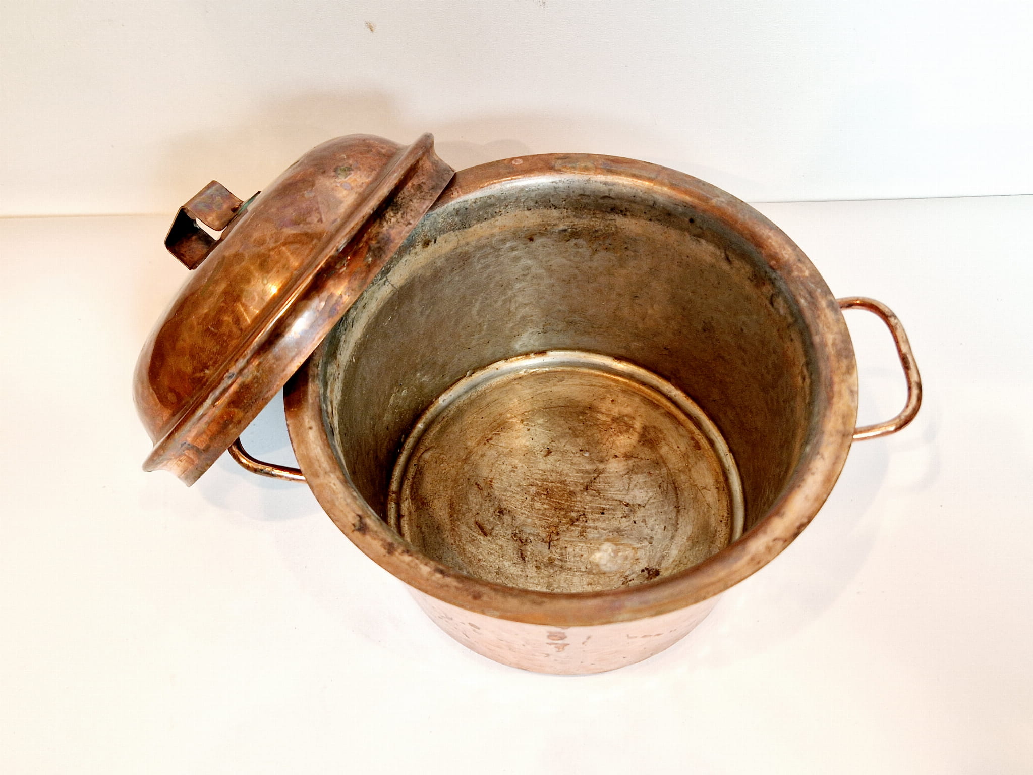 Uchwyt pokrywki - miedziany - nitowany miedzią, w pełni stabilny, w bardzo dobrym stanie zachowania...