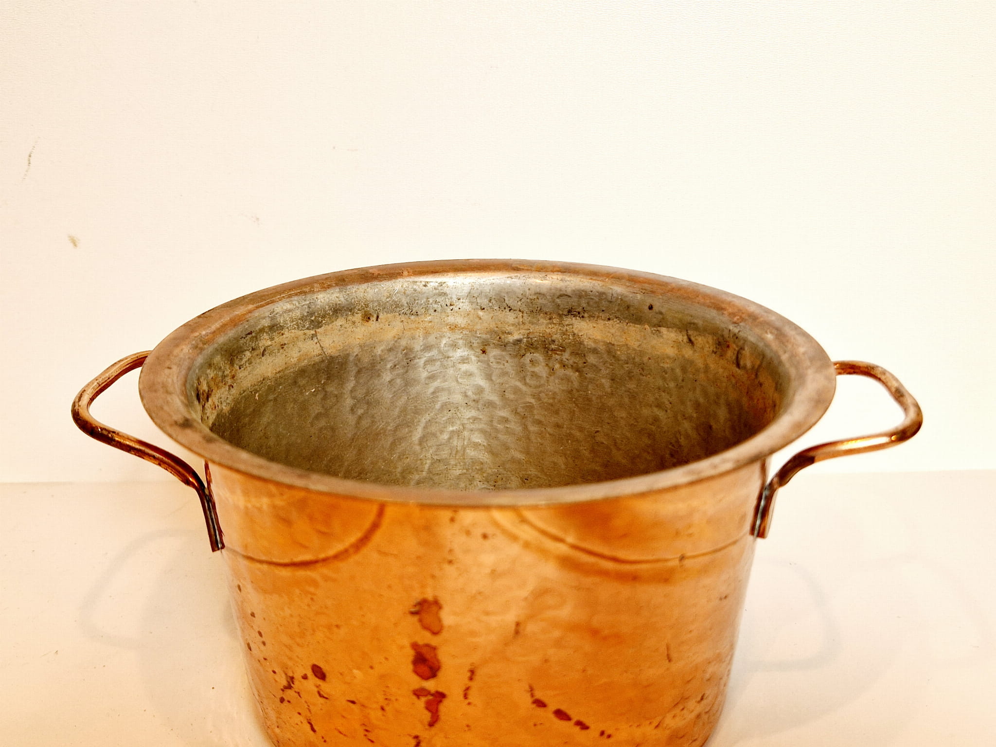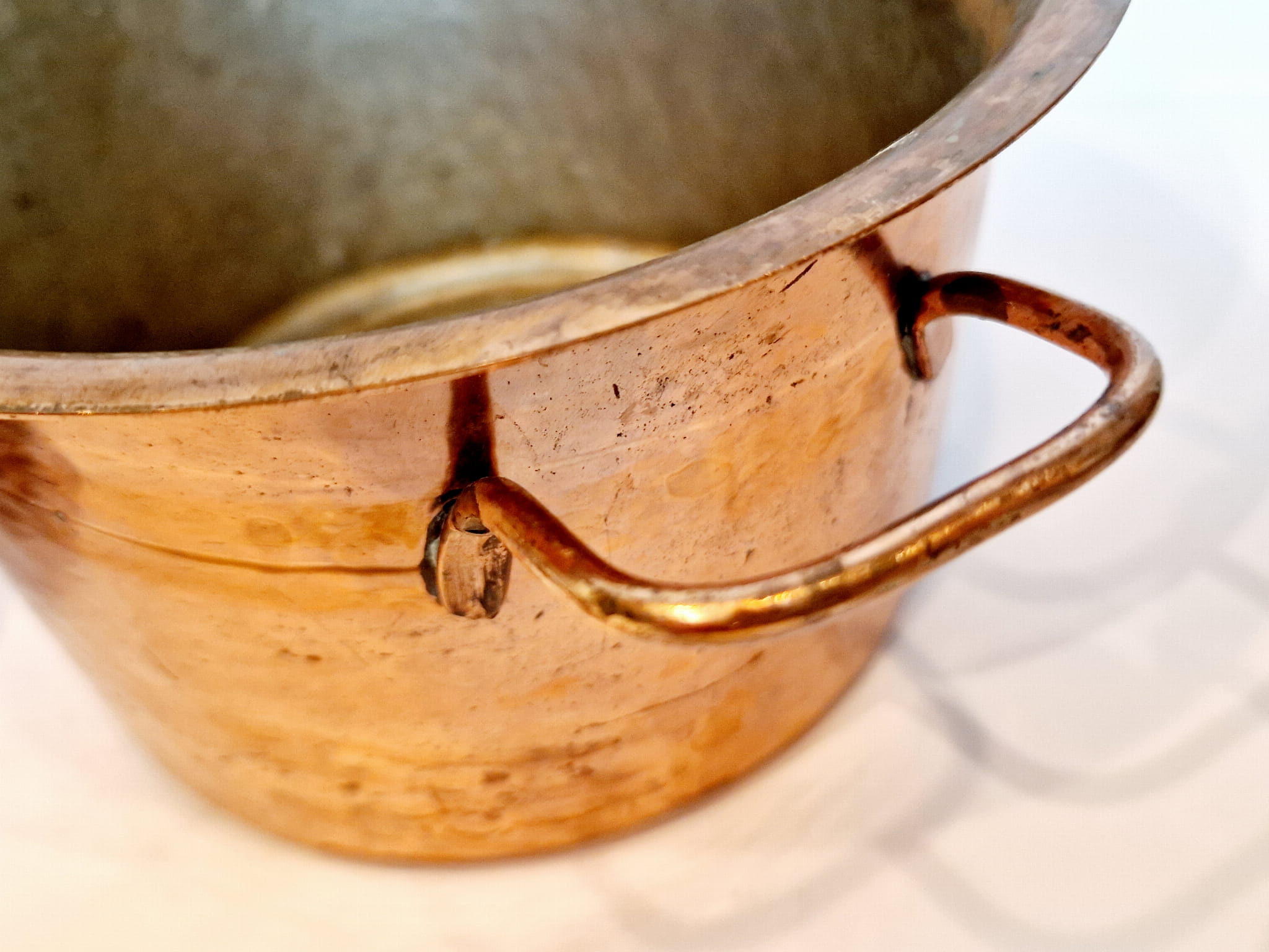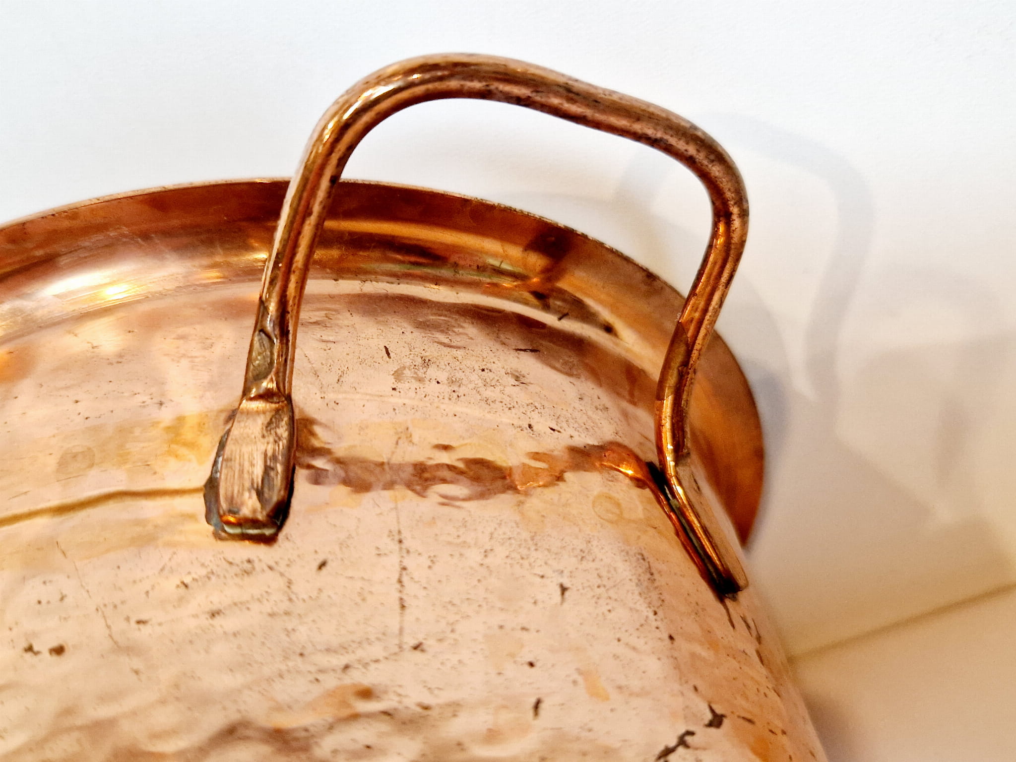Uchwyty garnka miedziane, nitowane miedzią - stabilne - w bardzo dobrym stanie zachowania...