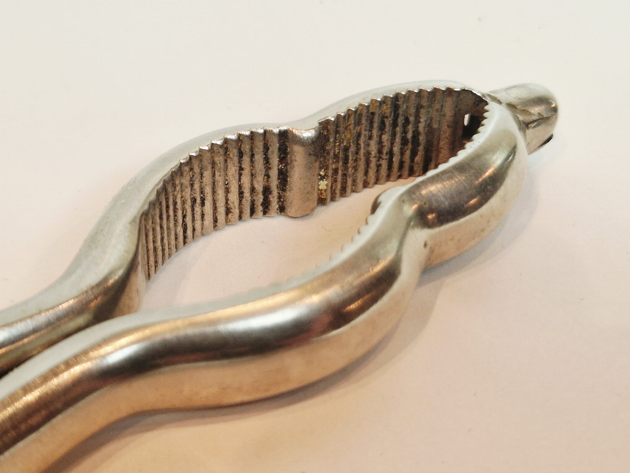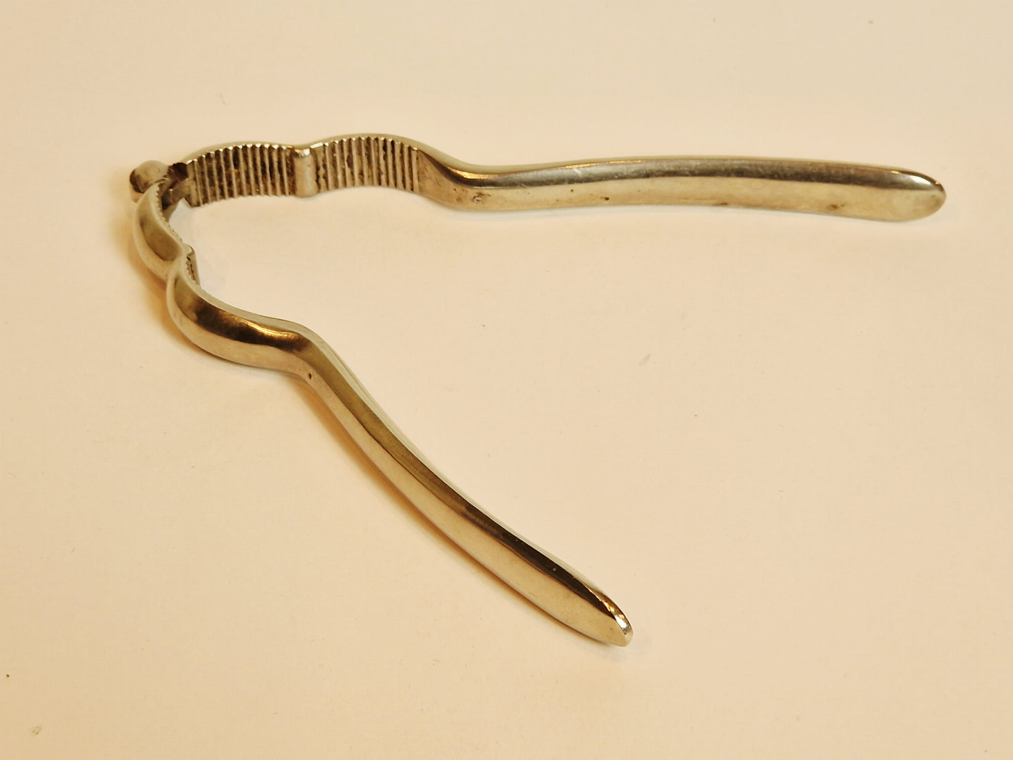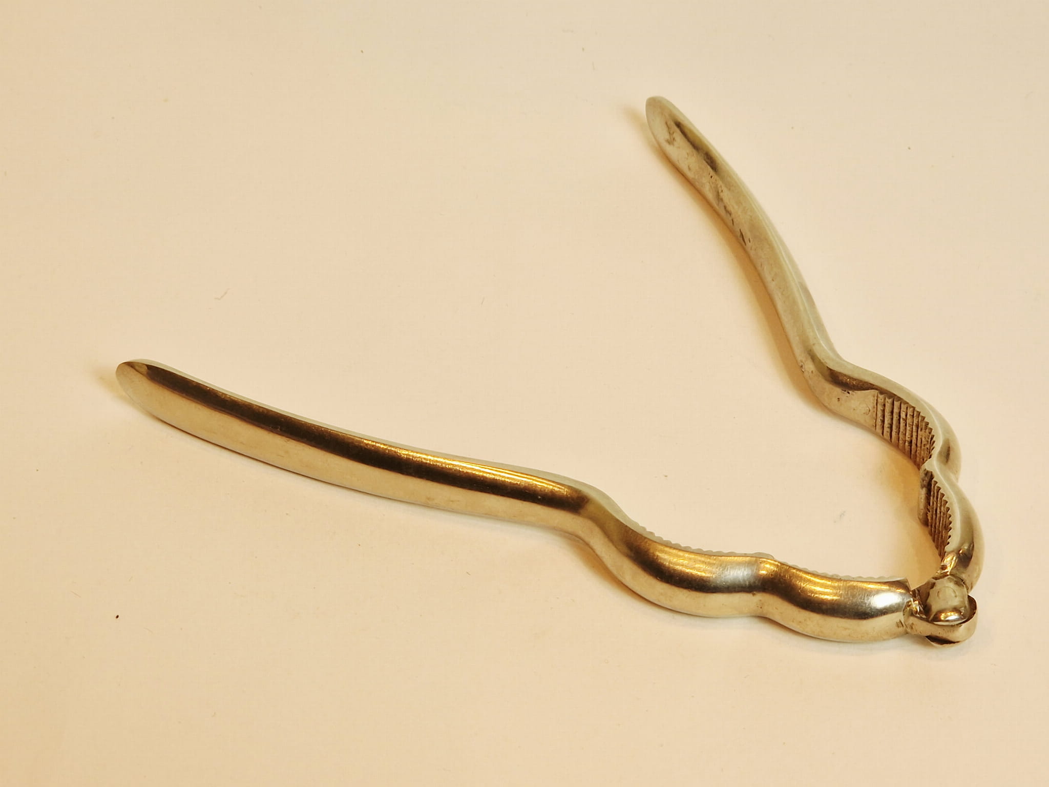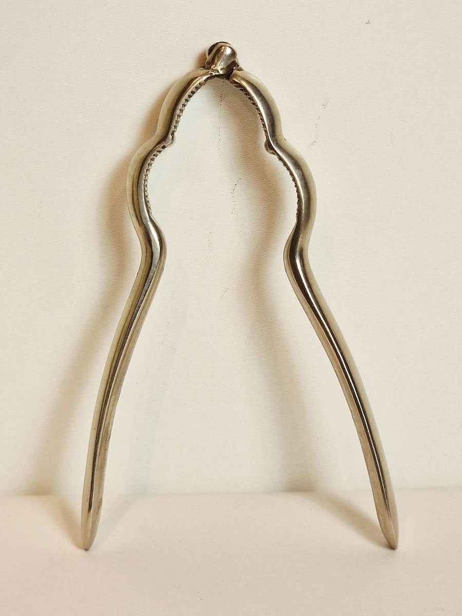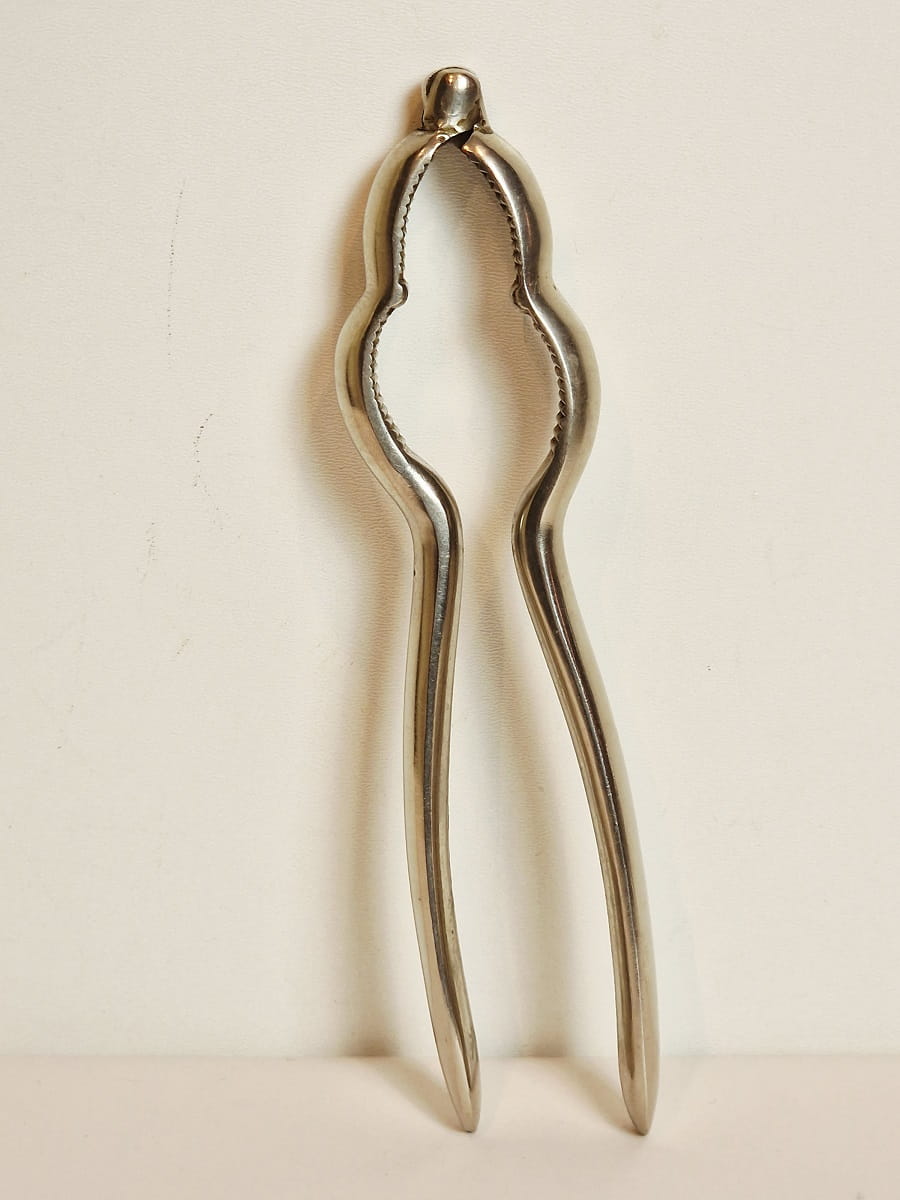 STARY (II poł. XX w) MASYWNY (145 g) ŻELAZNY (niklowany) ZGNIATACZ - DZIADEK DO ORZECHÓW