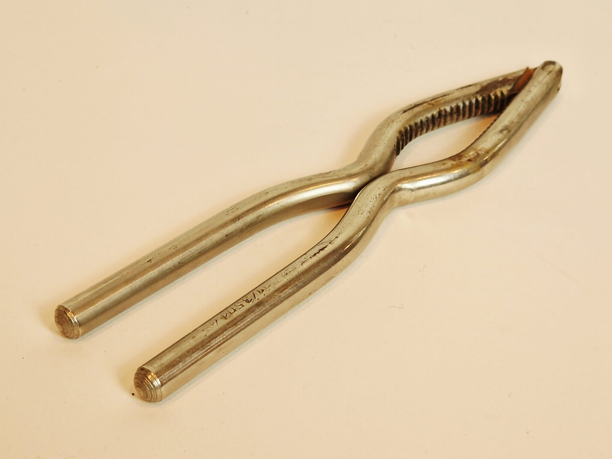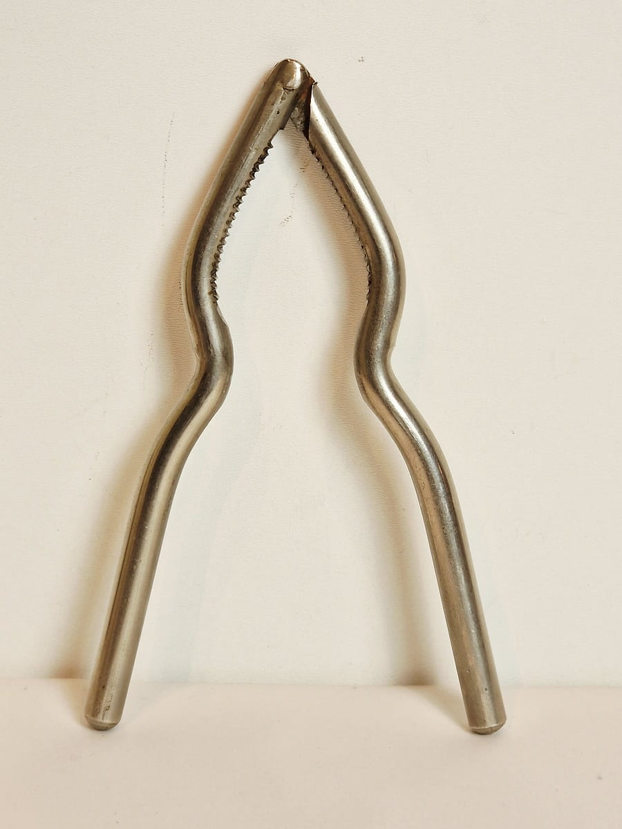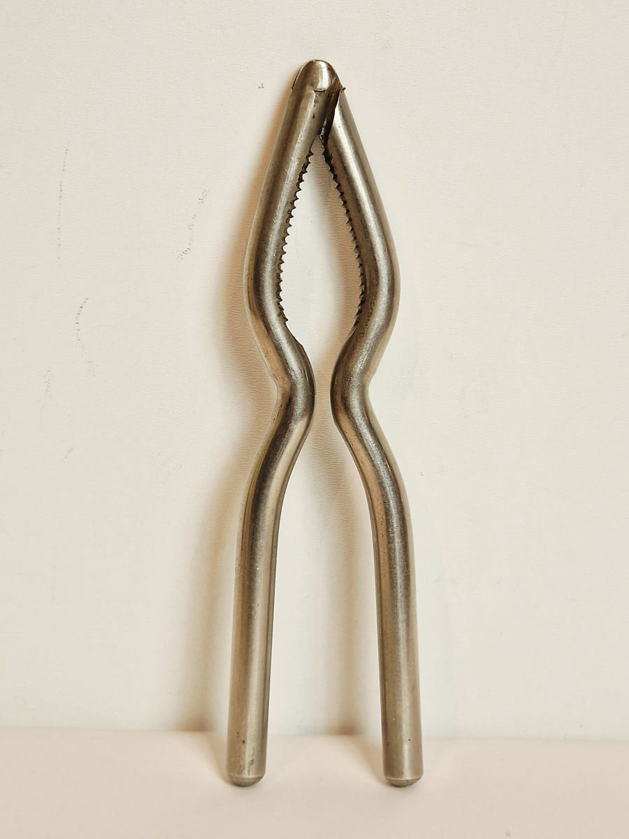 STARY (II poł. XX w) MASYWNY (151 g) ŻELAZNY (niklowany) ZGNIATACZ - DZIADEK DO ORZECHÓW