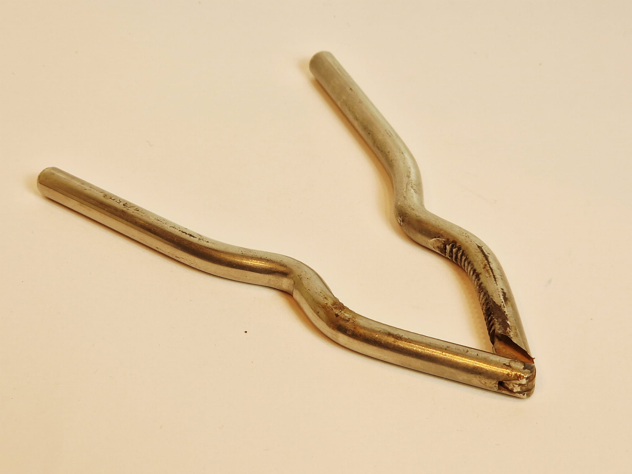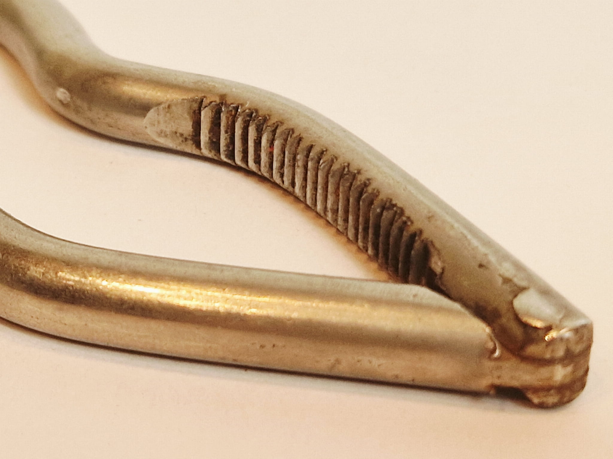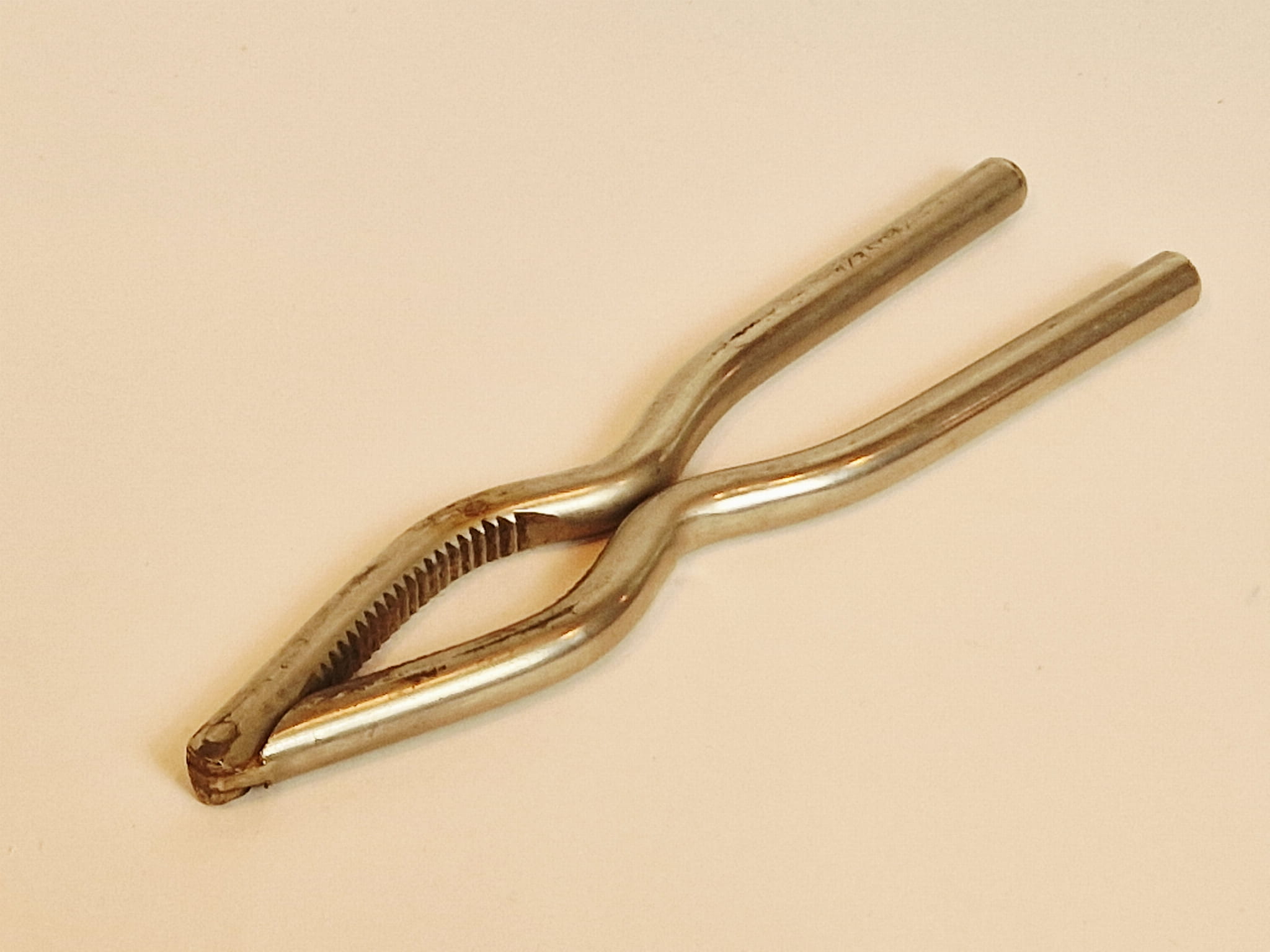 STARY (II poł. XX w) MASYWNY (151 g) ŻELAZNY (niklowany) ZGNIATACZ - DZIADEK DO ORZECHÓW
