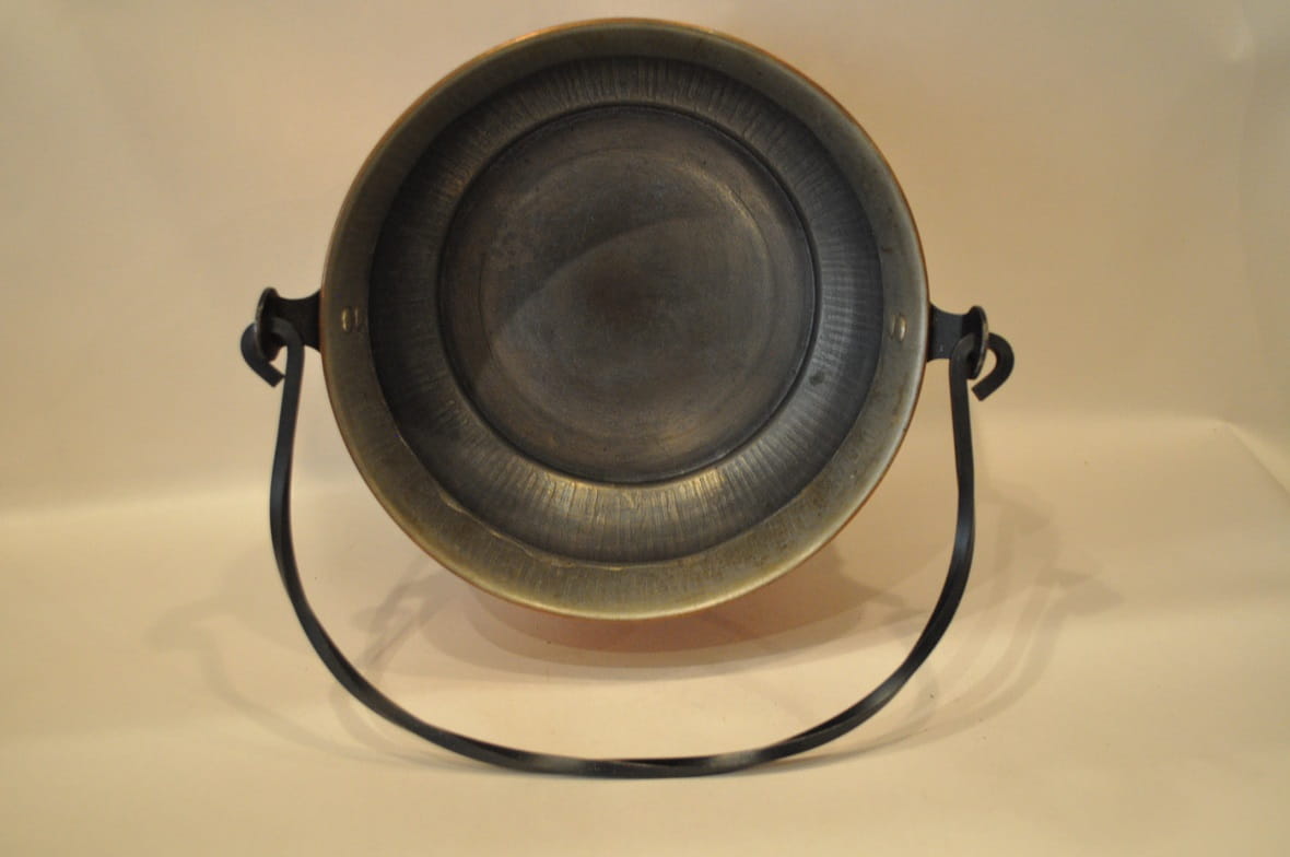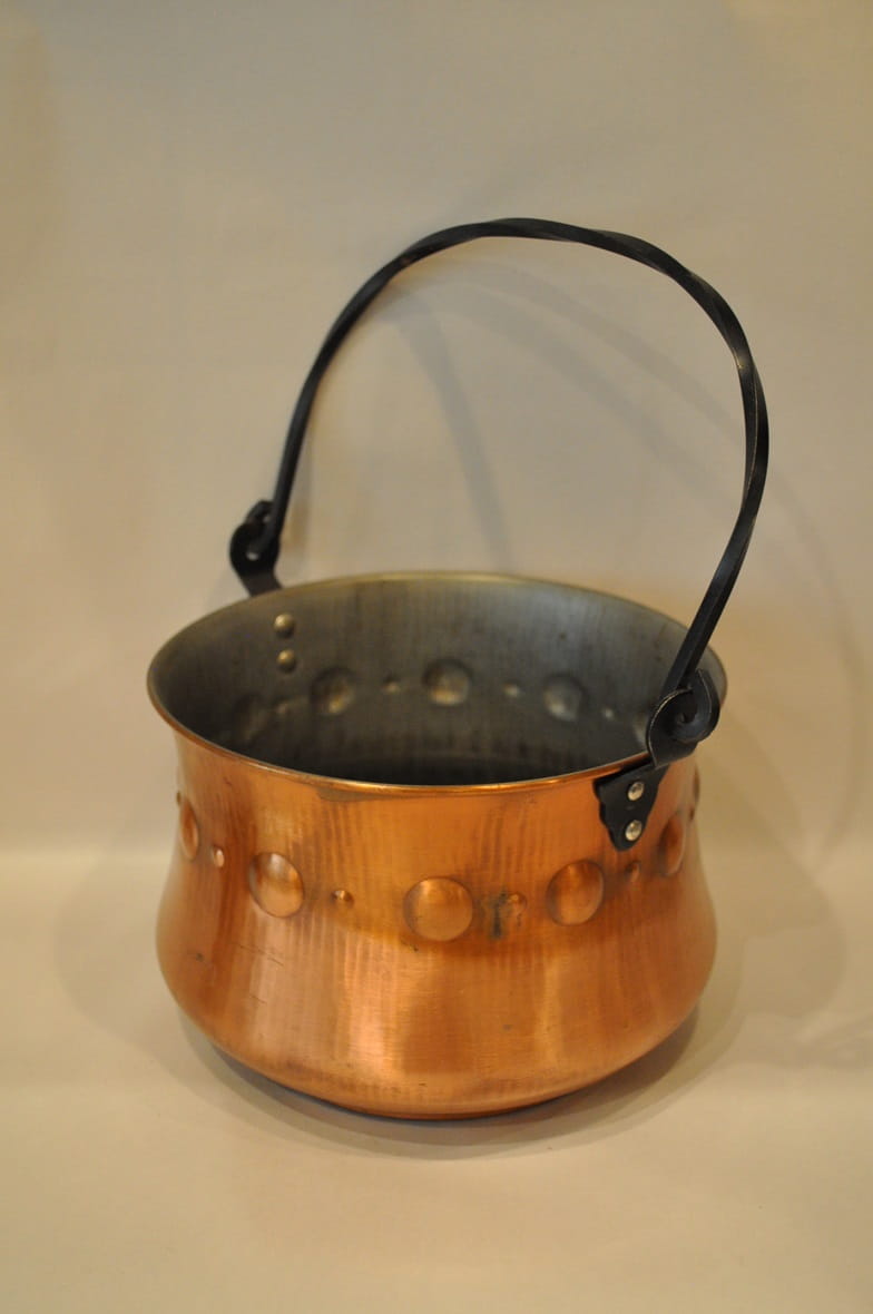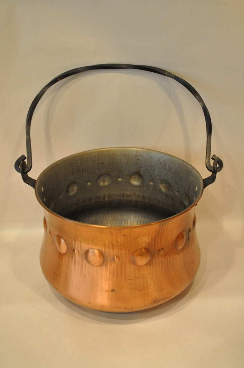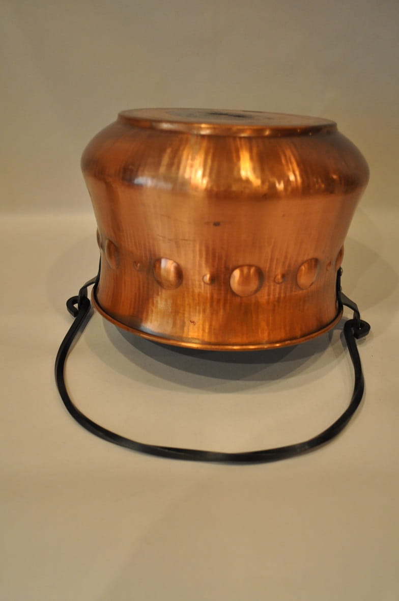 STARY (l. 70 / 80-te XX w) MIEDZIANY (wewnątrz platerowany ?) GARNEK - KOCIOŁEK DONICZKA - KWIETNIK - OSŁONA DONICZKI
