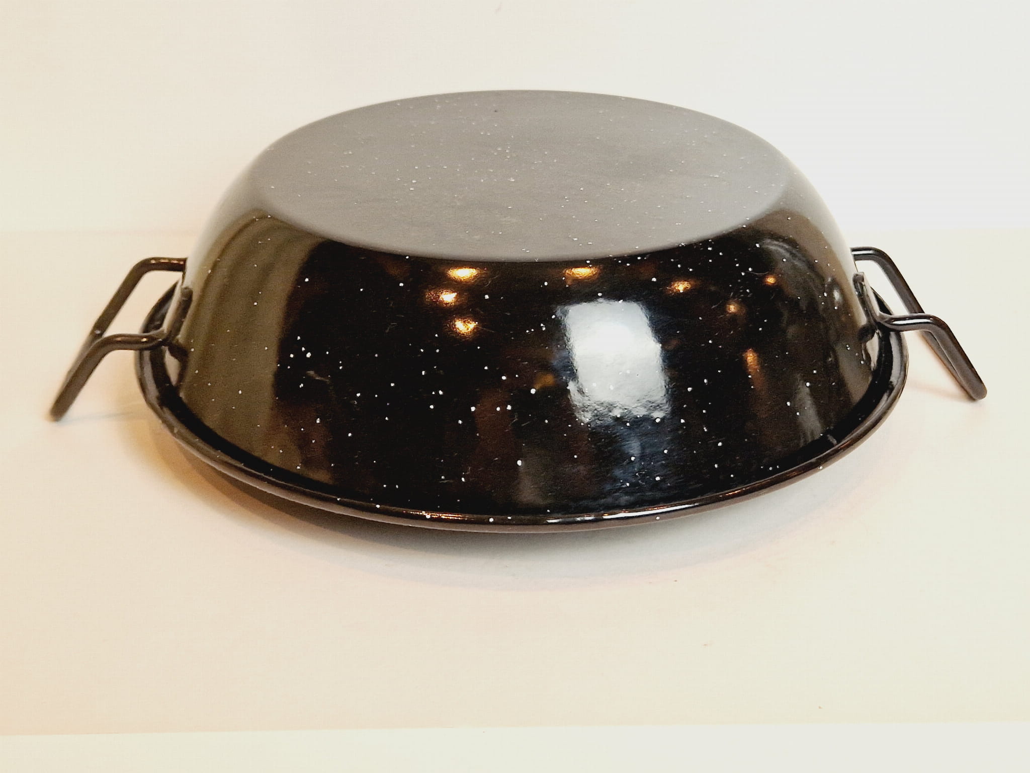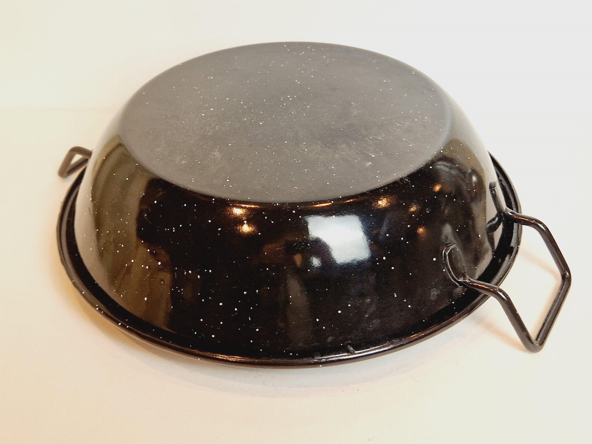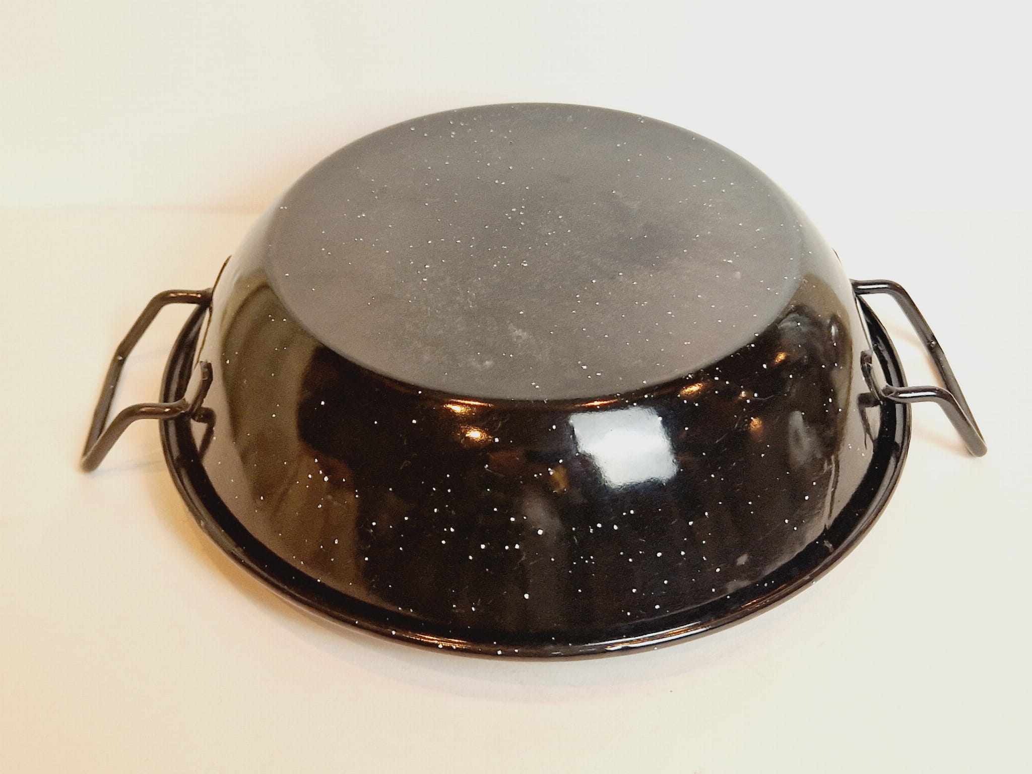 MASYWNA (834 g) DUŻA (29,5 cm x 7,0 cm) PATELNIA STALOWA (emaliowana) Z DWOMA UCHWYTAMI