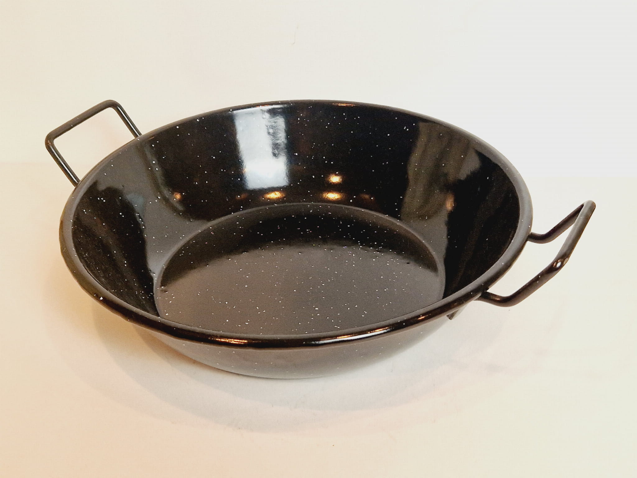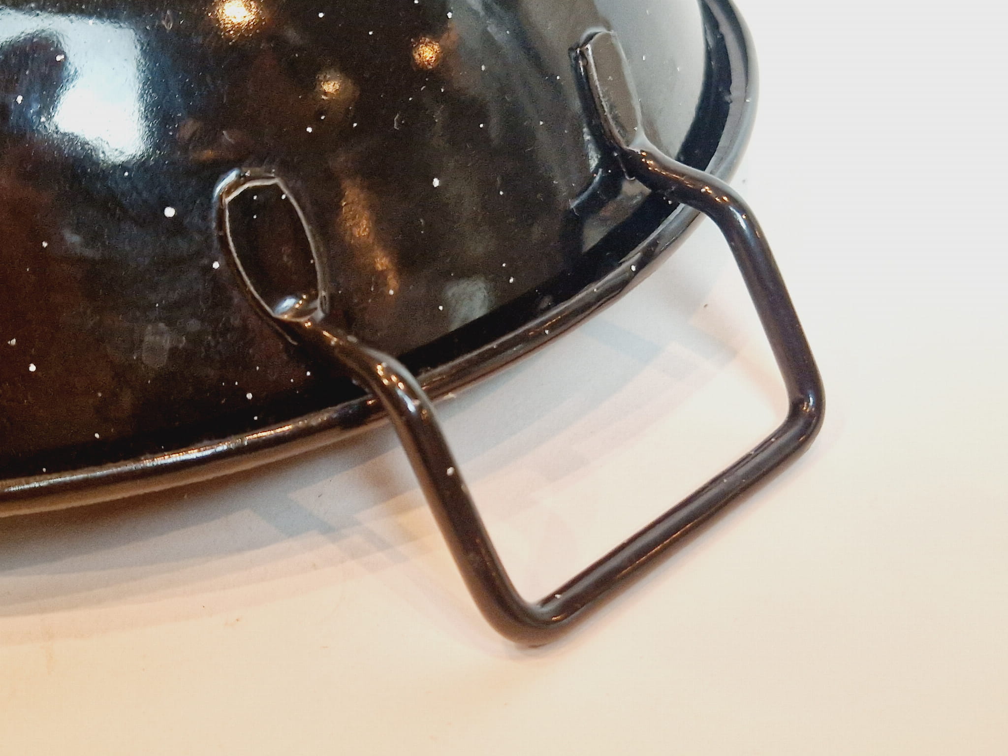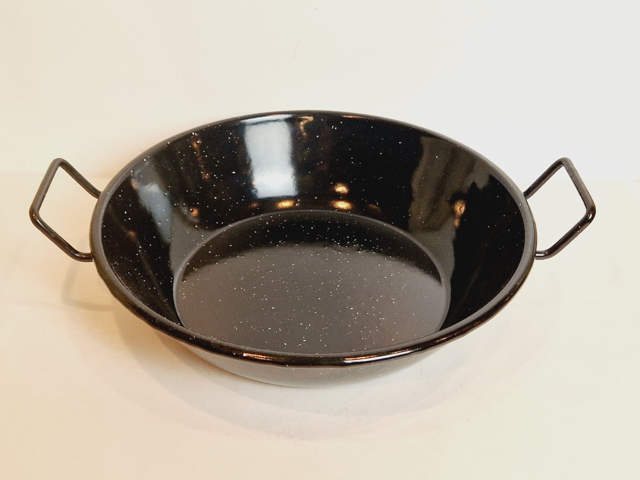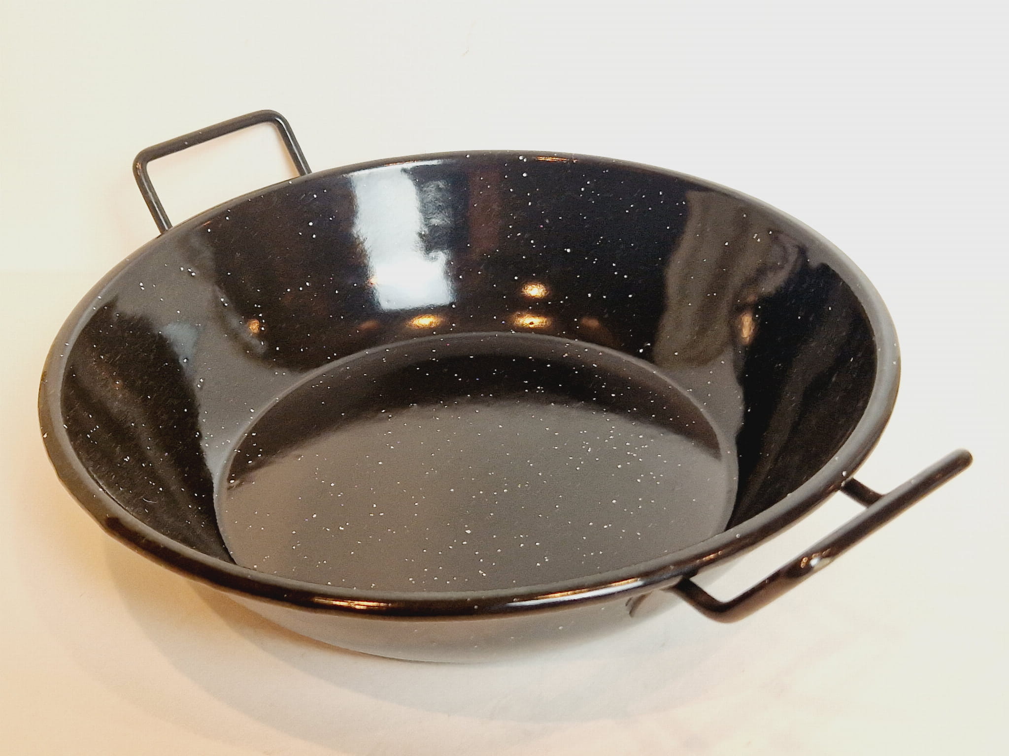 MASYWNA (834 g) DUŻA (29,5 cm x 7,0 cm) PATELNIA STALOWA (emaliowana) Z DWOMA UCHWYTAMI
