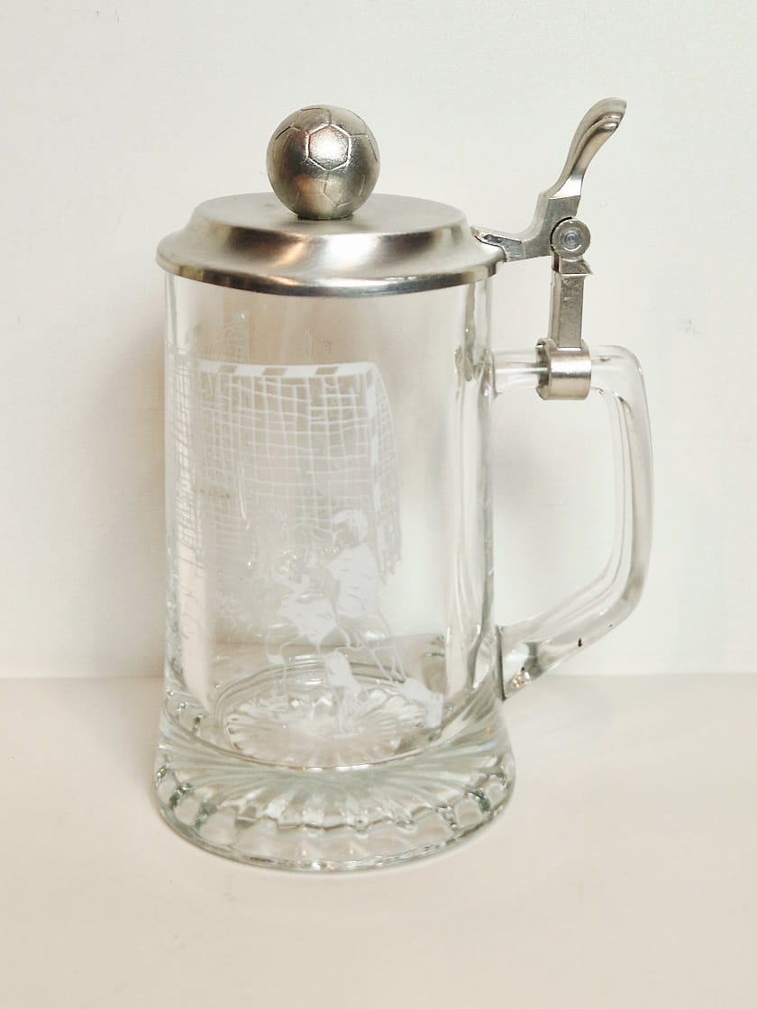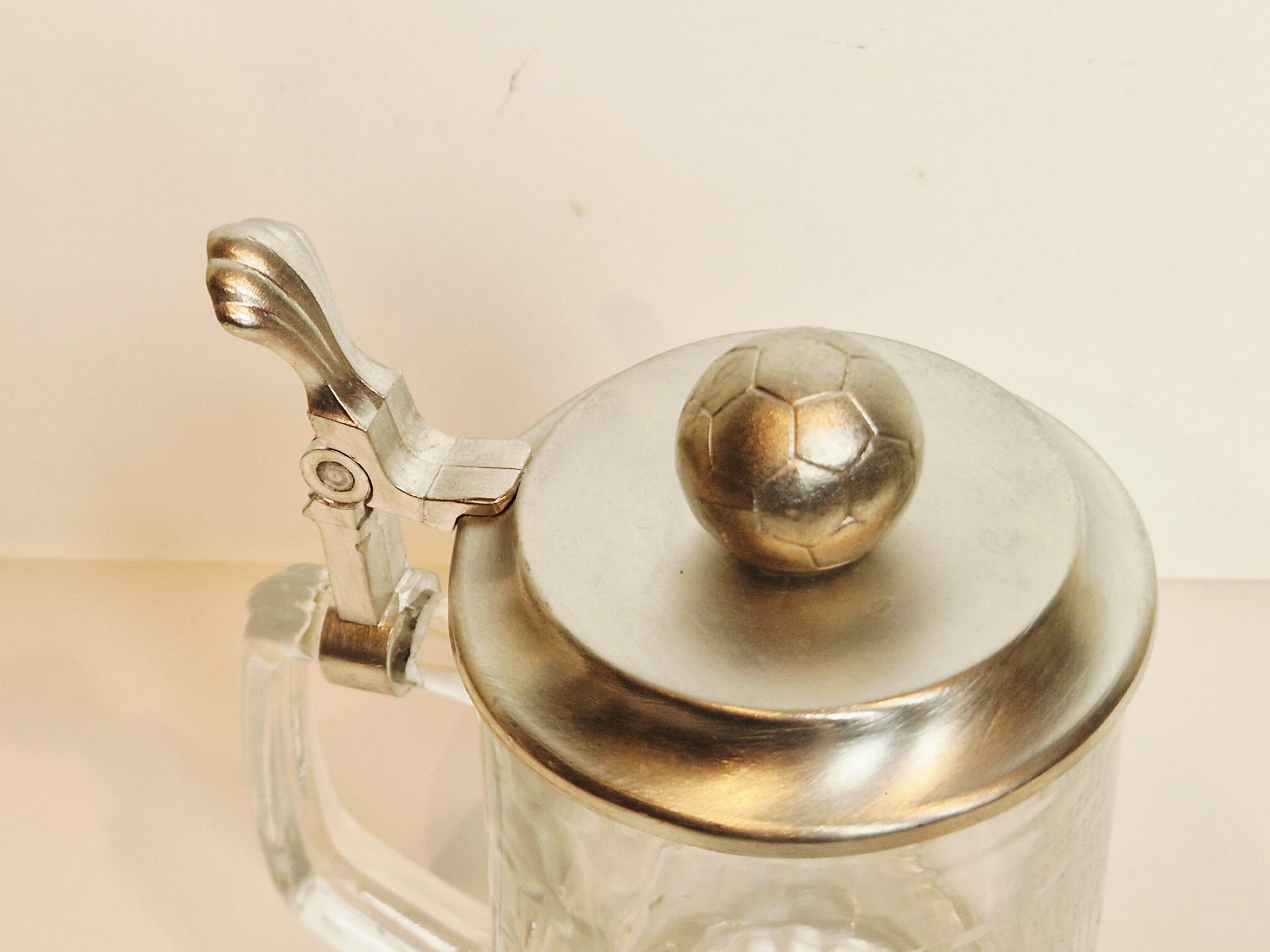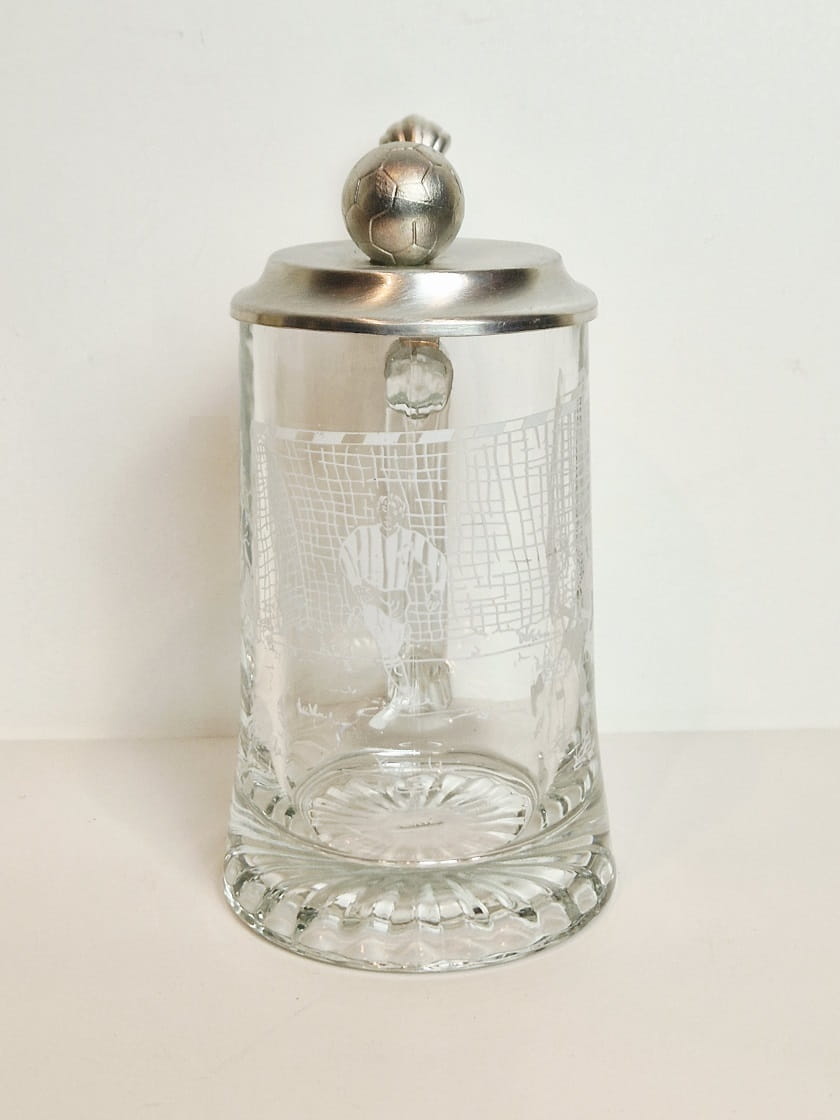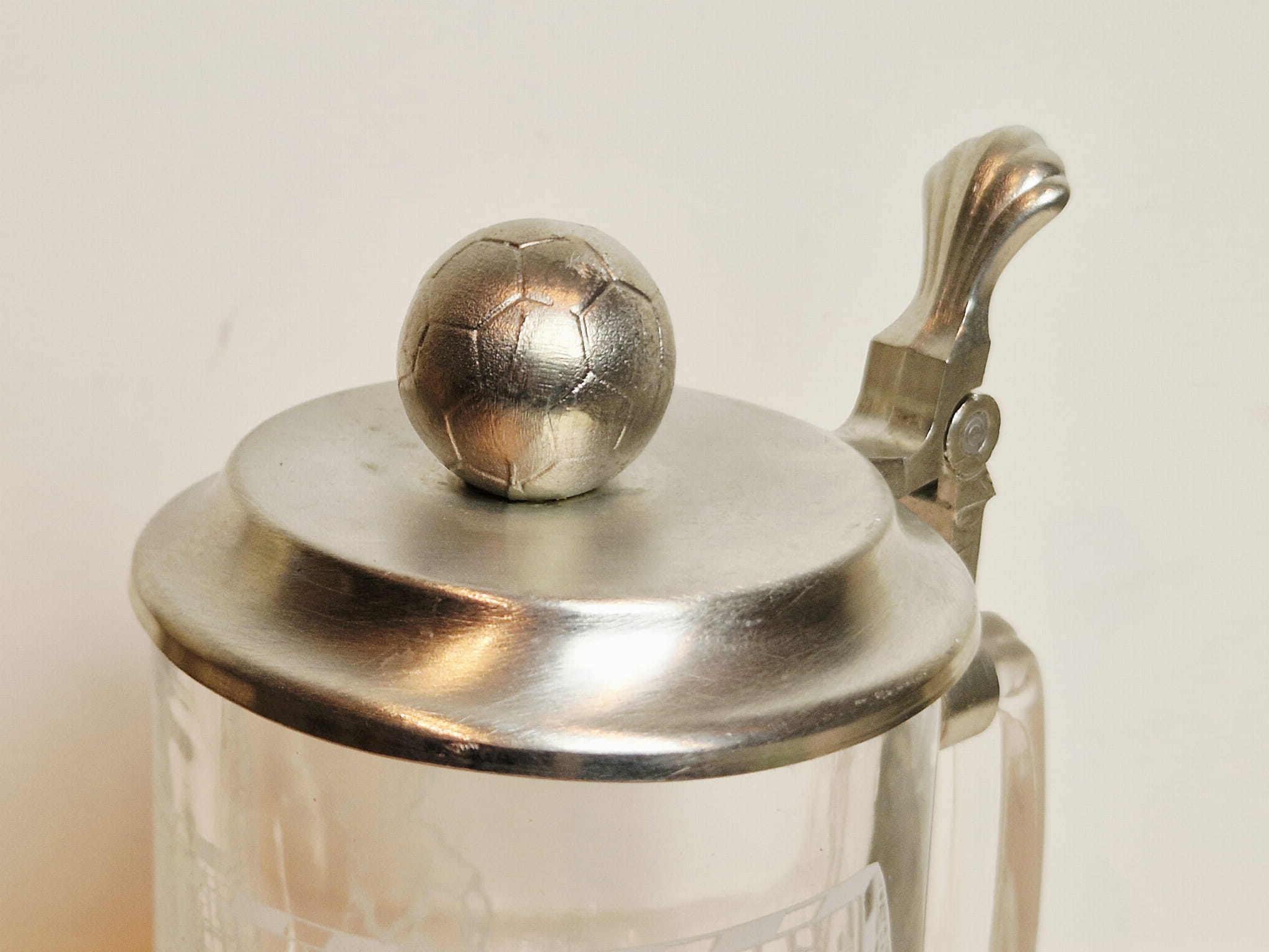 "PIŁKA NOŻNA" / FUTBOL - KOLEKCJONERSKI KUFEL SZKLANY Z CYNOWĄ POKRYWKĄ