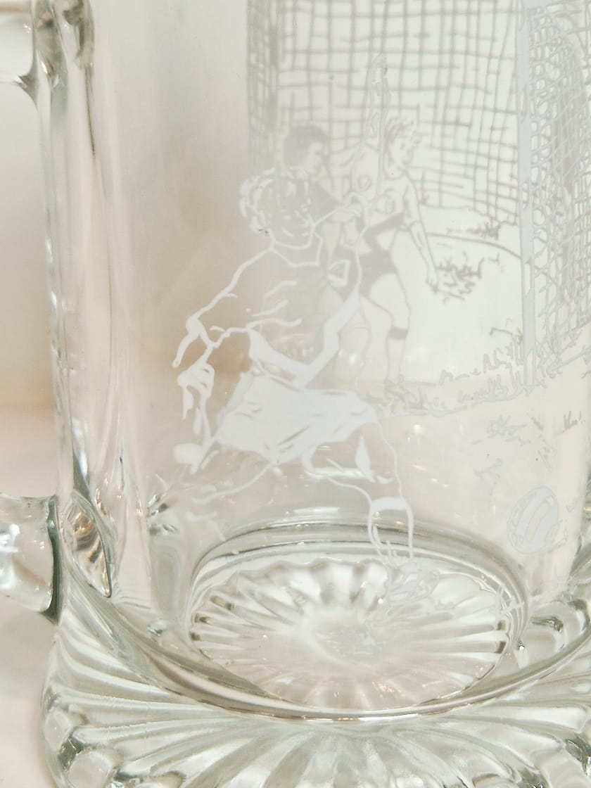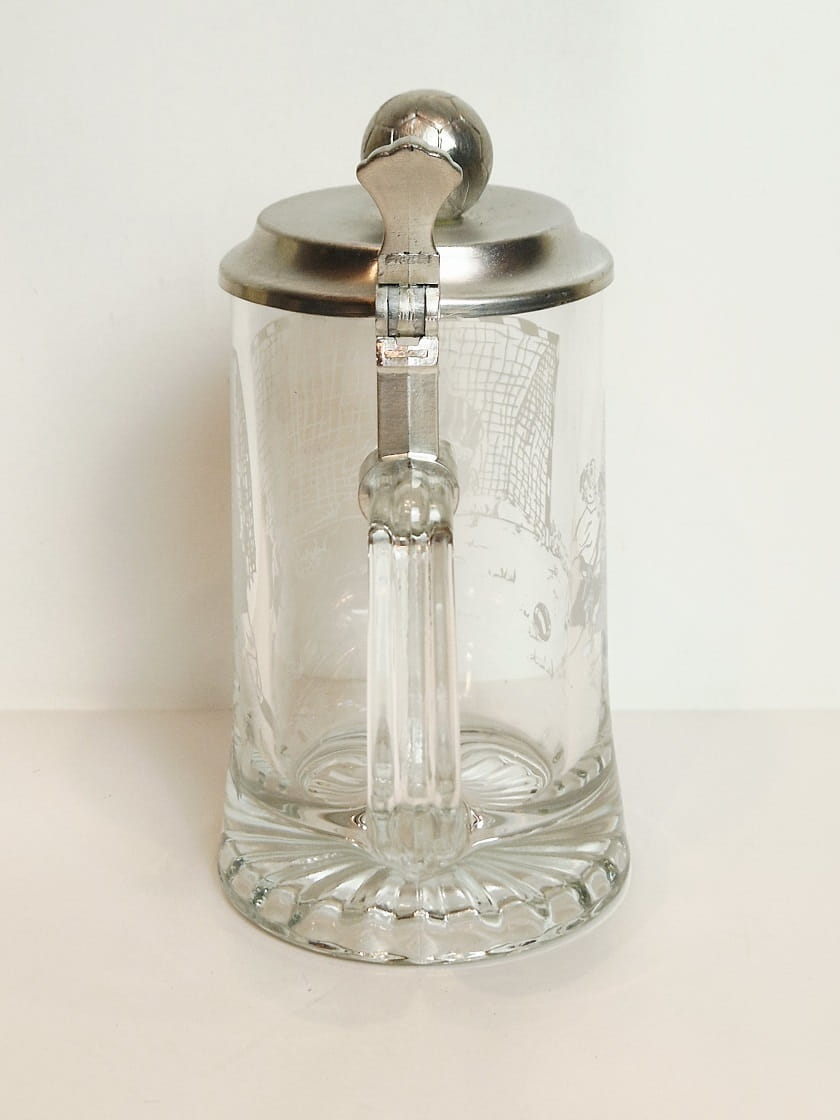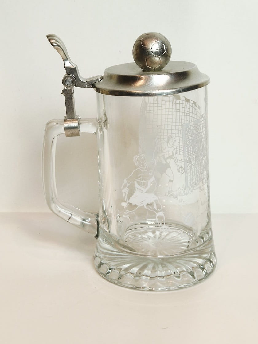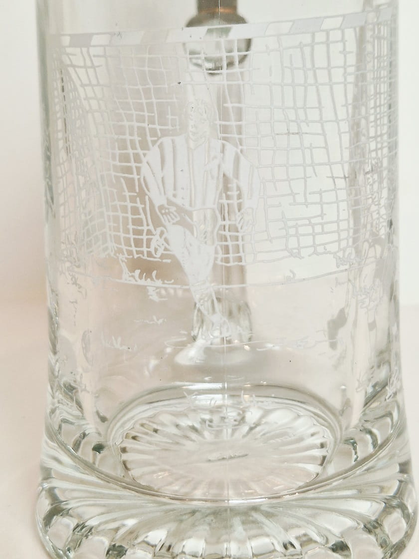 "PIŁKA NOŻNA" / FUTBOL - KOLEKCJONERSKI KUFEL SZKLANY Z CYNOWĄ POKRYWKĄ