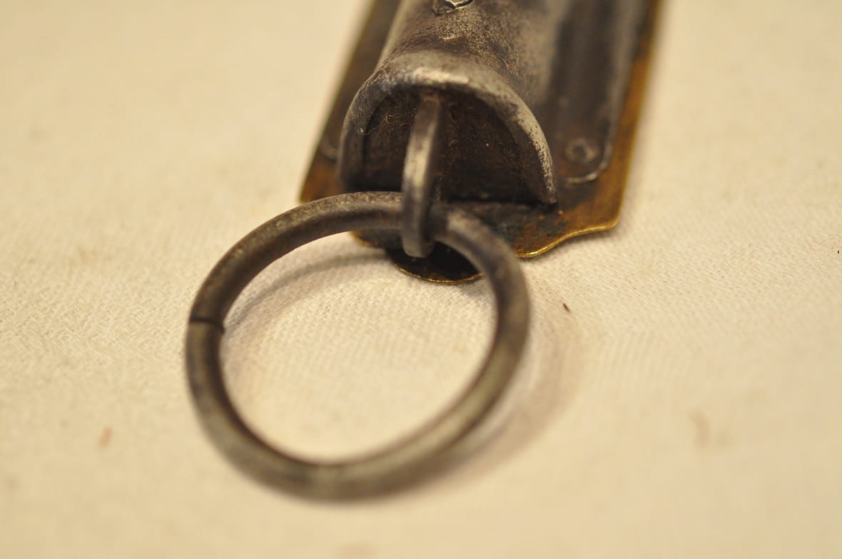 Sygnatura wytwórcza w górnej części mosiężnego cyferblatu: