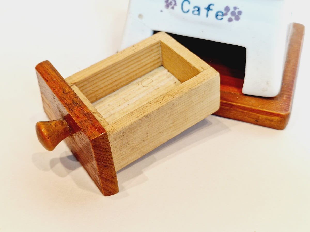 Szufladka drewniana bez jakichkolwiek uszkodzeń oraz śladów napraw.