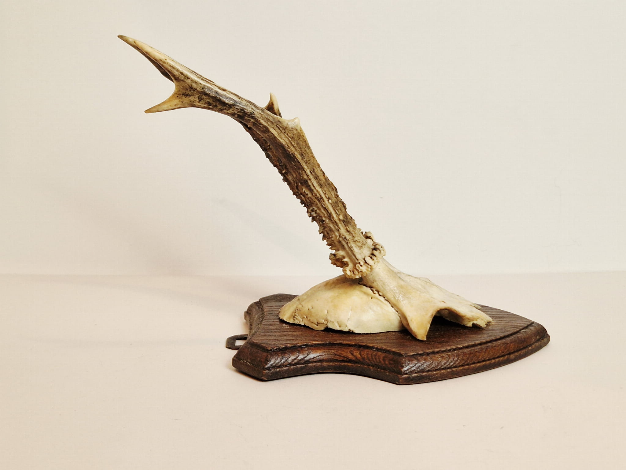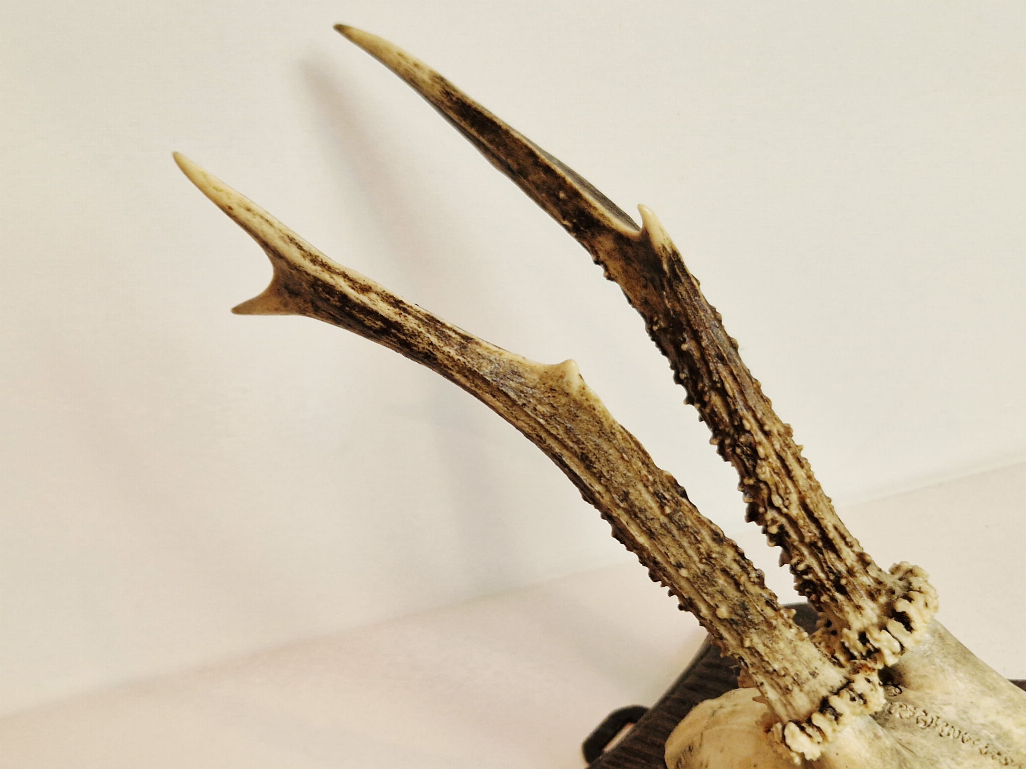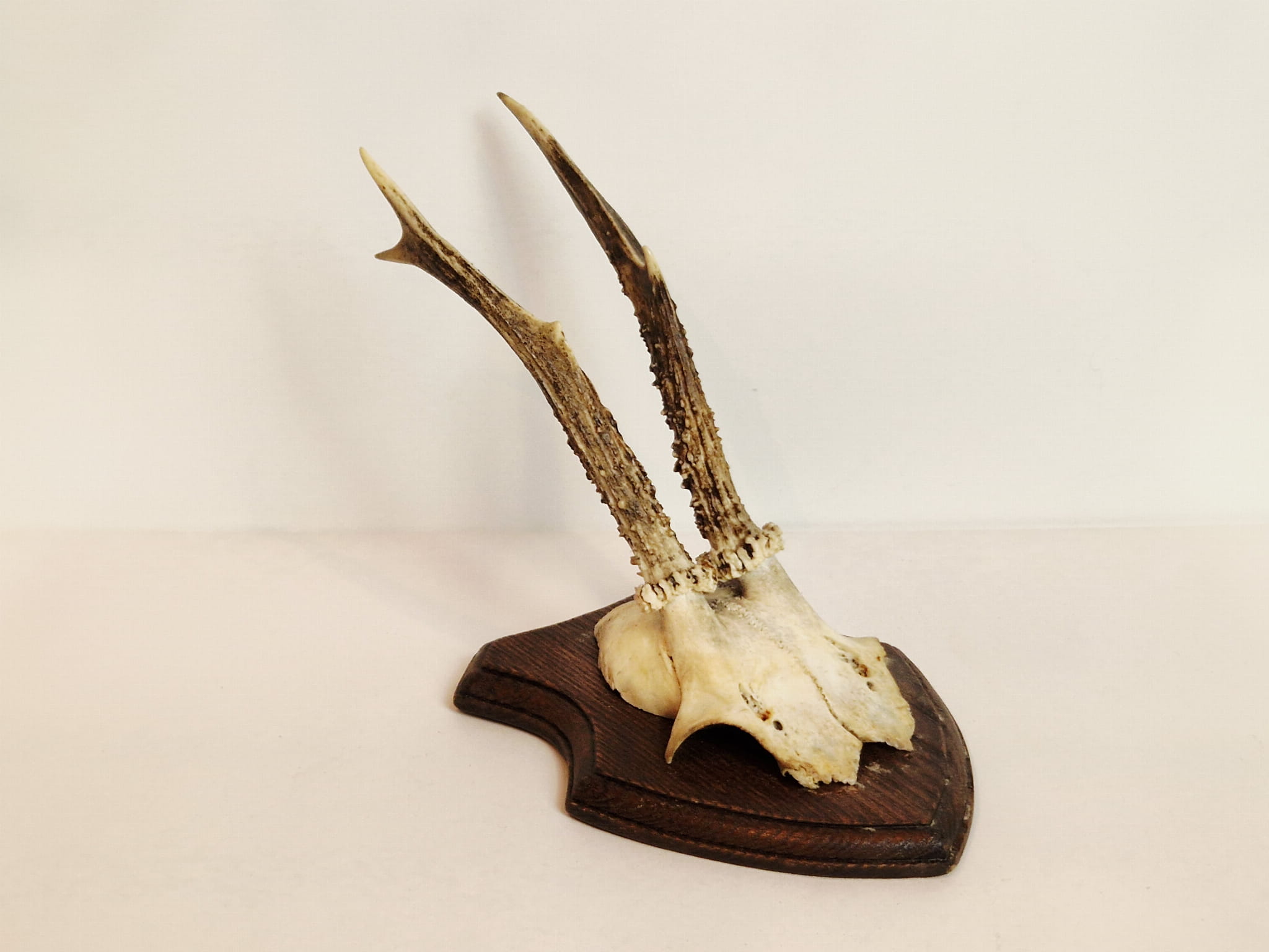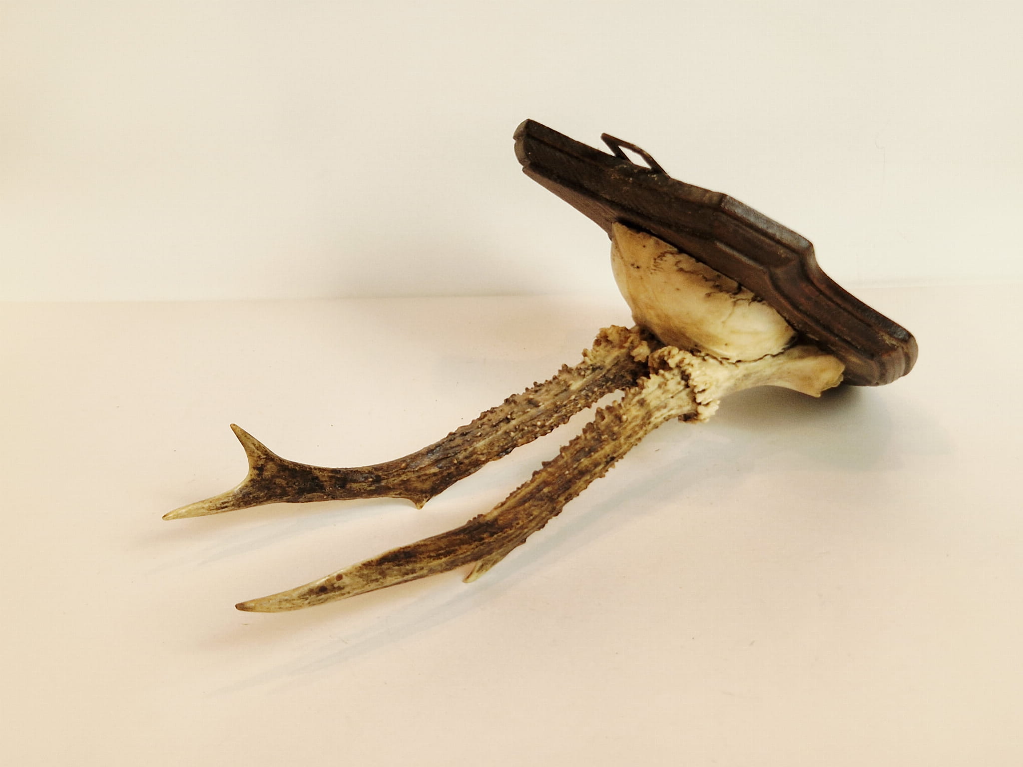 TROFEUM NA DESCE - POROŻE KOZŁA SARNY SZÓSTAKA Z FRAGMENTEM CZASZKI
