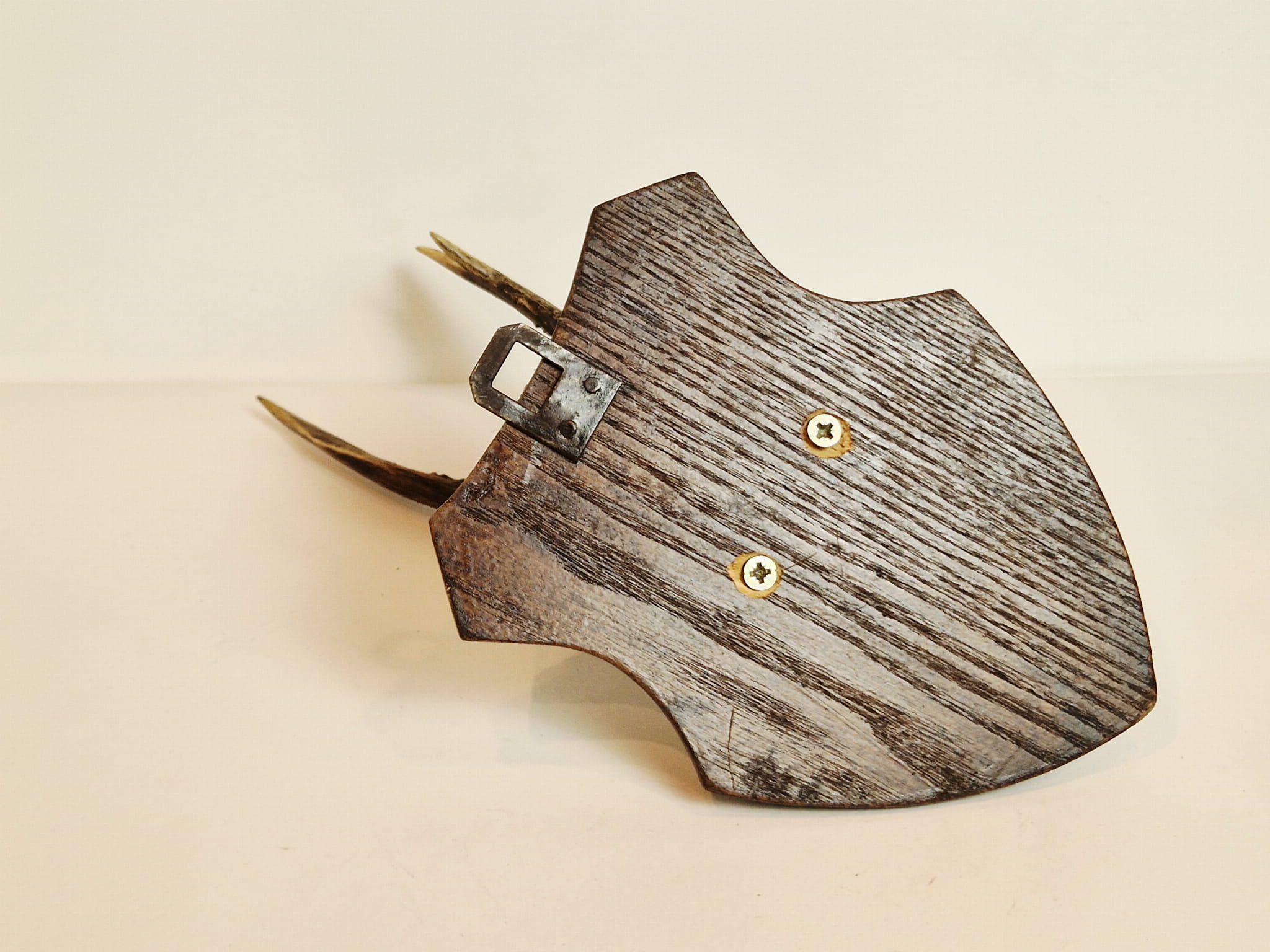 Poroże na desce - gotowe do powieszenia na ścianie.