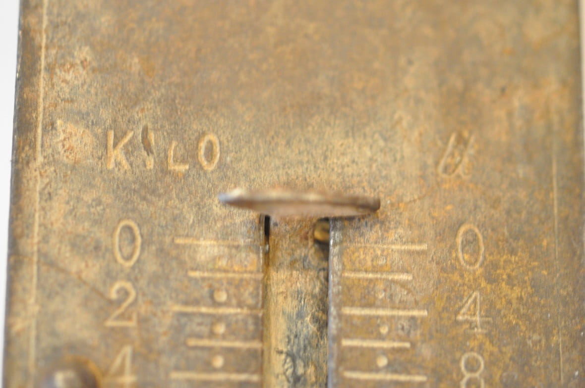 Niewielkie odkształcenia mosiężnego frontu ze skalą - "odgięcie" dolnej części - bez wpływu na funkcjonalność wagi.
