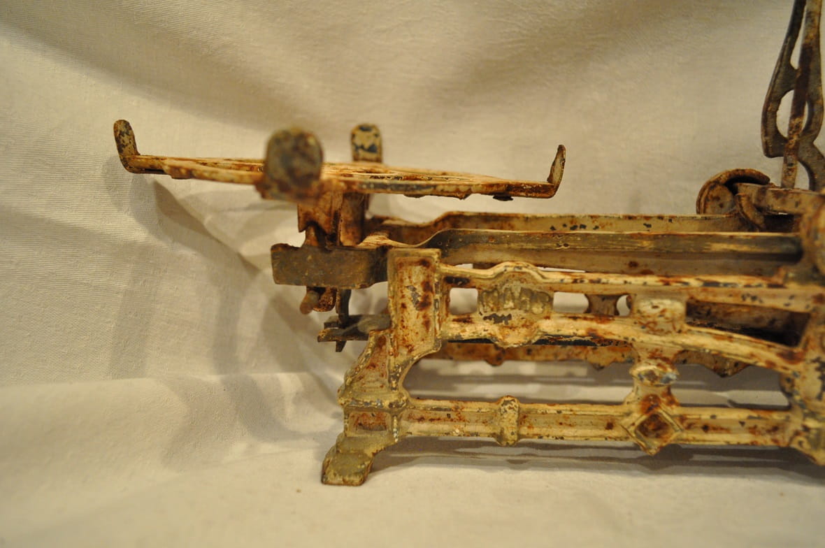 Waga z pozostałościami oryginalnej malatury.
