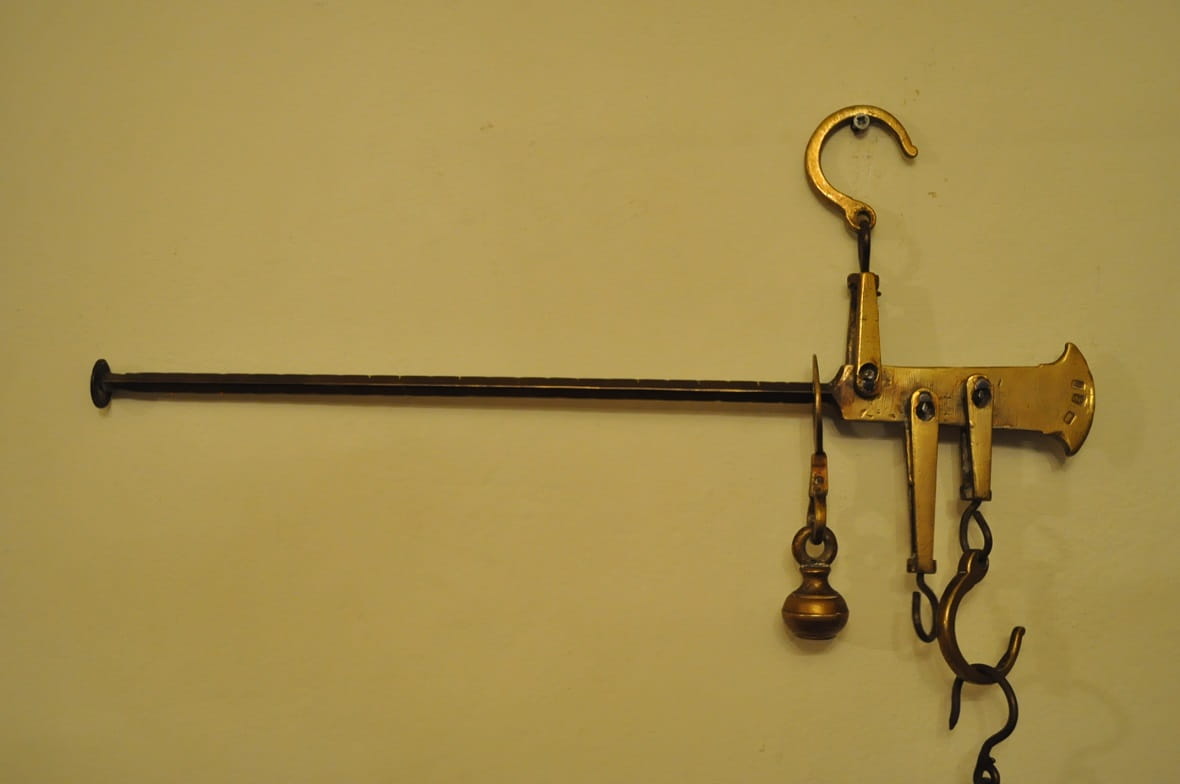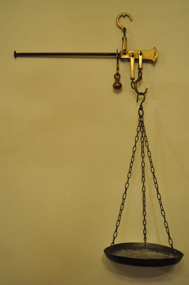 Ramię wagi karbowane podziałką nominowaną co 10 karbów.