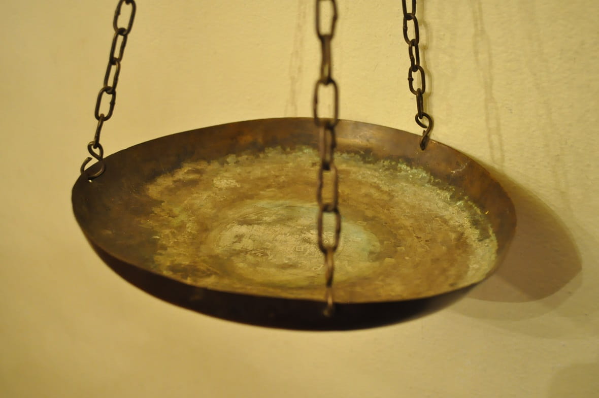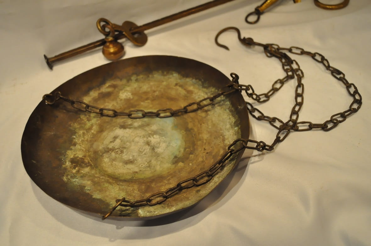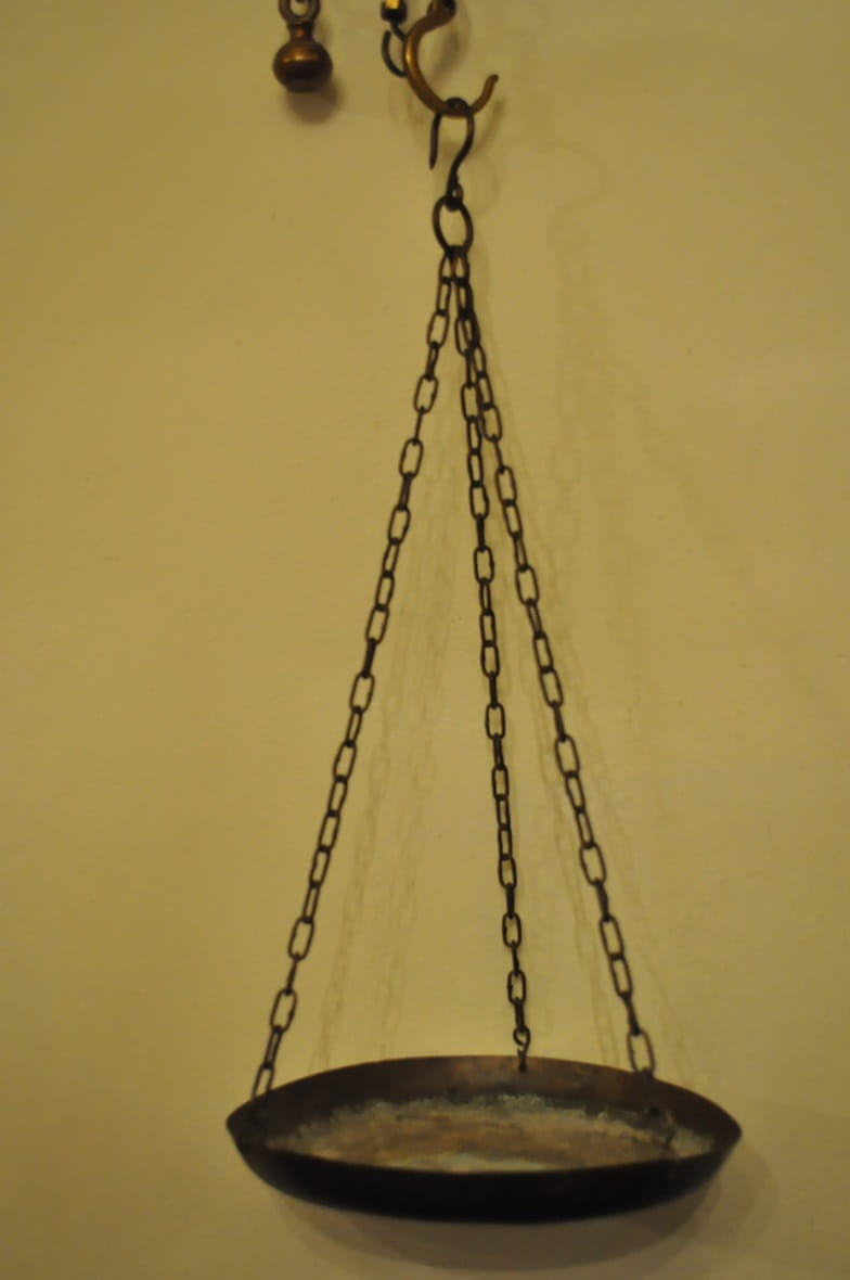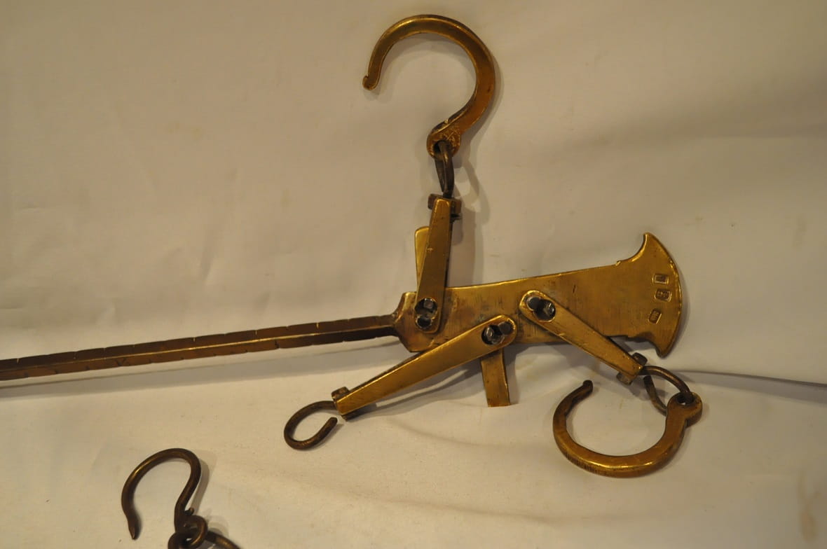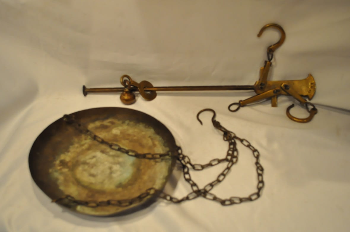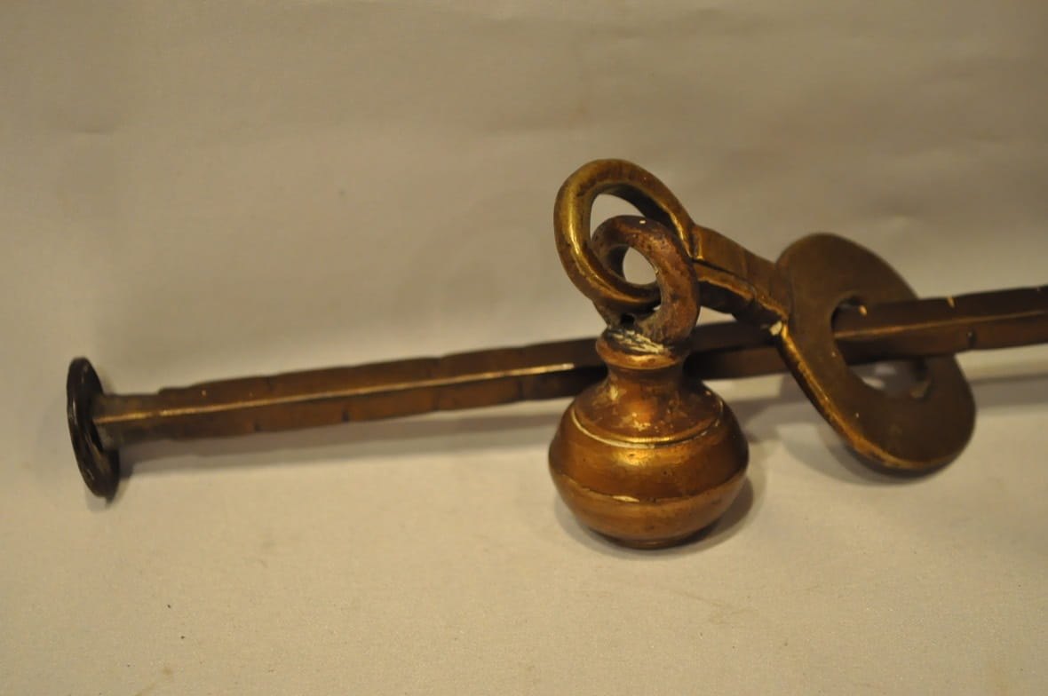 ORYGINALNA ZABYTKOWA (XIX / XX w) WŁOSKA WAGA SZALKOWA "BEZMIAN" Z BRĄZU / SZALKA Z BRĄZU (z kompletem łańcuszków / z brązu)