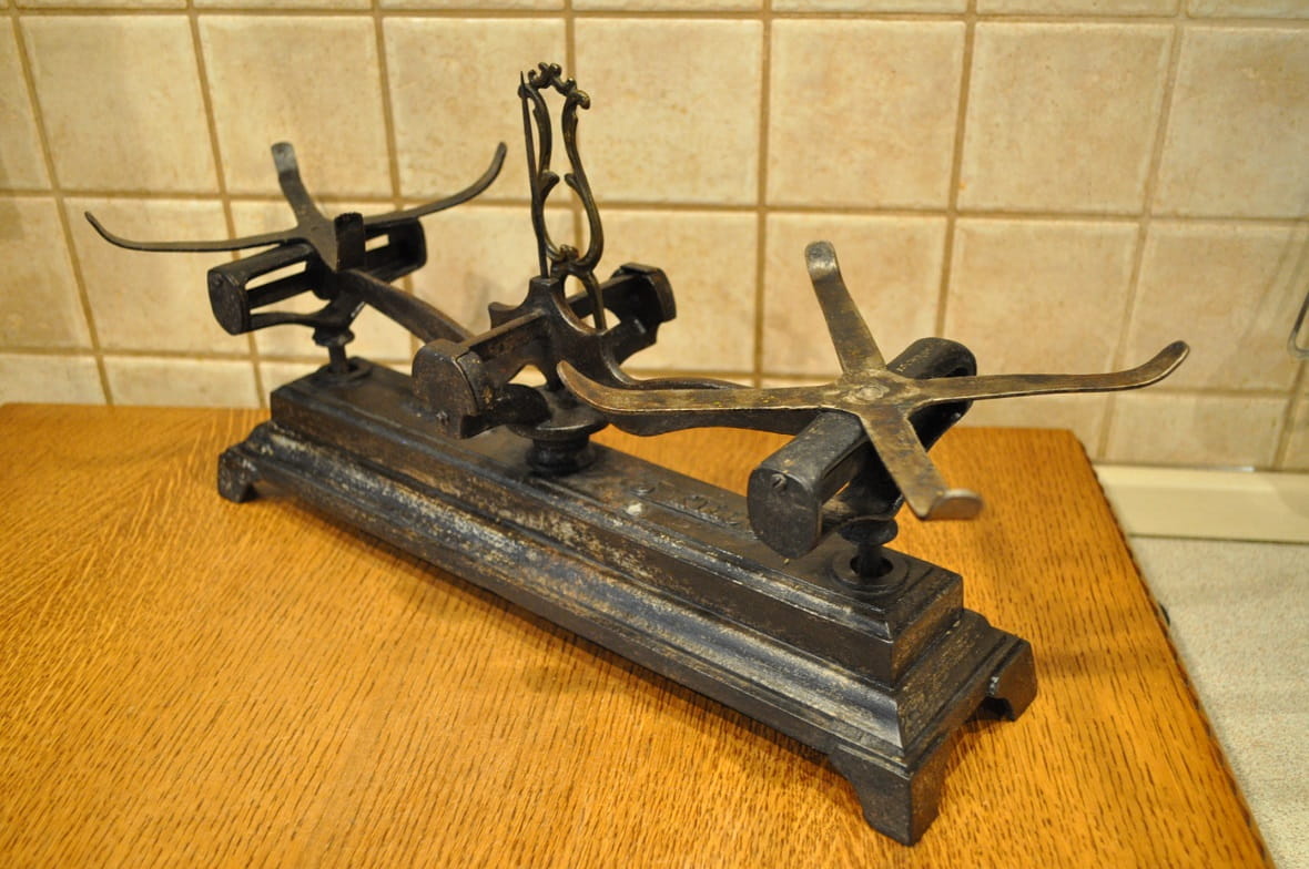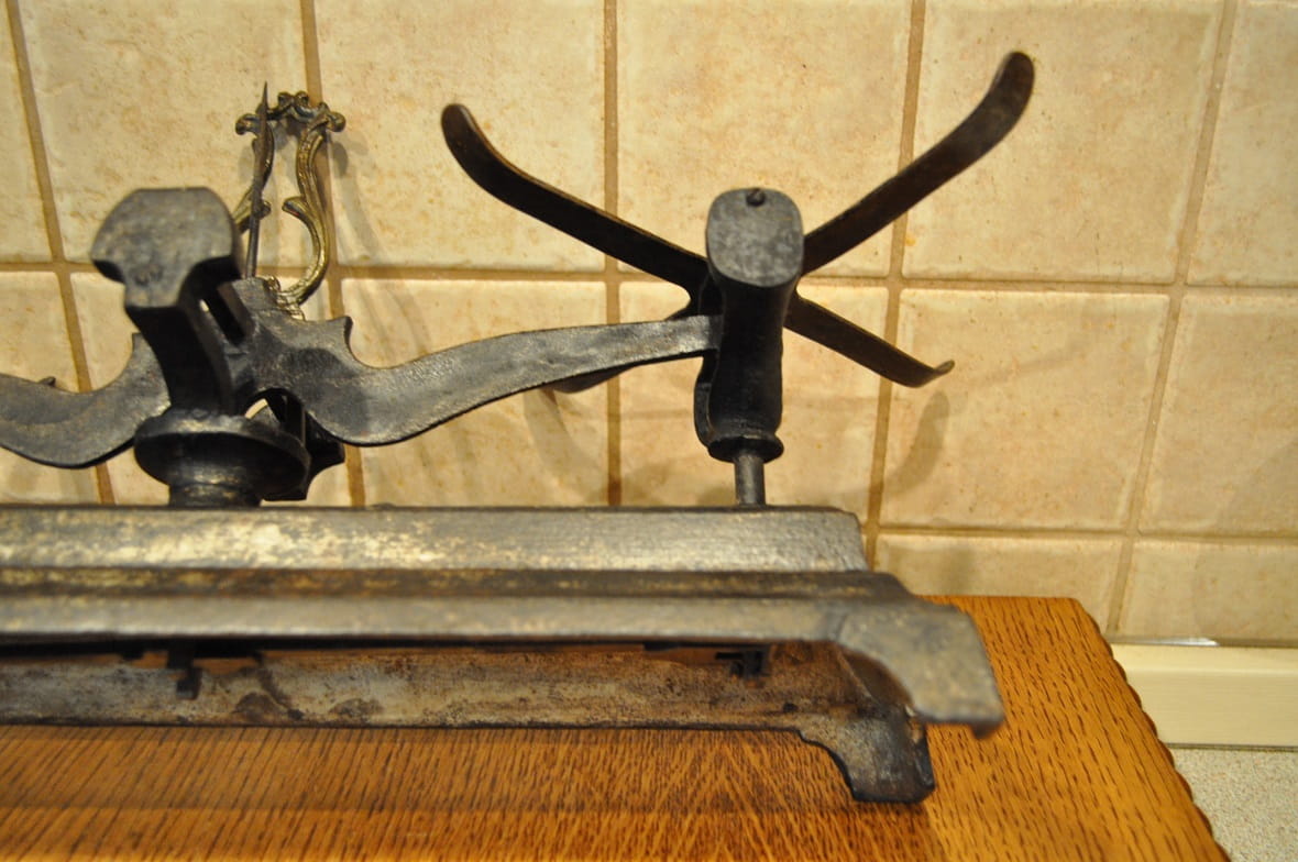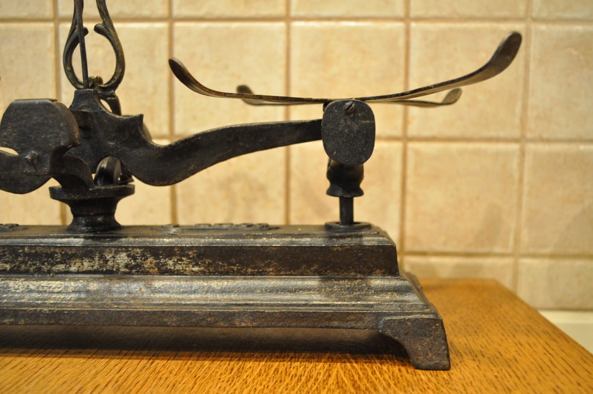 ZABYTKOWA (I poł. XX w) ANGIELSKA MASYWNA (3,6 kg / 46,5 cm) ŻELIWNA WAGA SZALKOWA