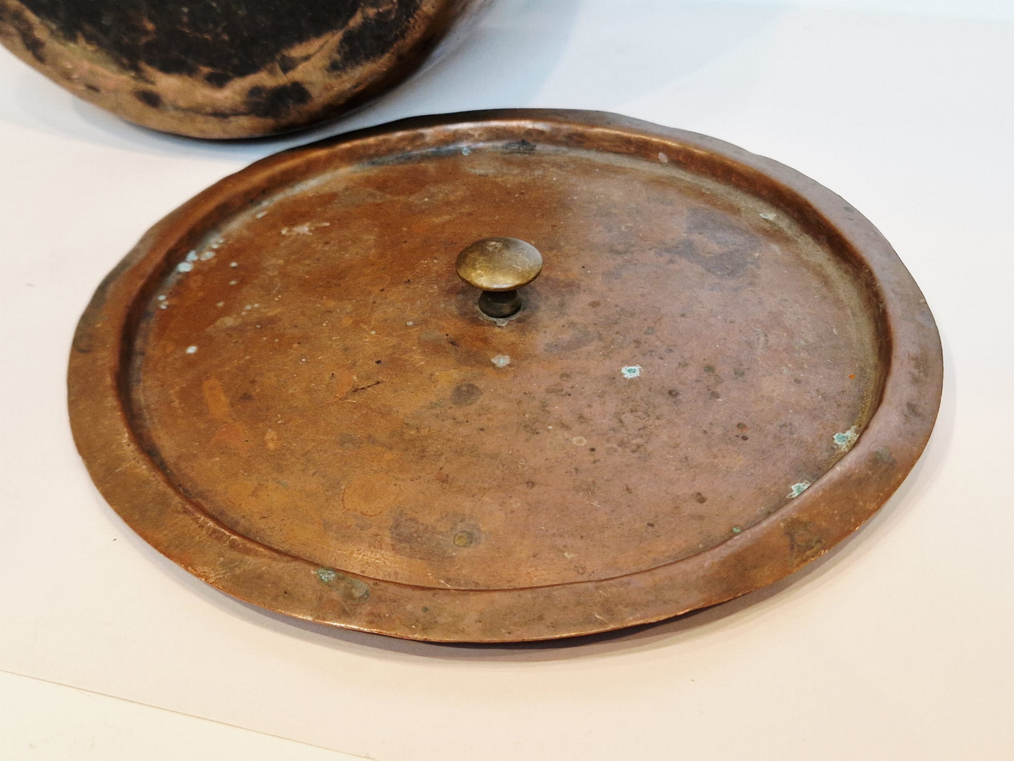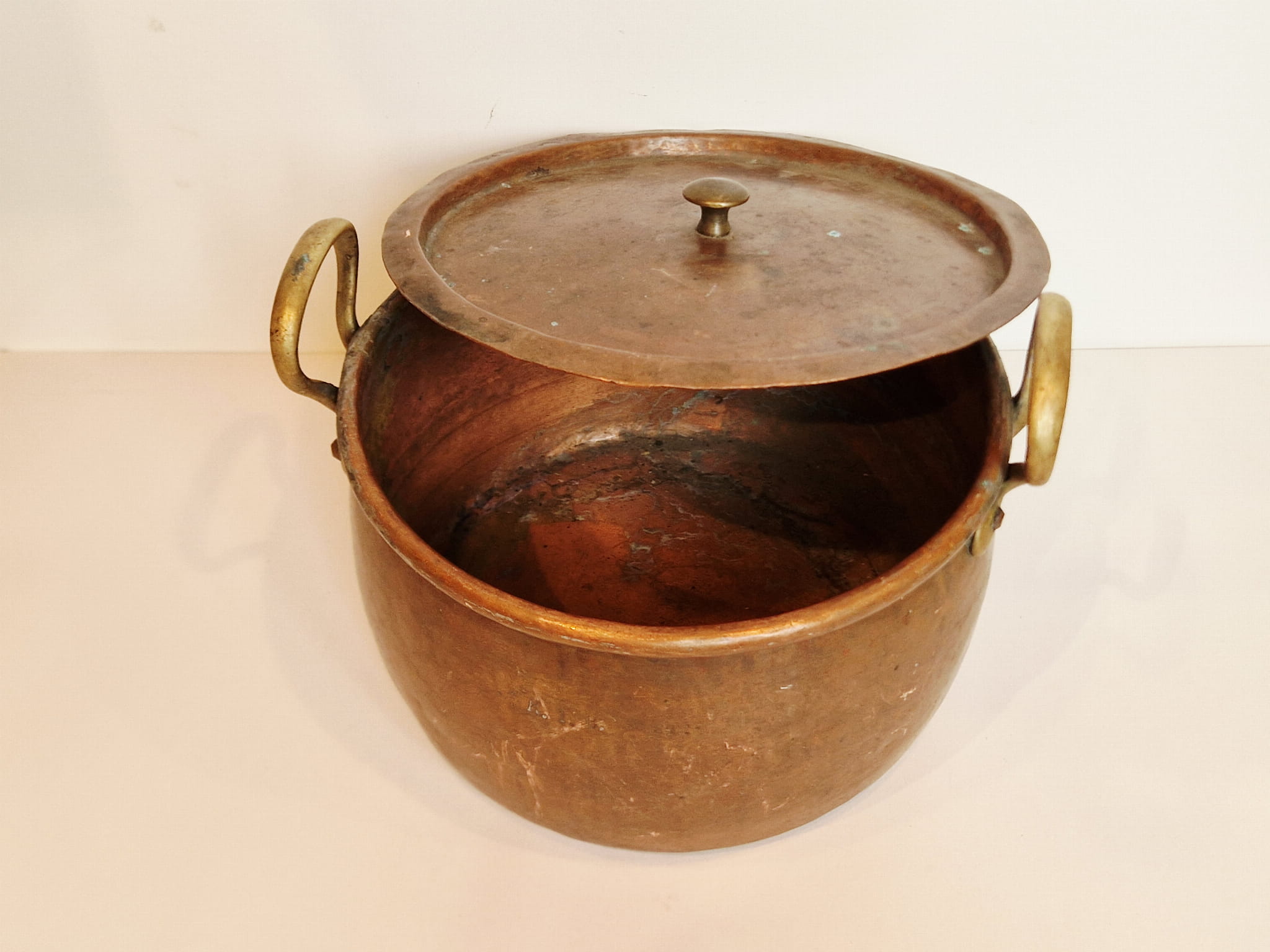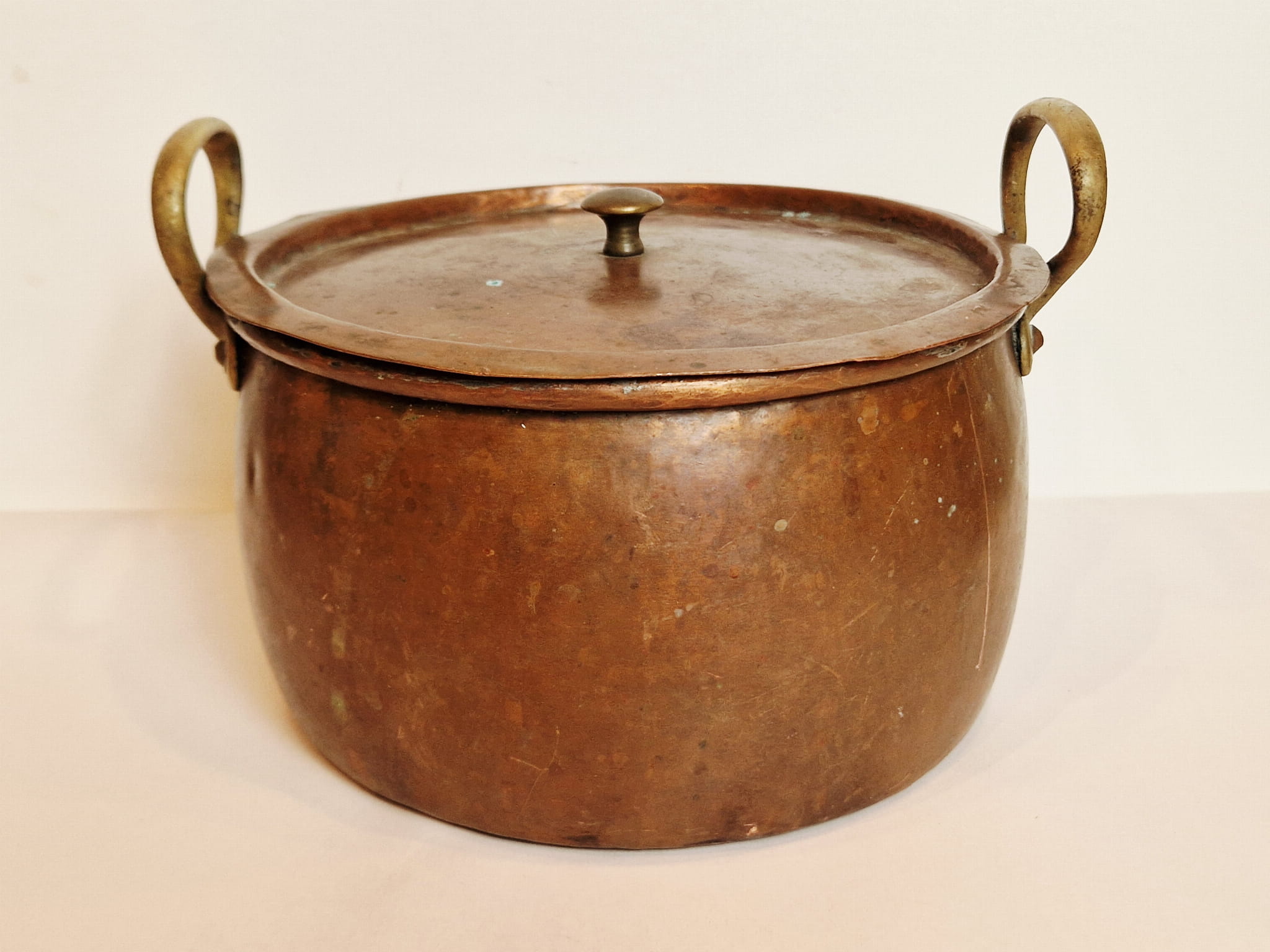 ZABYTKOWY (XIX / XX w) MASYWNY (1,72 kg / 4,0 l) MIEDZIANY GARNEK Z POKRYWKĄ