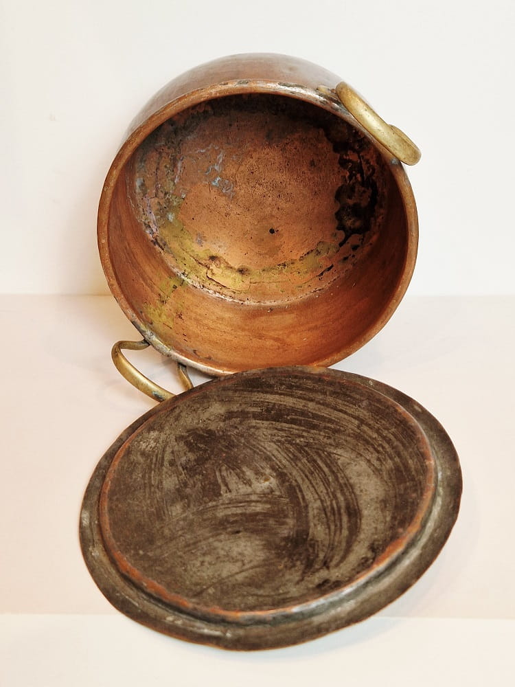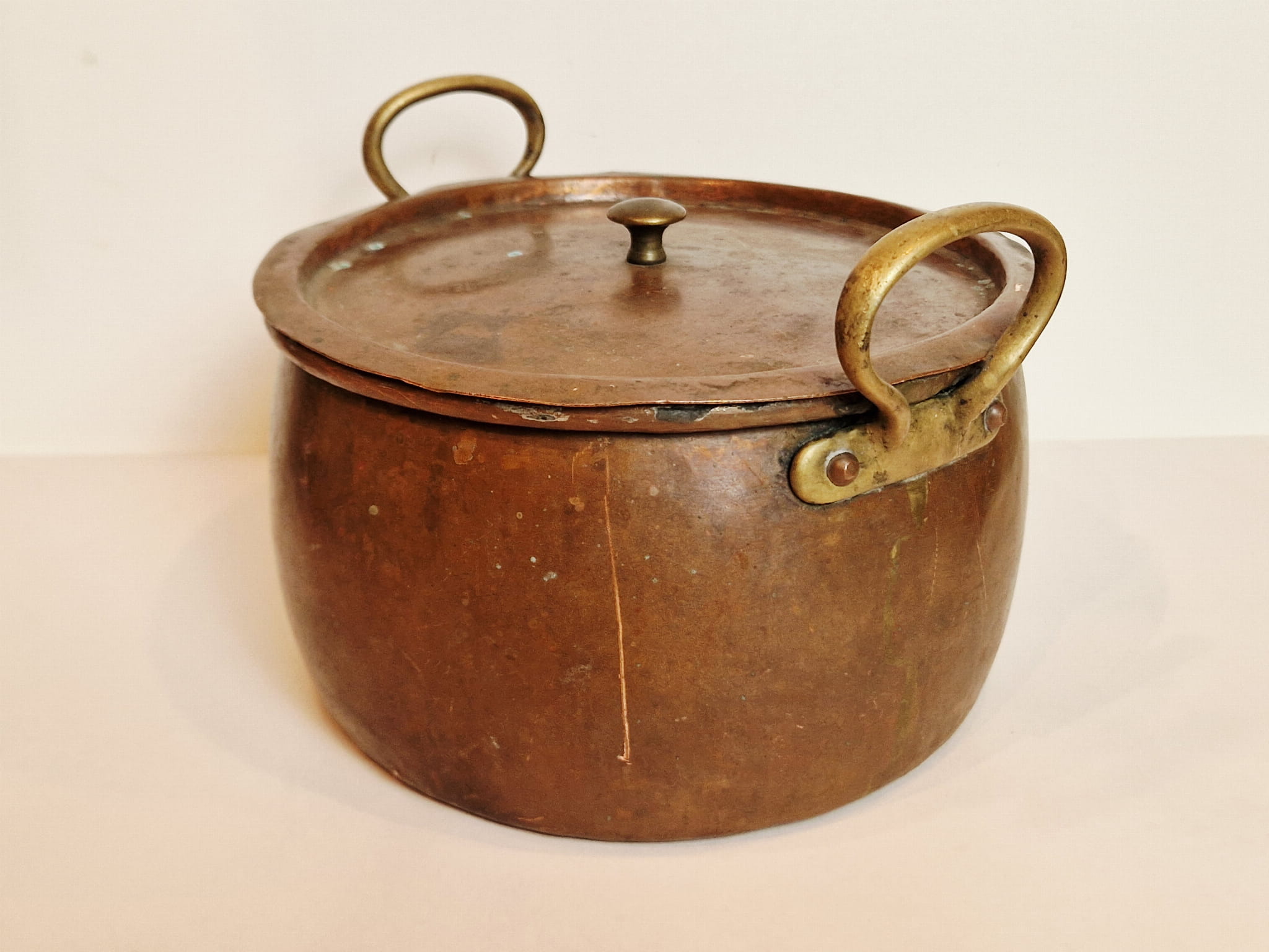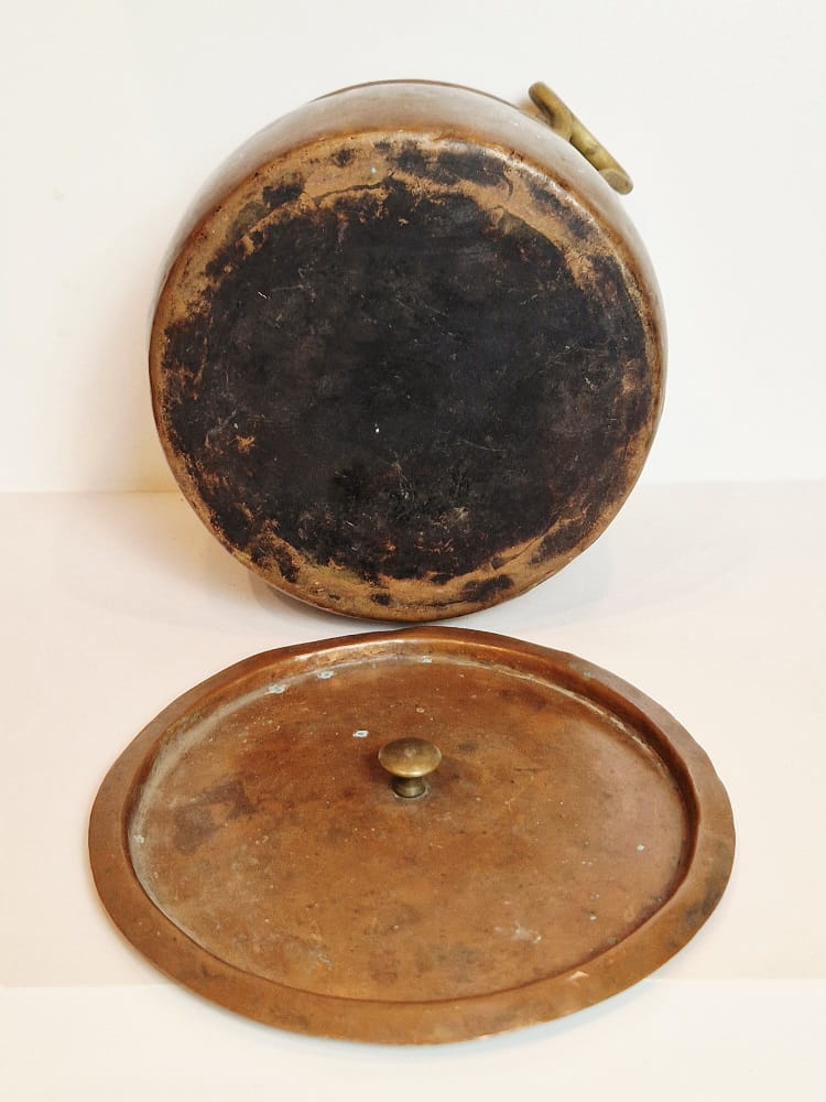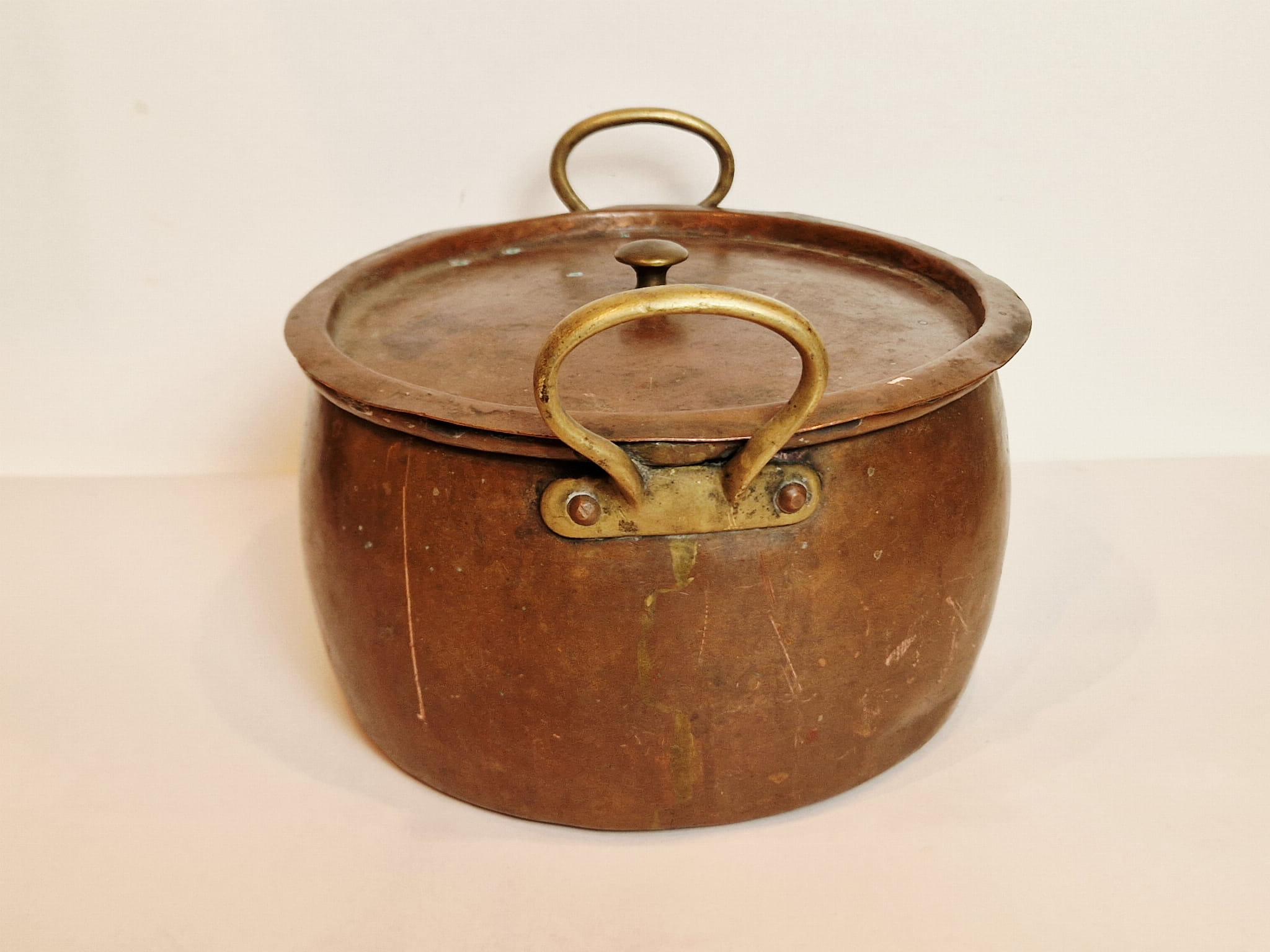 ZABYTKOWY (XIX / XX w) MASYWNY (1,72 kg / 4,0 l) MIEDZIANY GARNEK Z POKRYWKĄ
