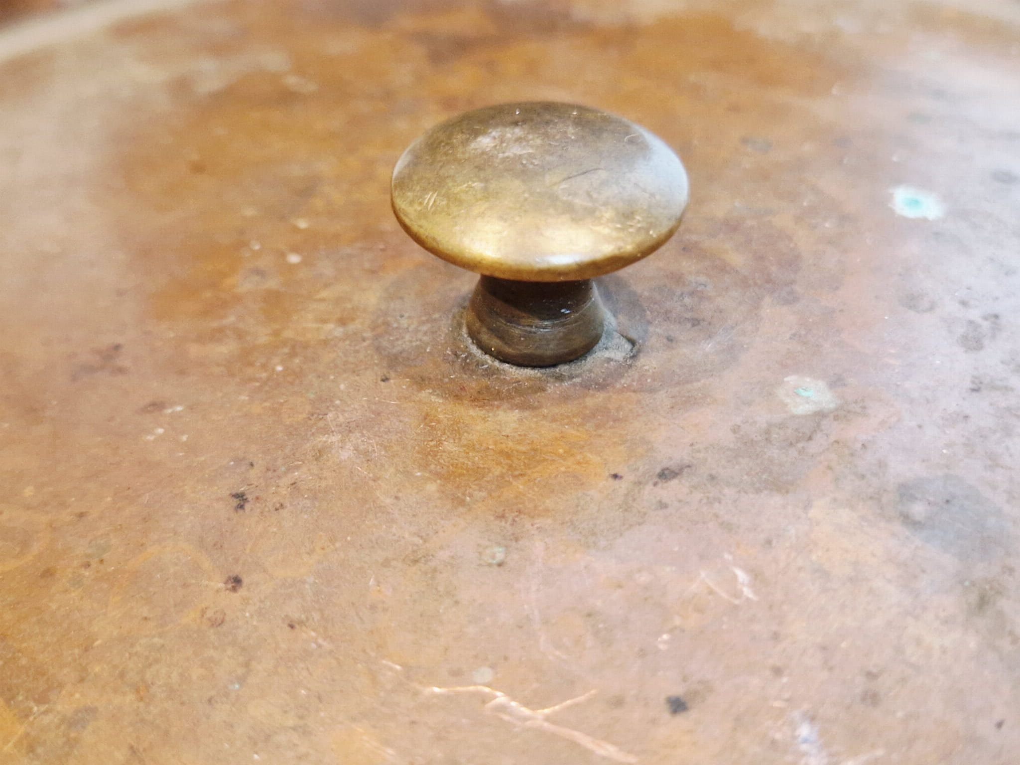 Uchwyt pokrywki - mosiężny - nitowany miedzią, w pełni stabilny, w bardzo dobrym stanie zachowania...