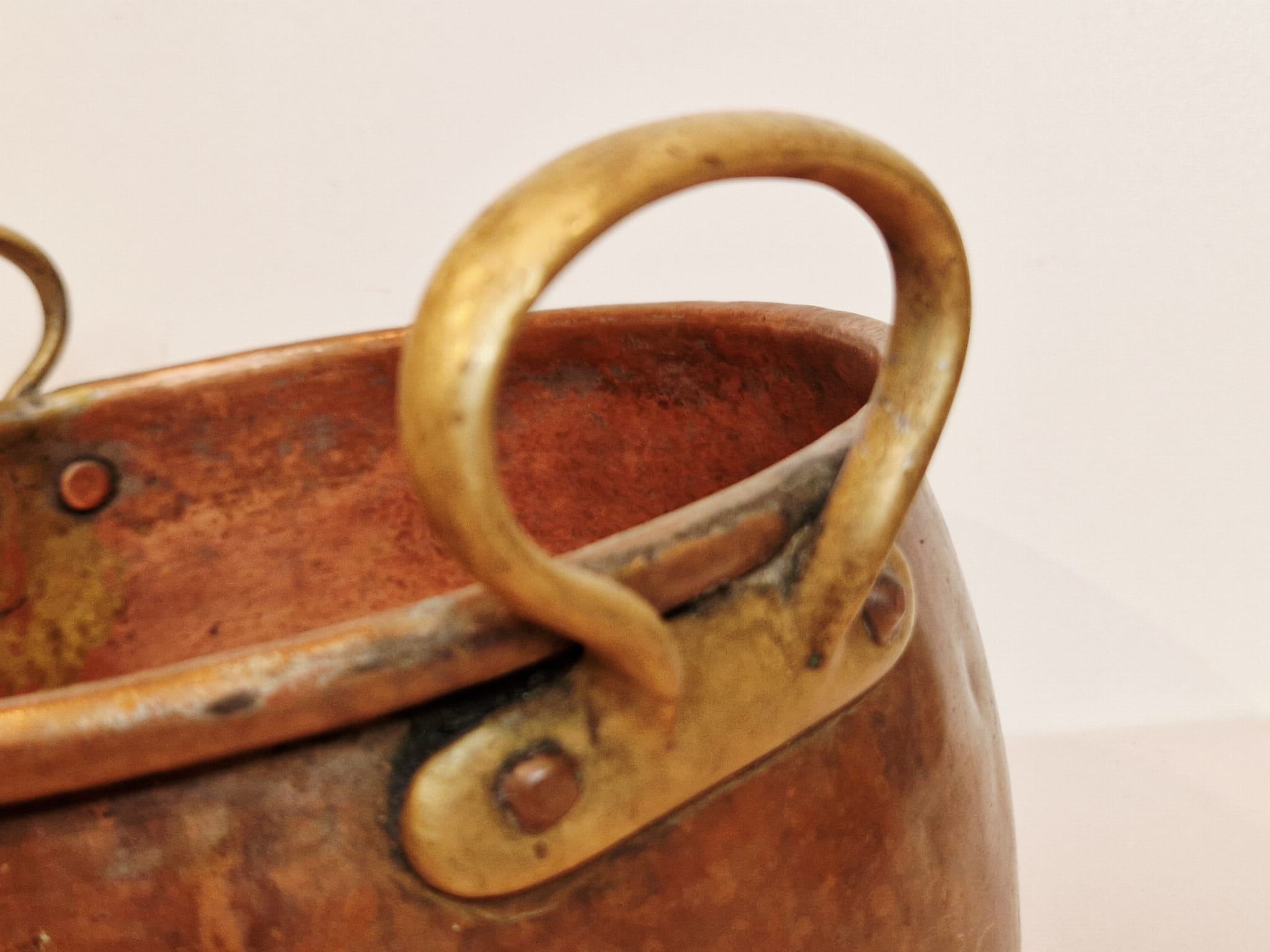 Uchwyty garnka mosiężne, nitowane miedzią - w pełni stabilne - w bardzo dobrym stanie zachowania...