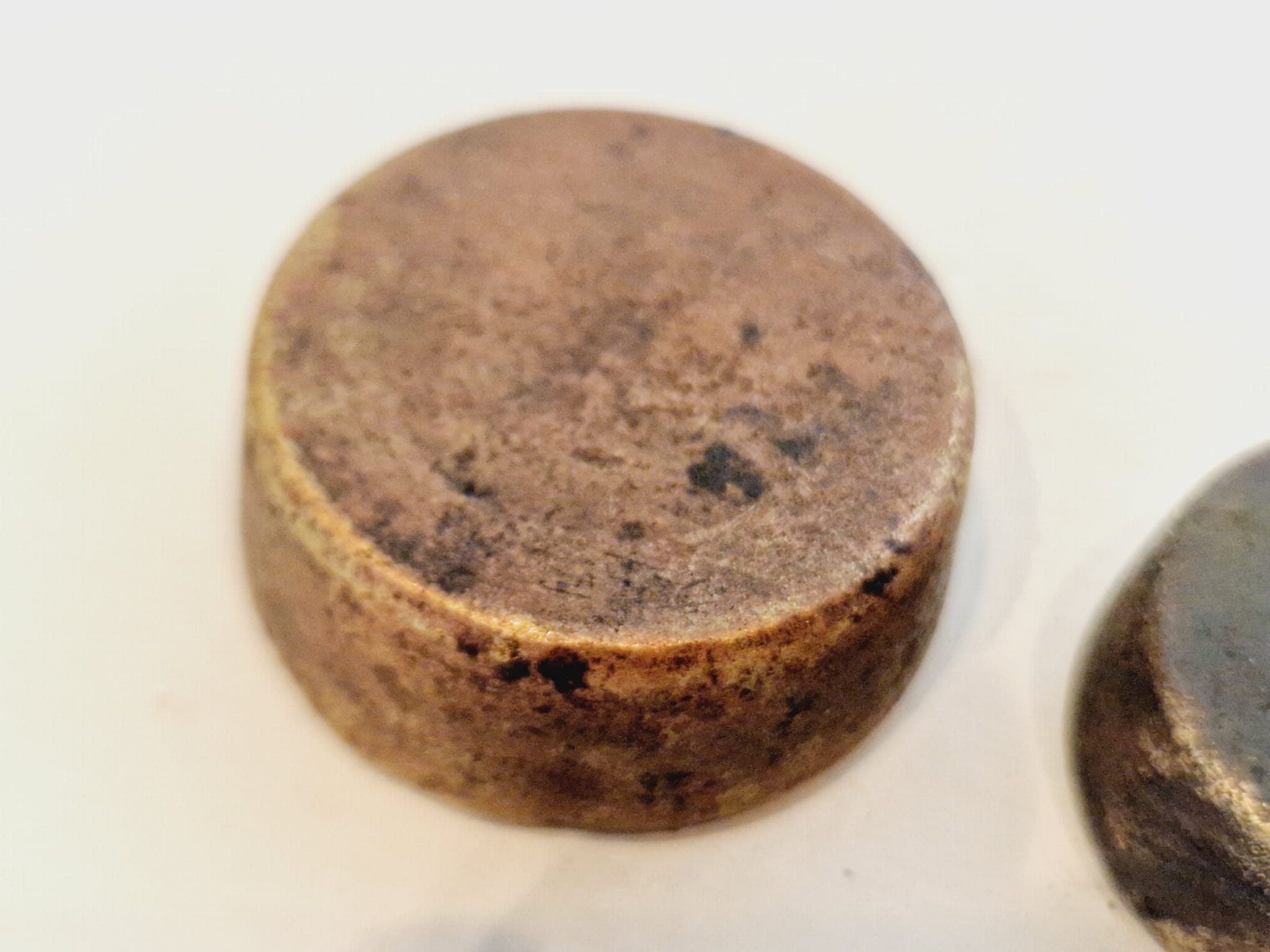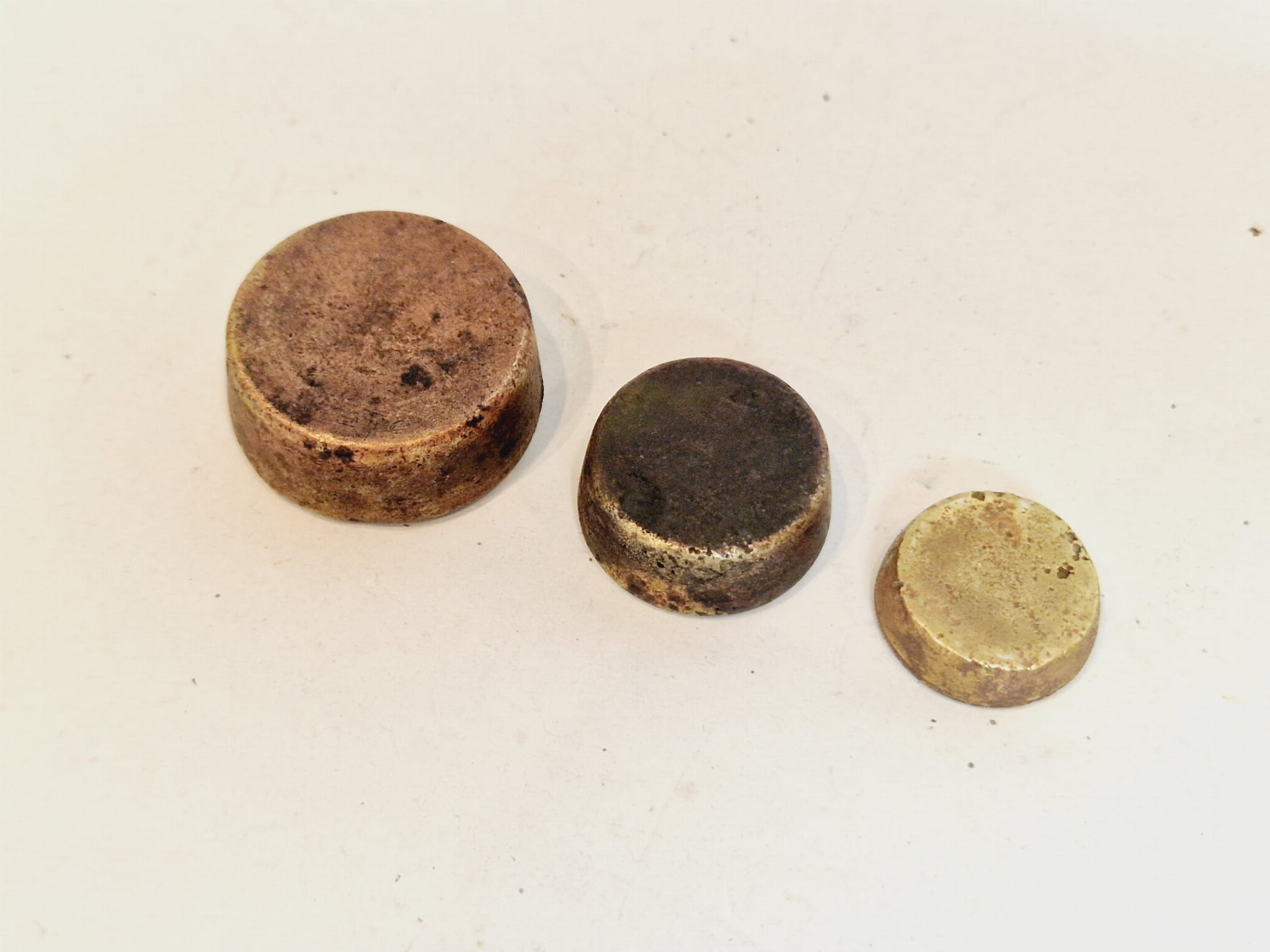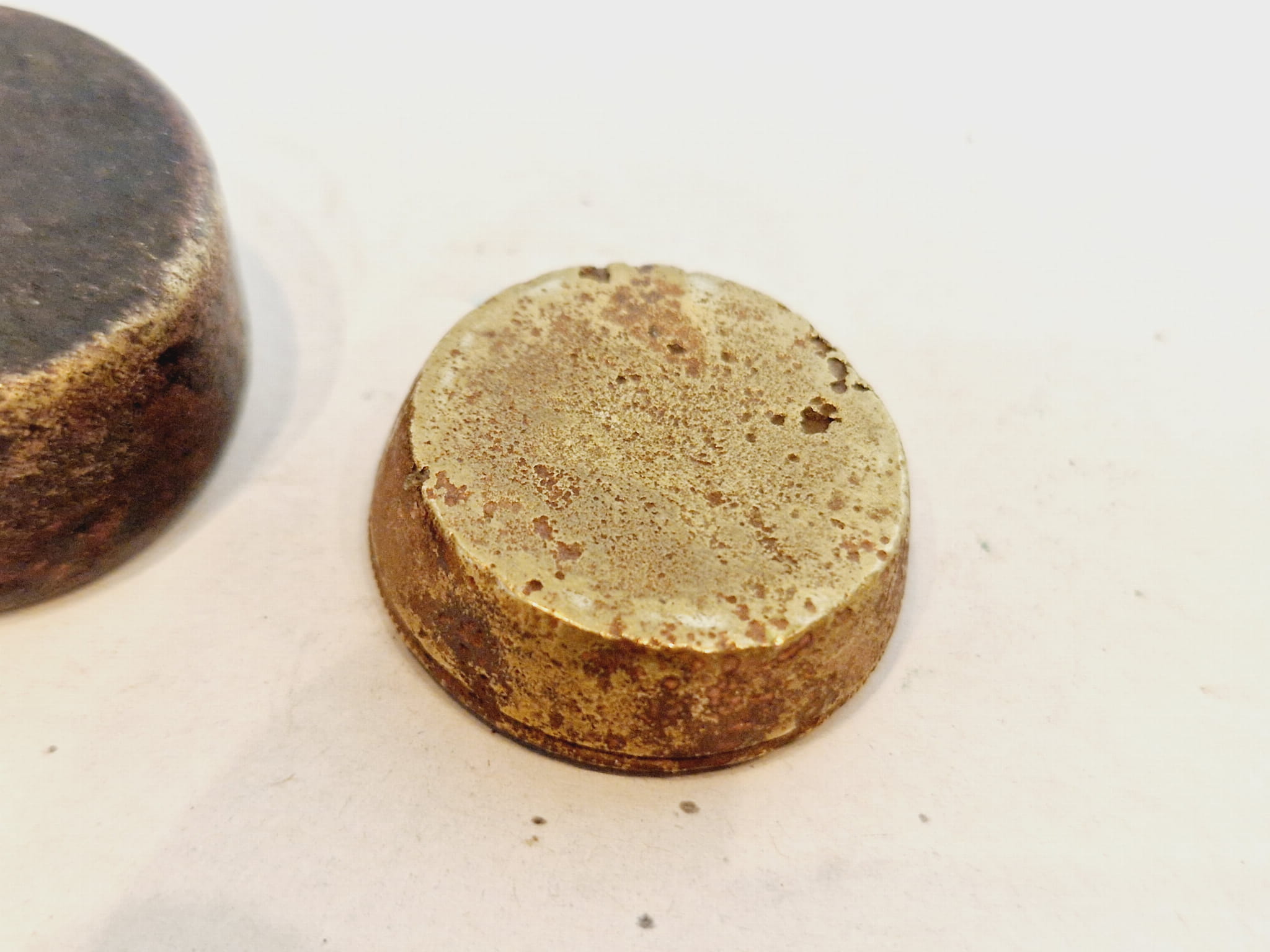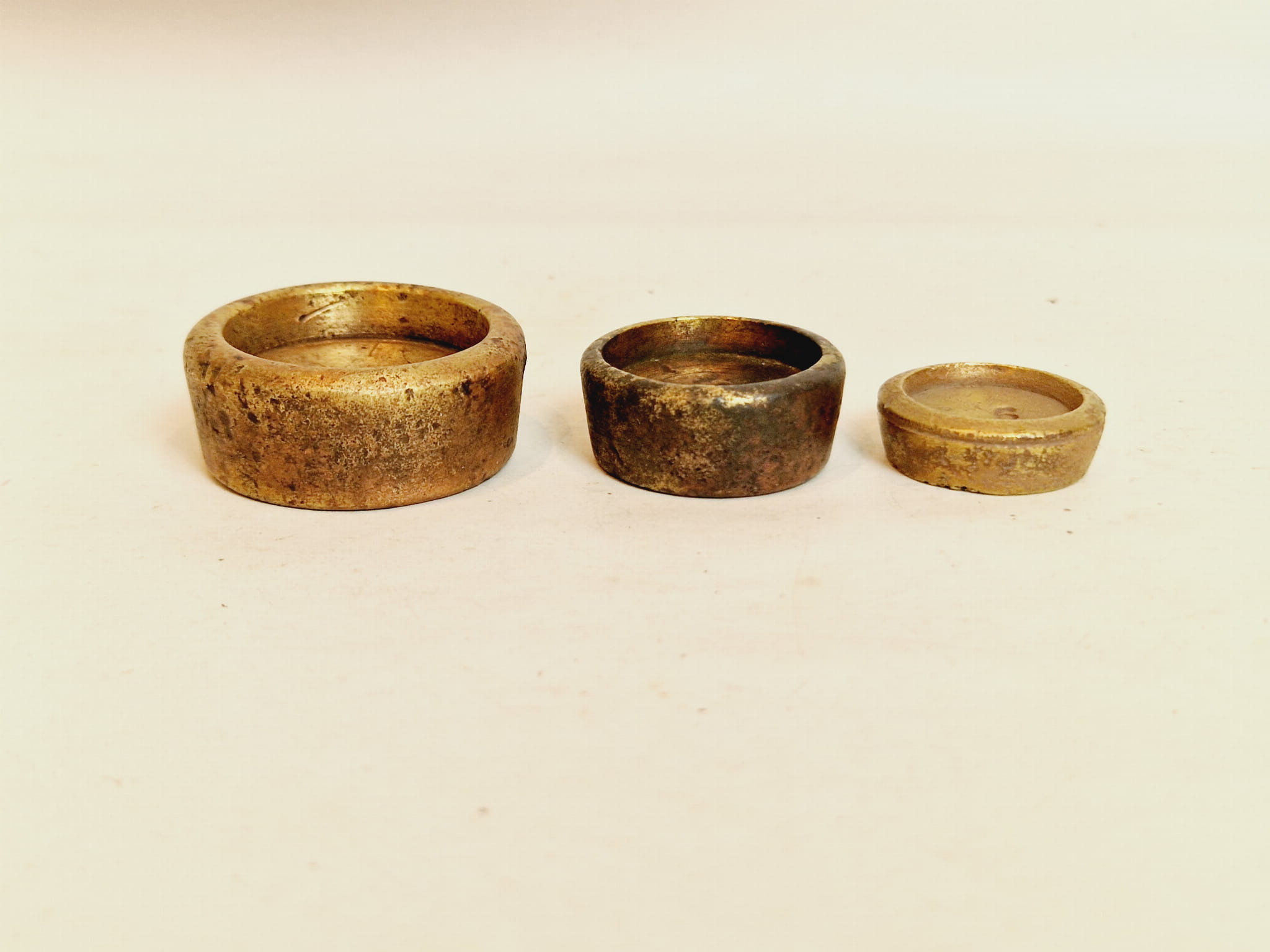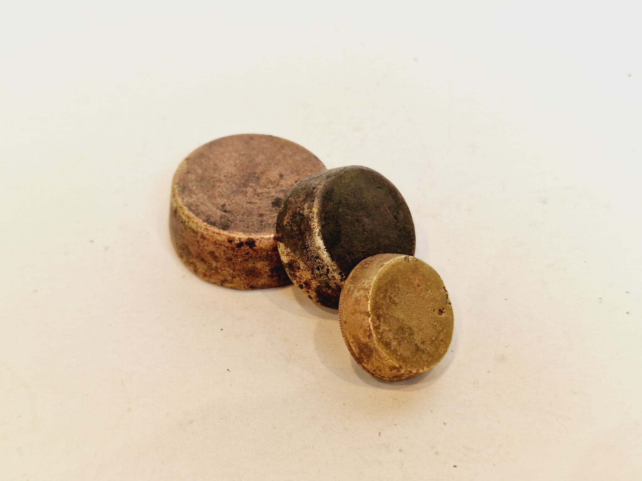 Odważniki nie były czyszczone, pokryte są oryginalną, starą, patyną.