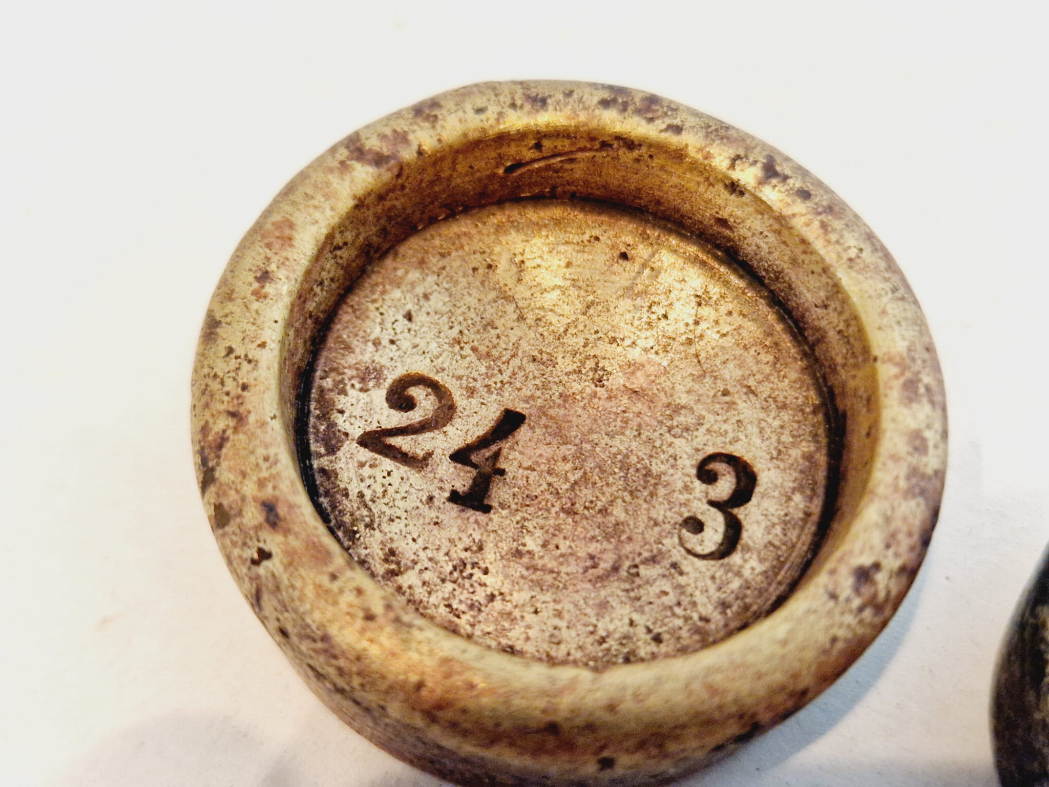 Brak czytelnych sygnatur na spodzie odważnika 24 З...