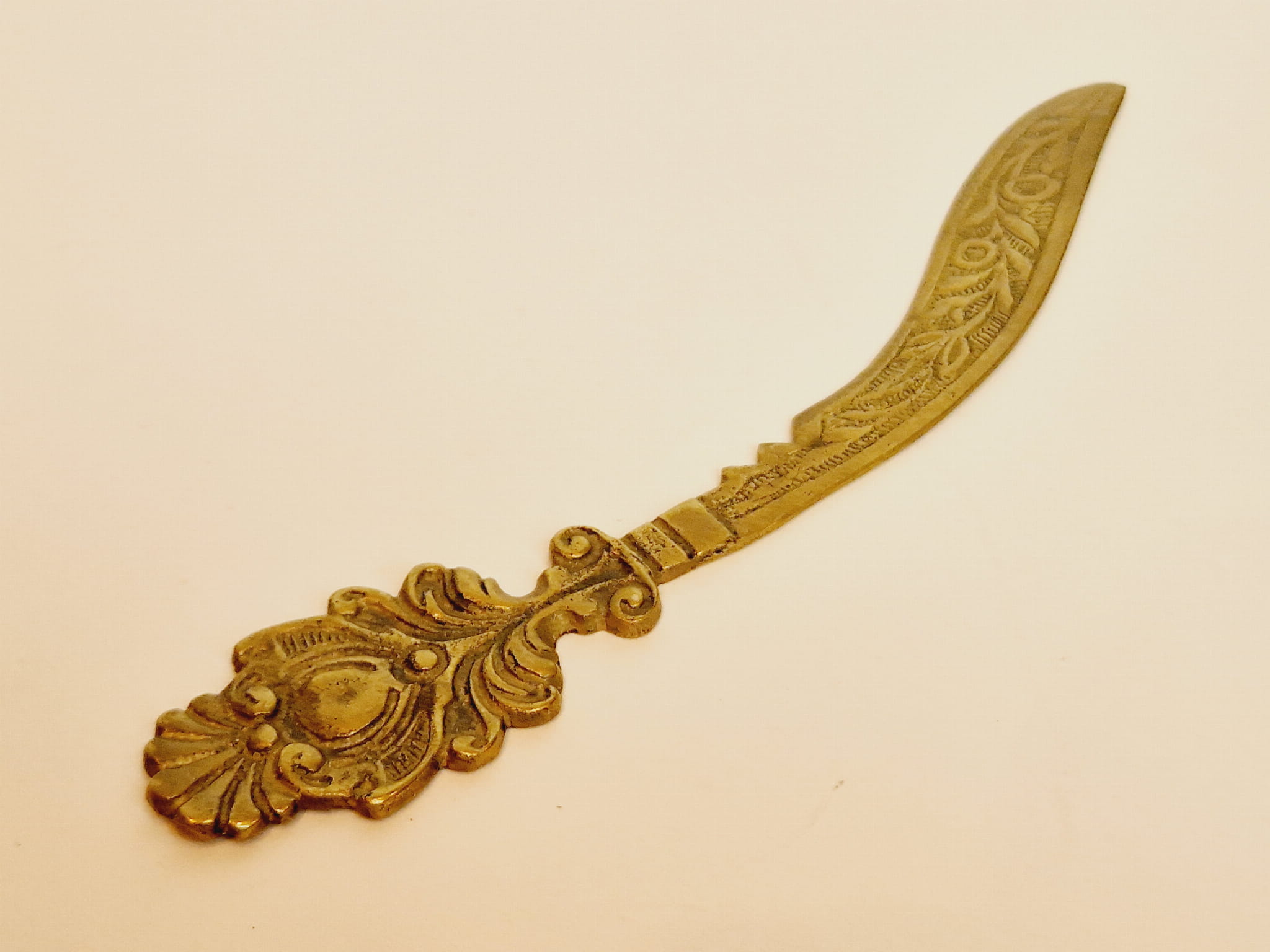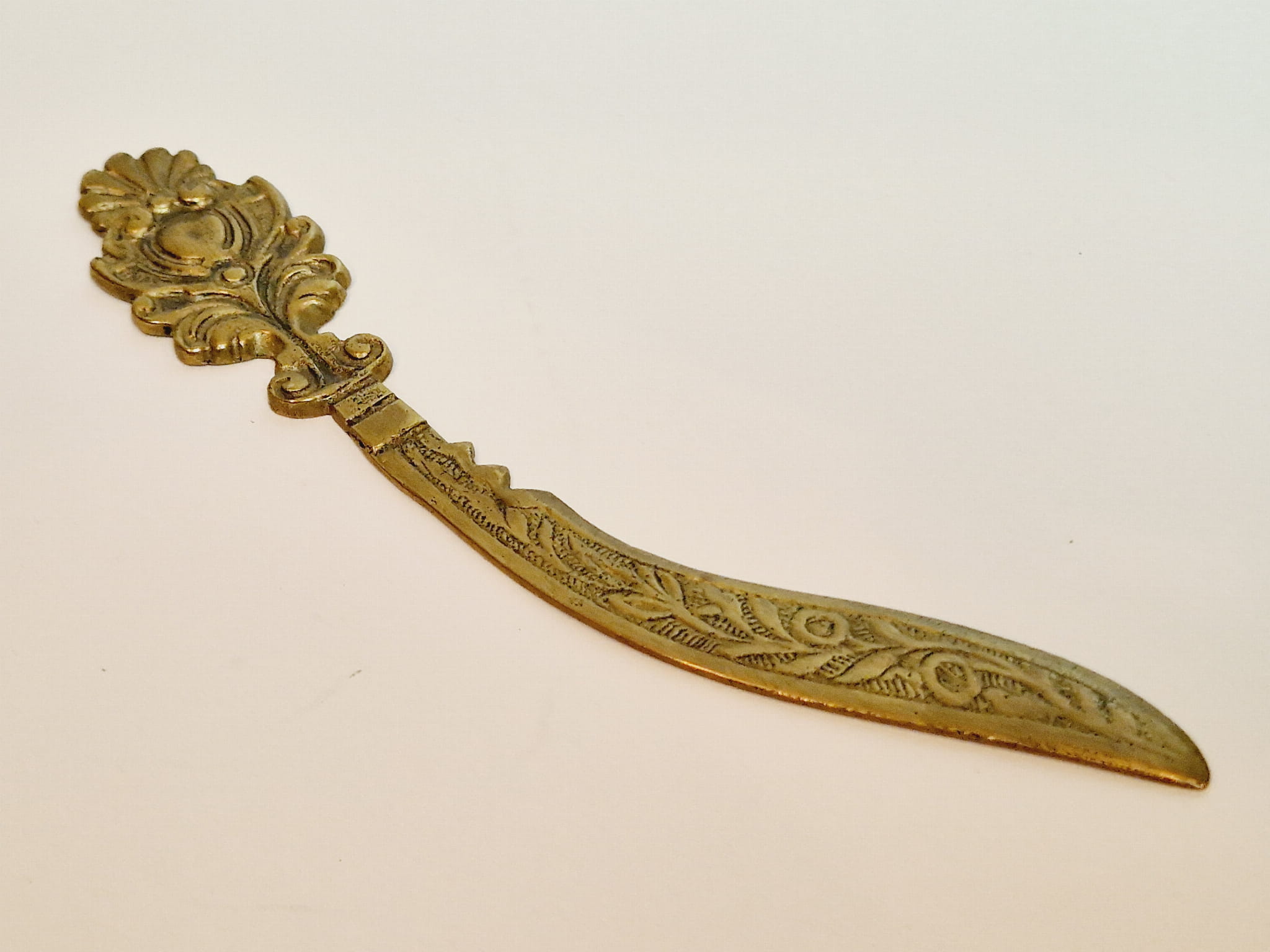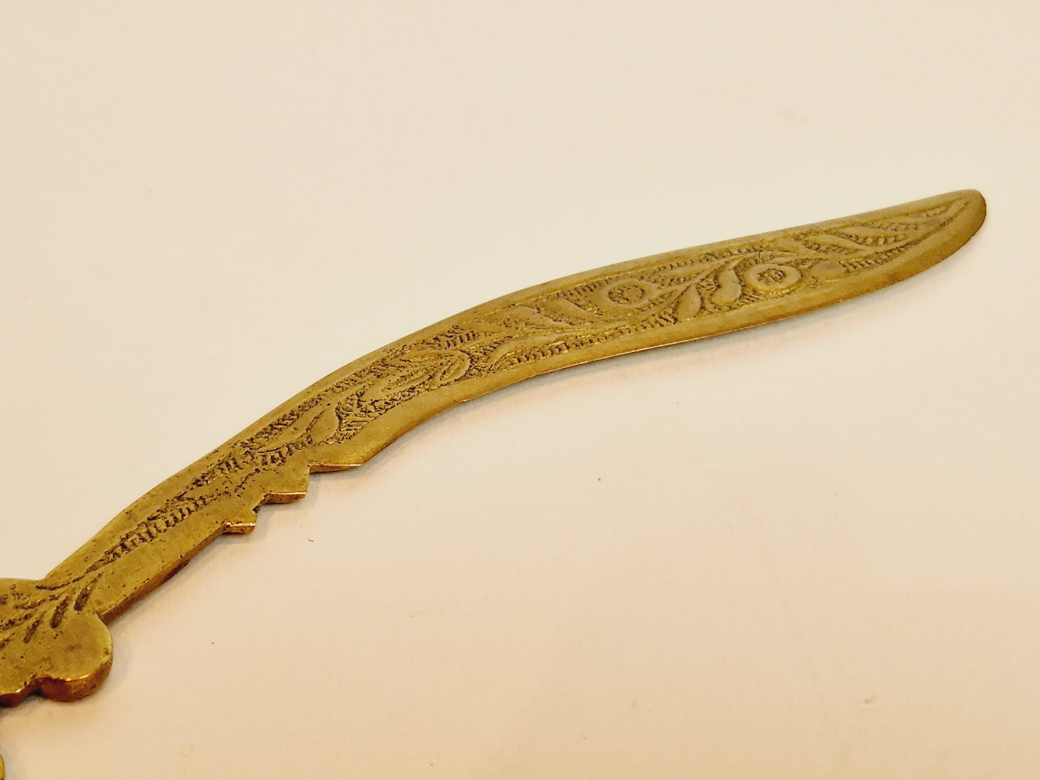(XIX / XX w) SECESJA - ZABYTKOWY MOSIĘŻNY NÓŻ (19,0 cm / 51 g) DO LISTÓW KOPERT
