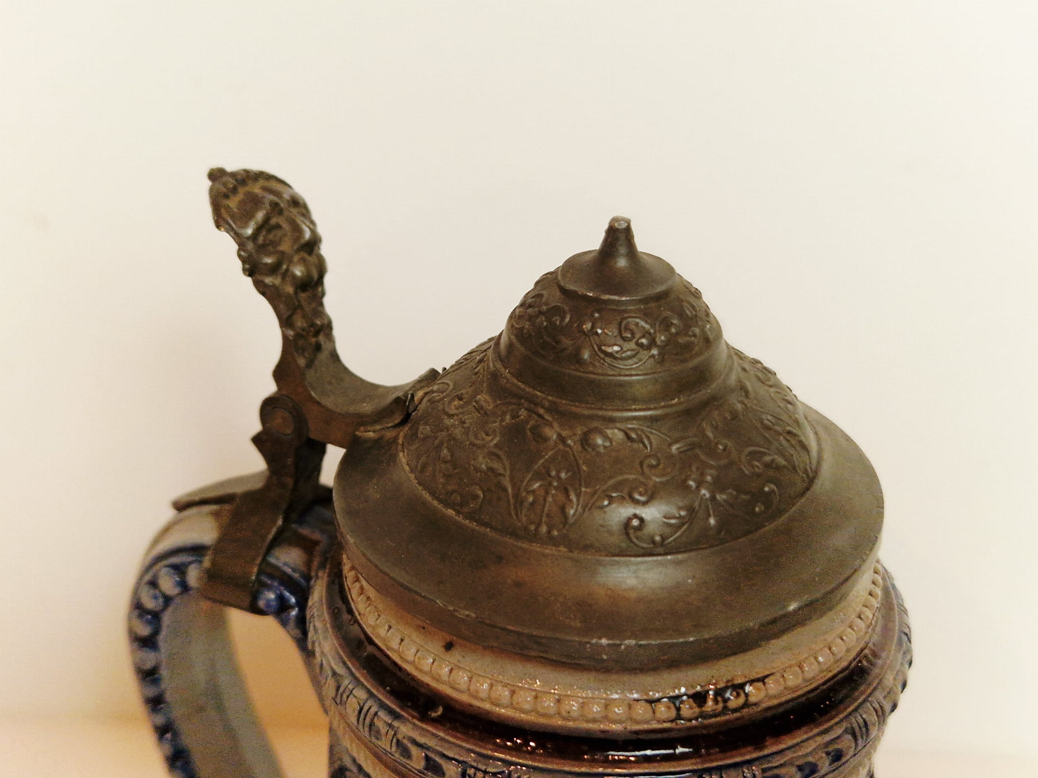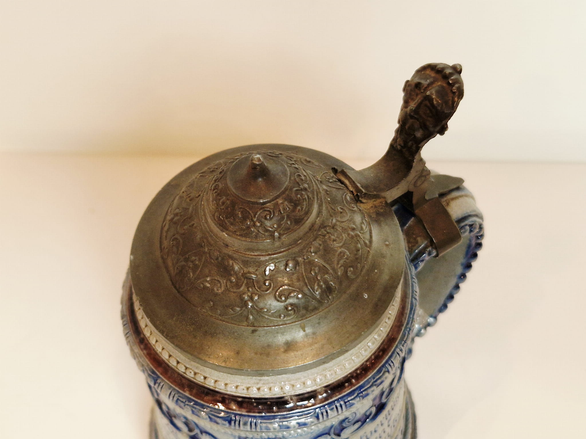 ORYGINALNY ZABYTKOWY (XIX / XX w) SYGNOWANY ("235 / L.") KUFEL KAMIONKOWY Z CYNOWĄ POKRYWKĄ