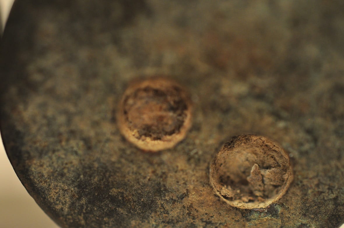 Spód wysokiego odważnika bez sygnatur.