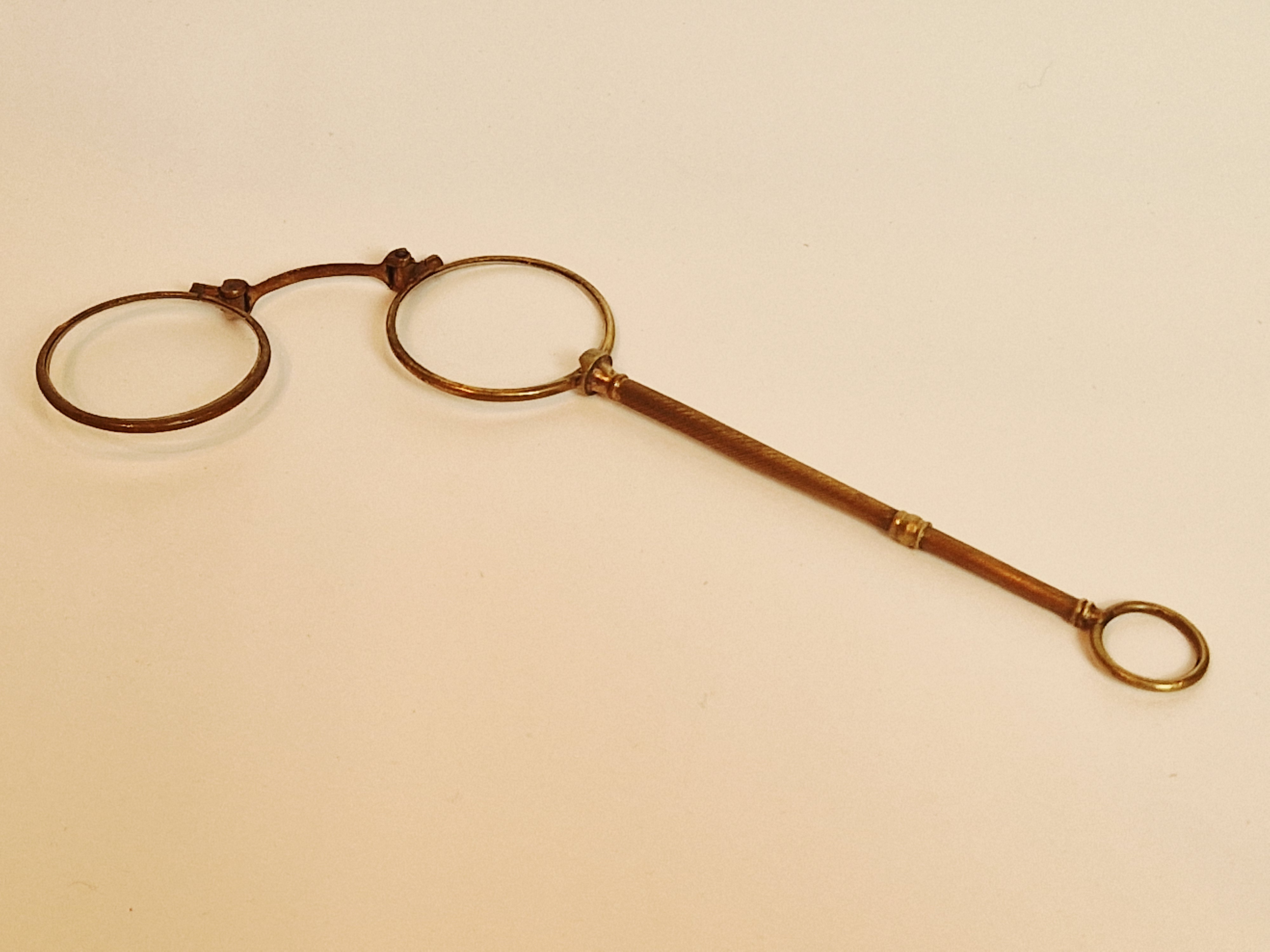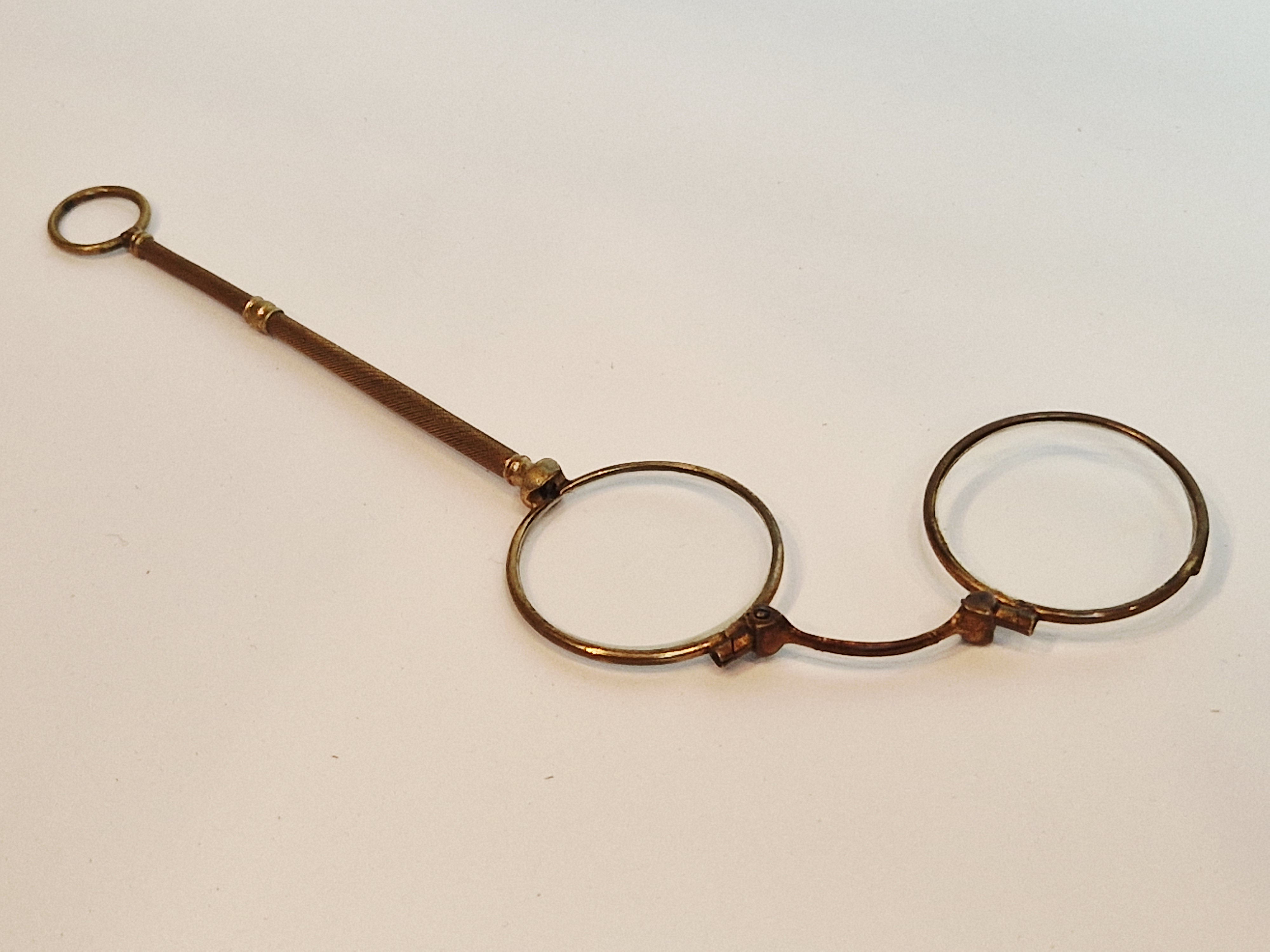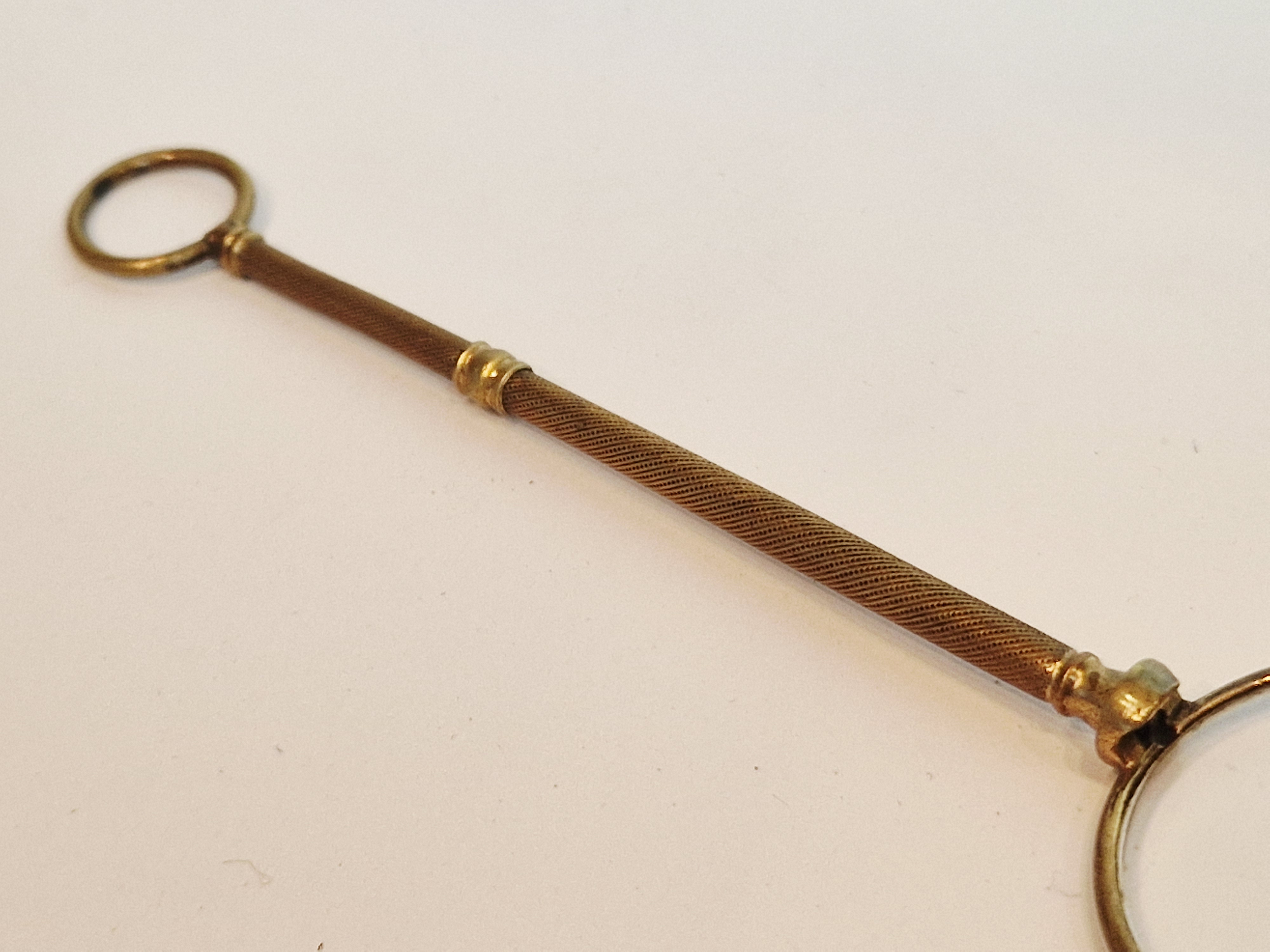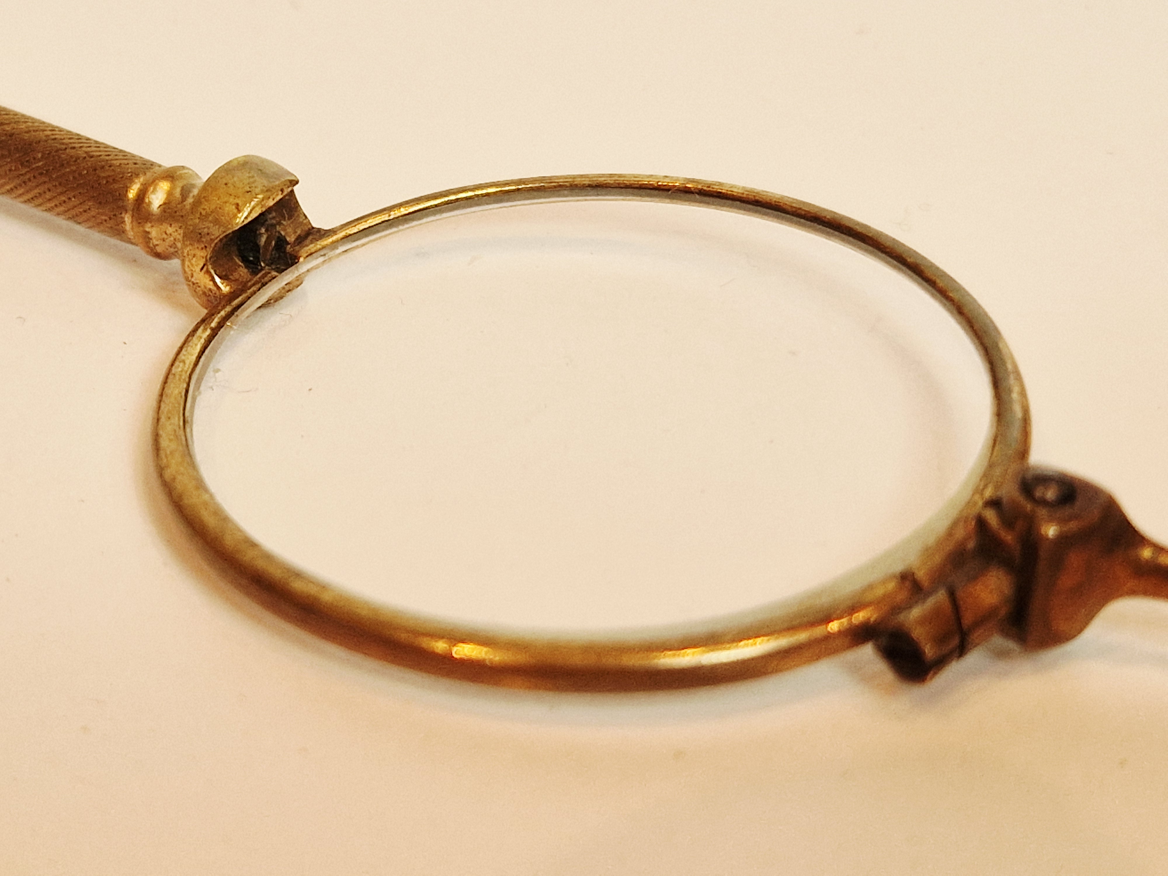 Lorgnon w pierwotnym złoceniu bez widocznych przytarć / ubytków powłoki.