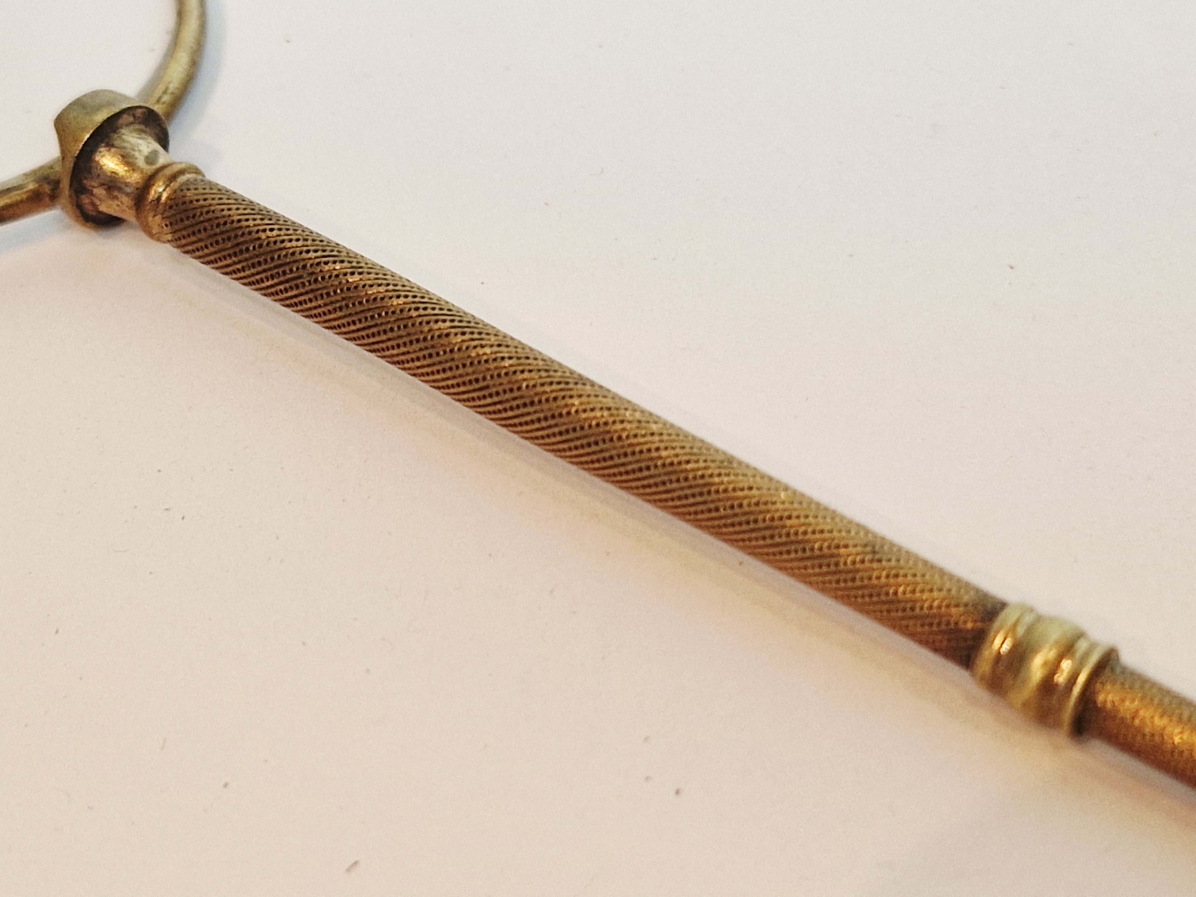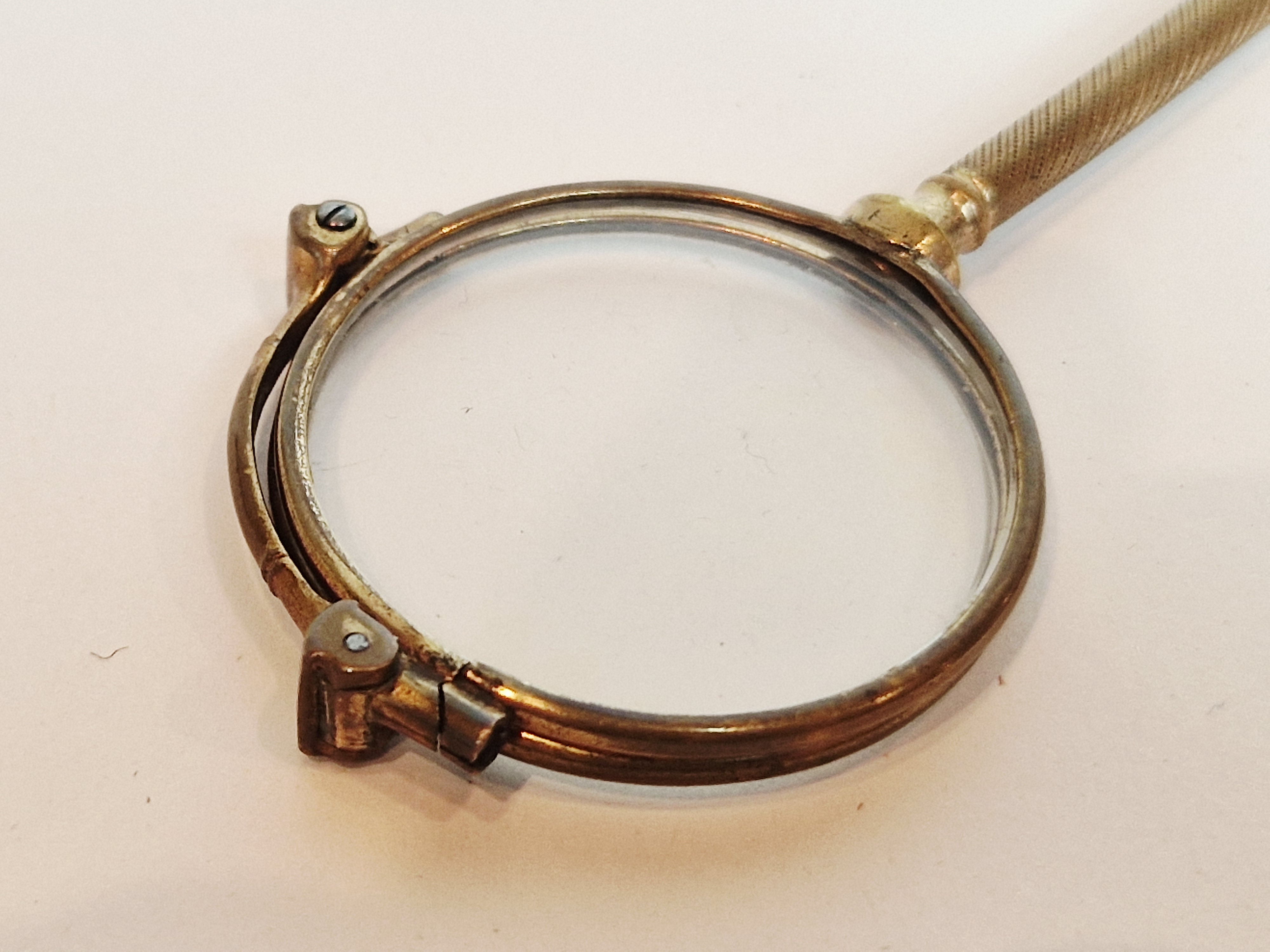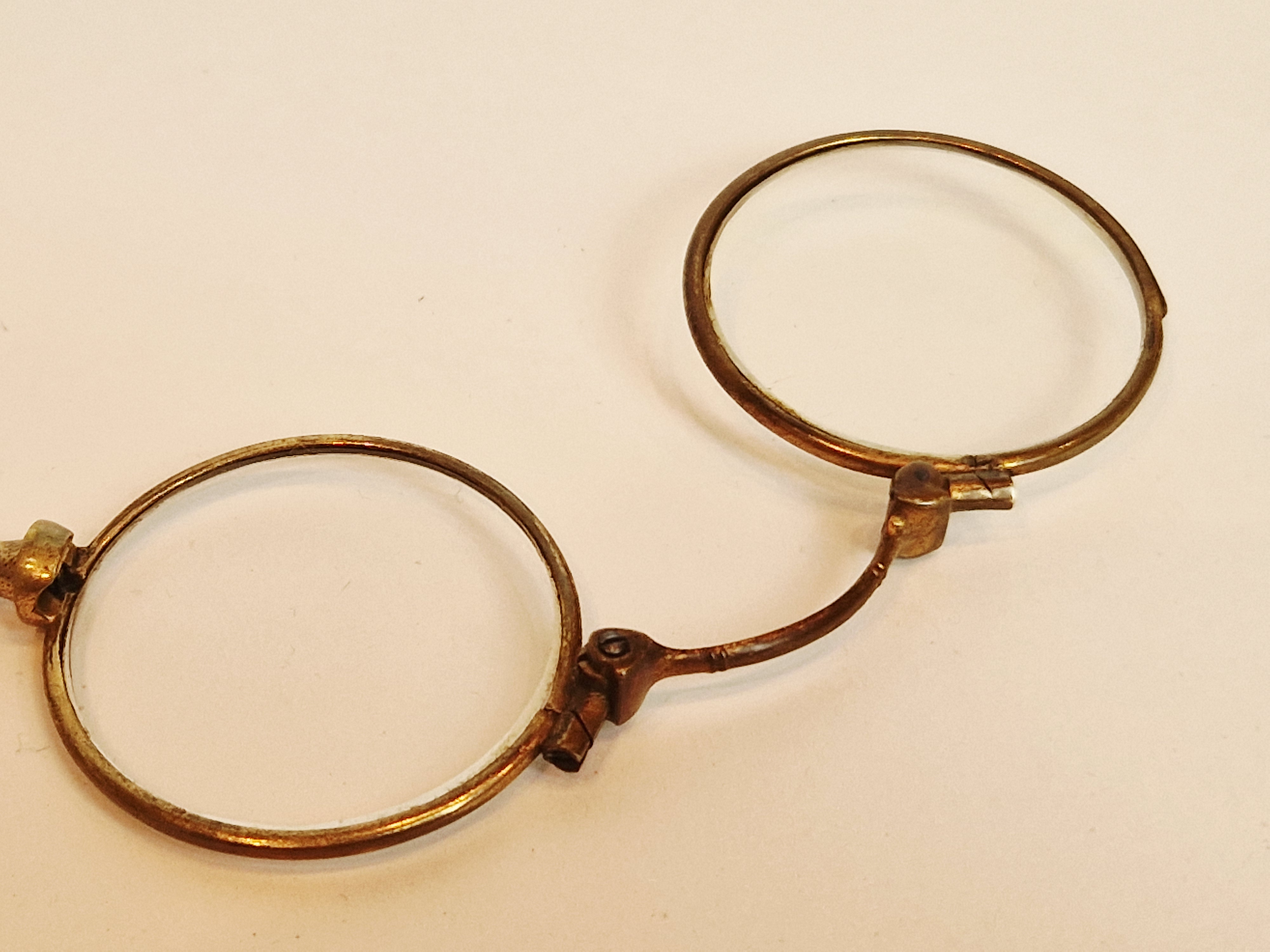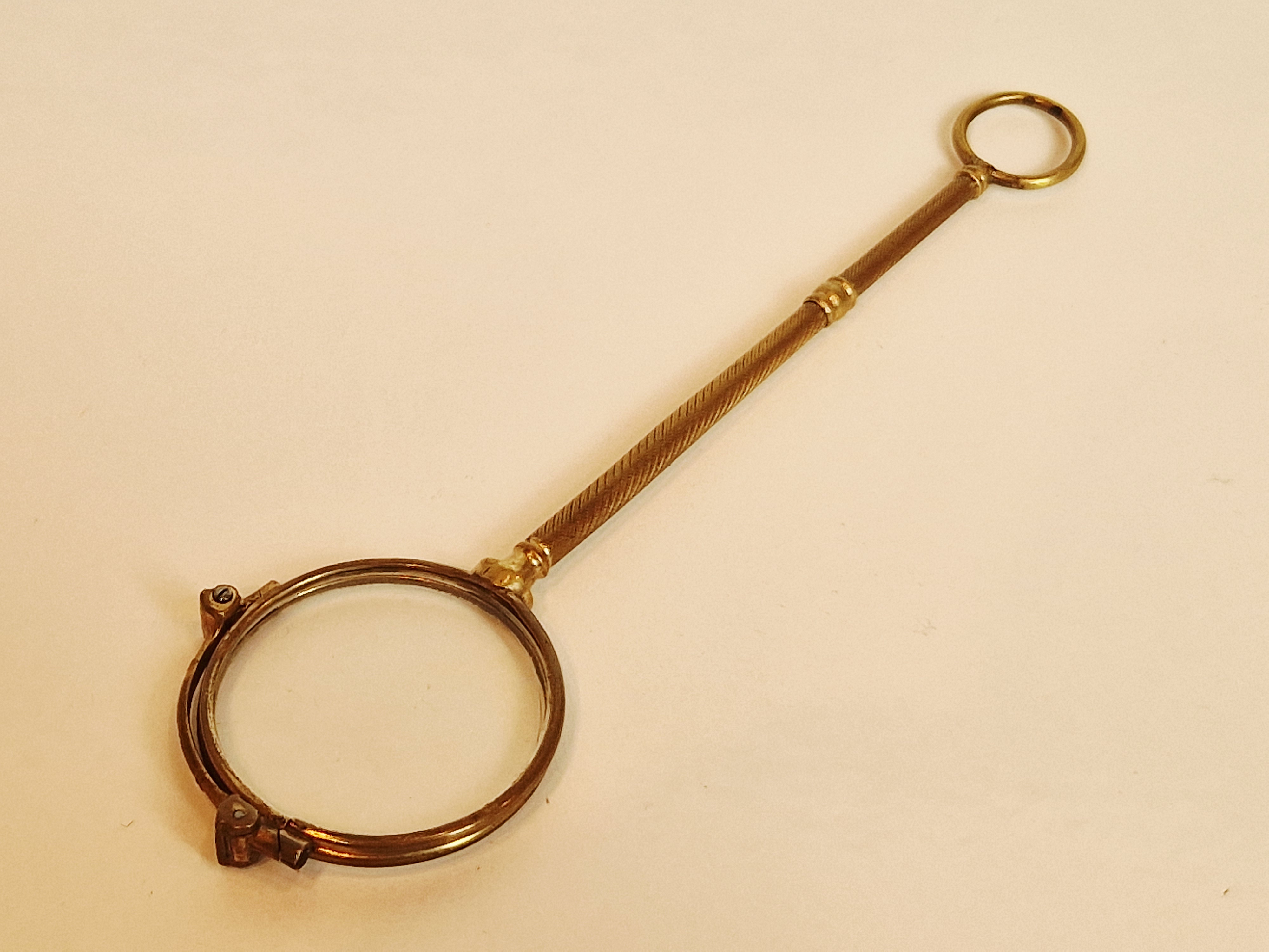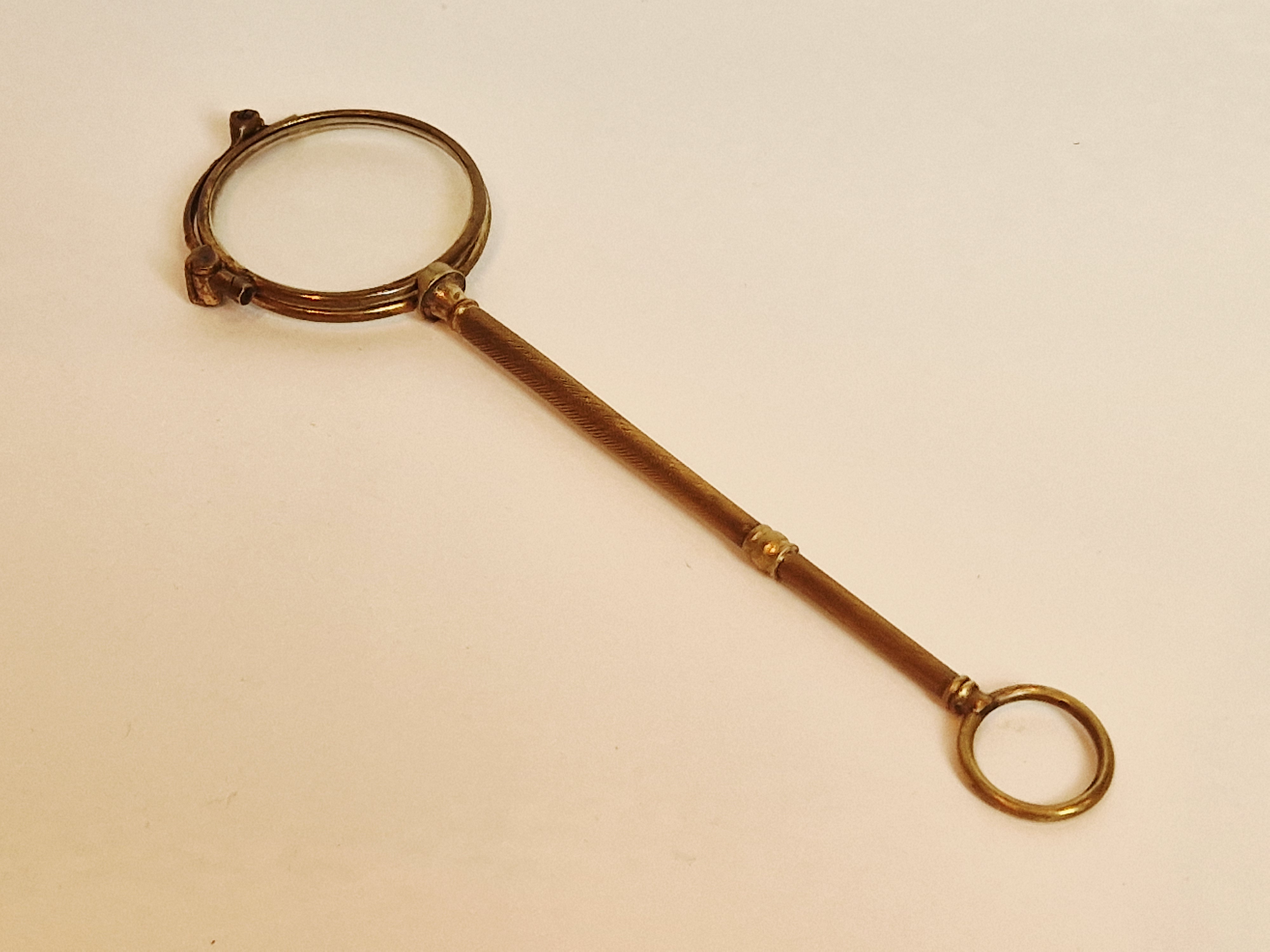 Lorgnon w pierwotnym złoceniu bez widocznych przytarć / ubytków powłoki.