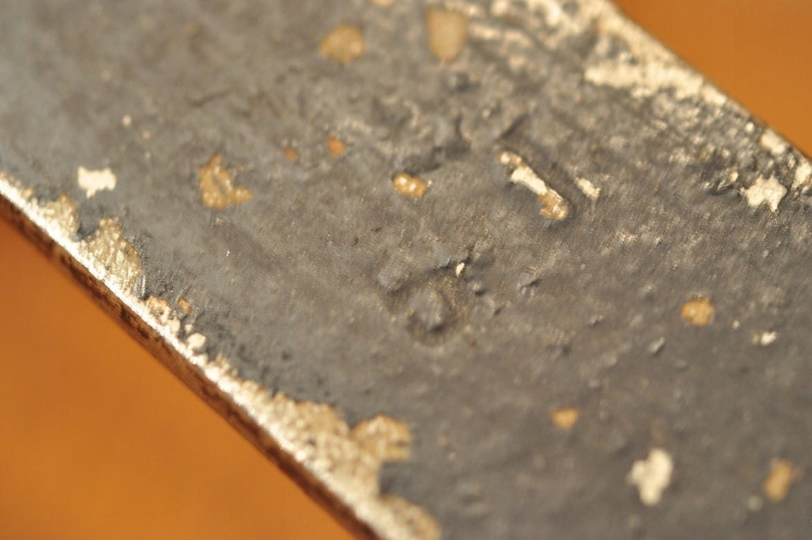 Uchwyt żelazny, nitowany miedzią - stabilny - w bardzo dobrym stanie zachowania.