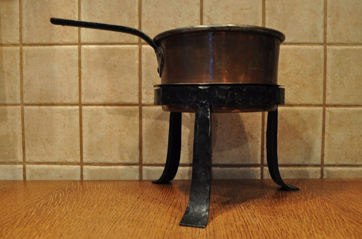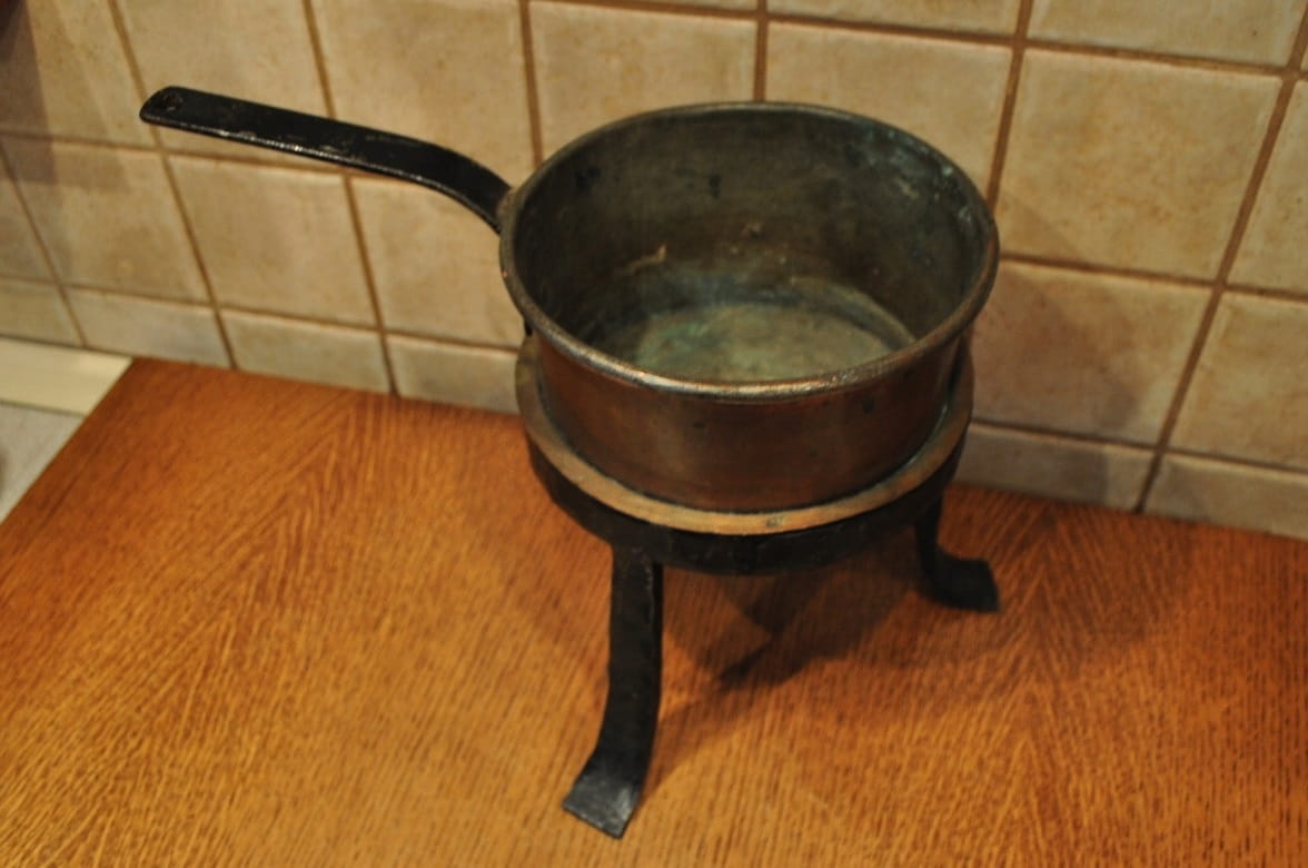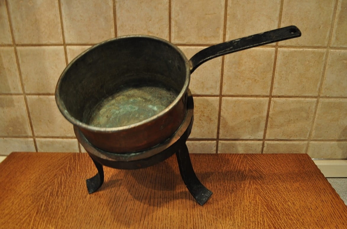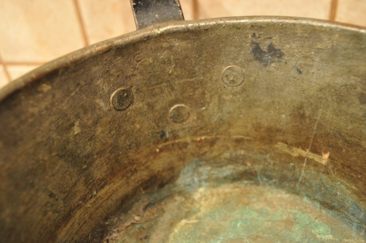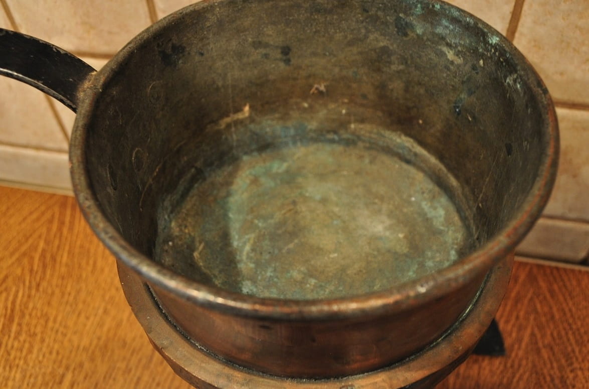 Podgrzewacz nie był czyszczony - pokryty na zewnątrz starą, ciemną patyną.
