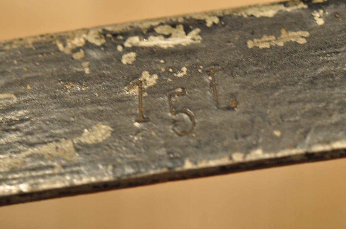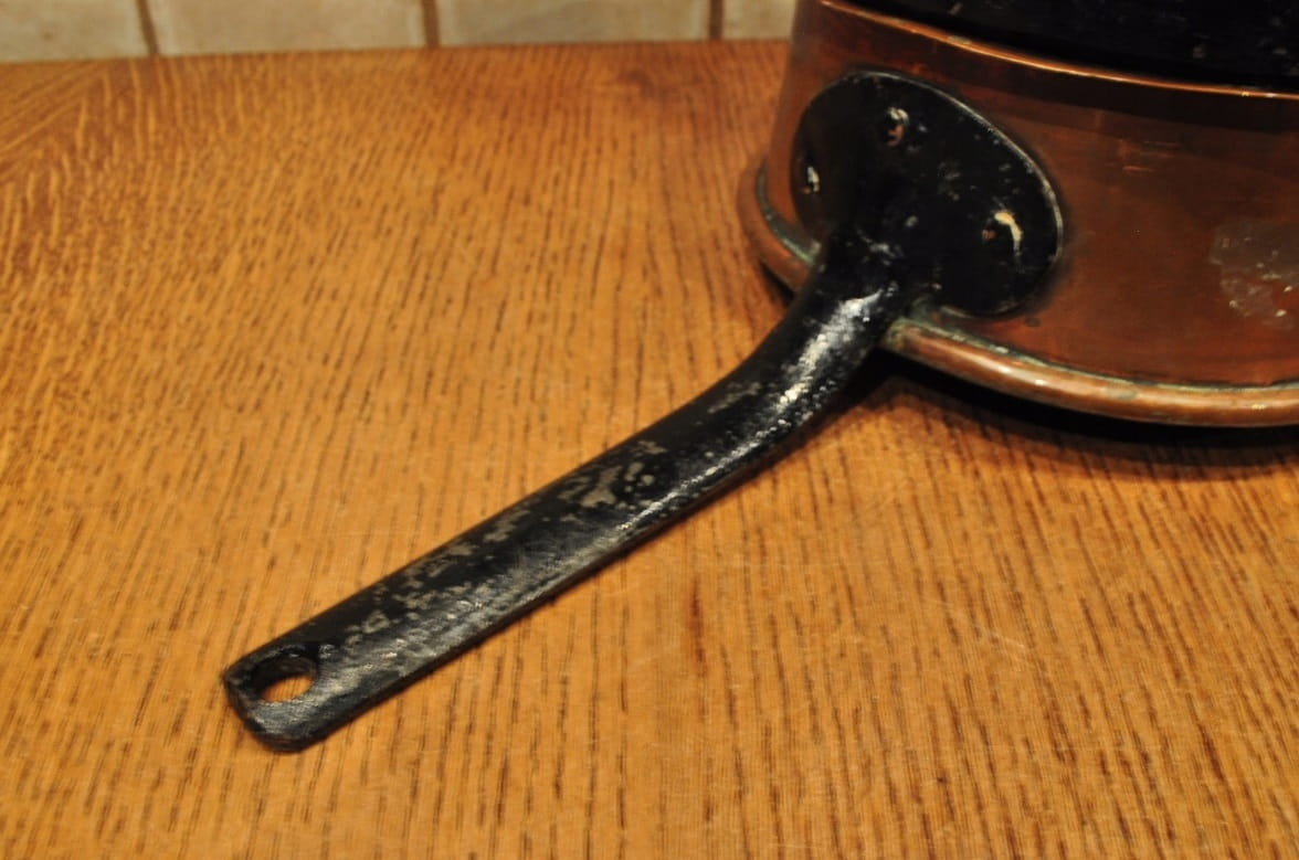 Uchwyt żelazny, nitowany miedzią - stabilny - w bardzo dobrym stanie zachowania.