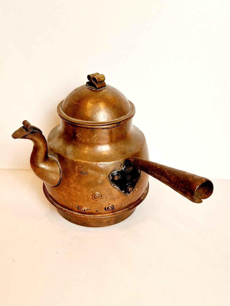 ZABYTKOWY (XIX / XX w) SYGNOWANY (NHS) MIEDZIANY PODGRZEWACZ ZAPARZACZ - CZAJNIK