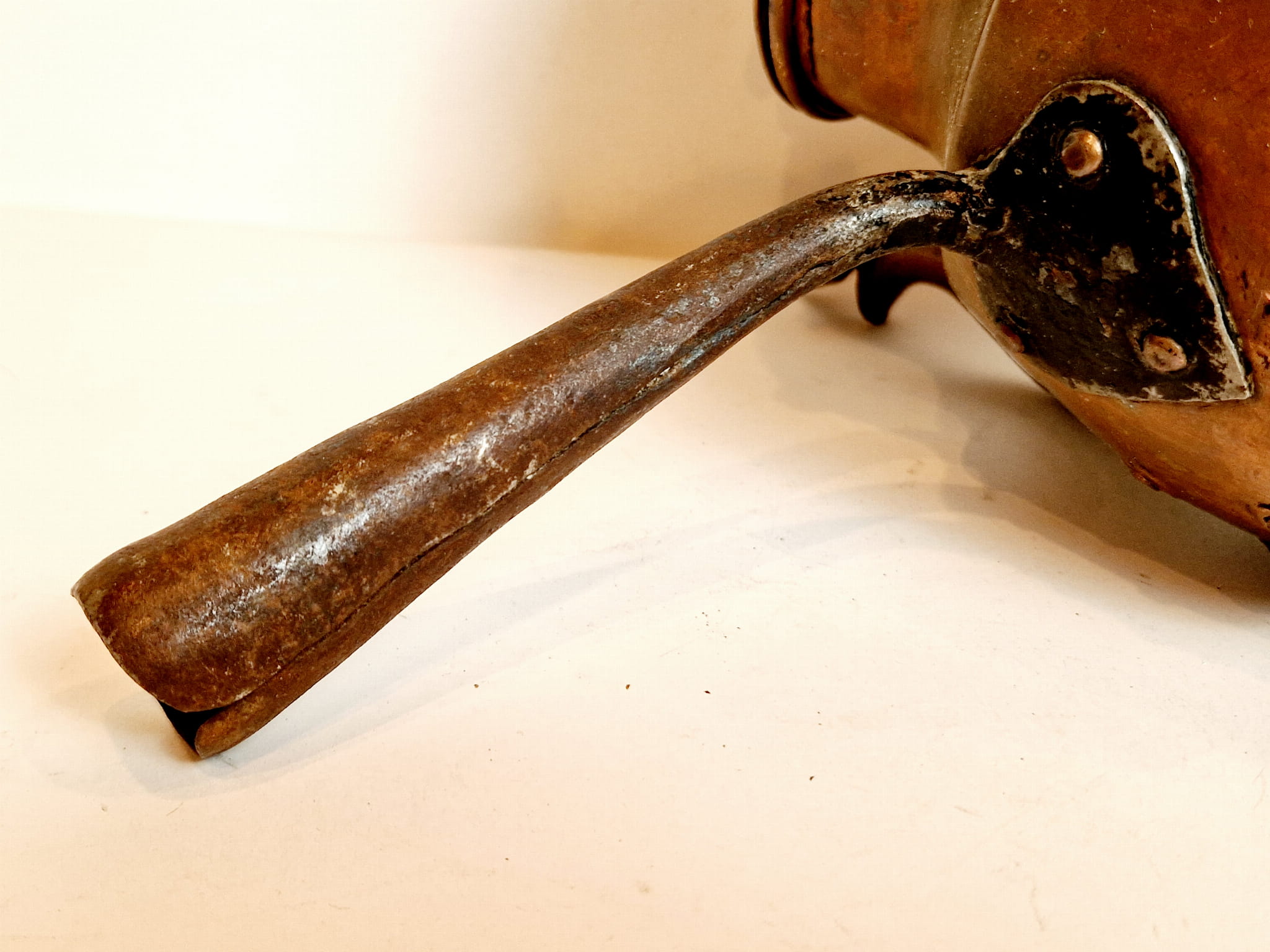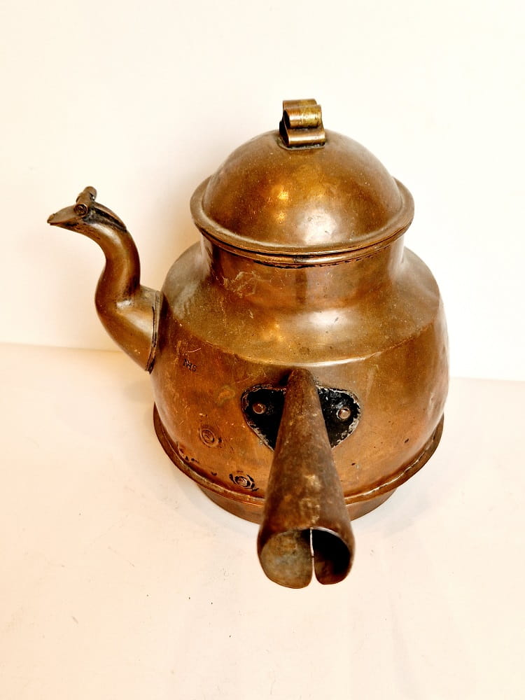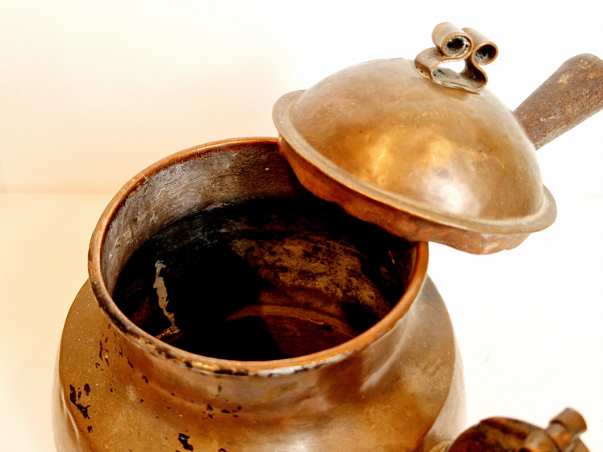 (XIX / XX w) ZABYTKOWY MIEDZIANY PODGRZEWACZ / ZAPARZACZ - CZAJNIK Z FAJERKĄ