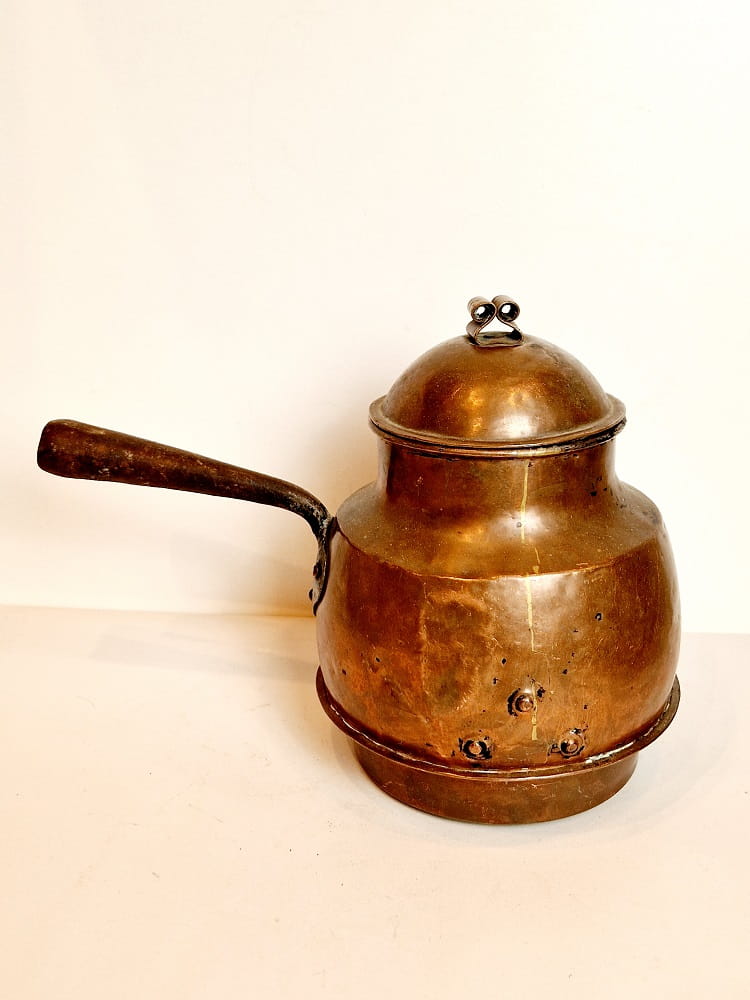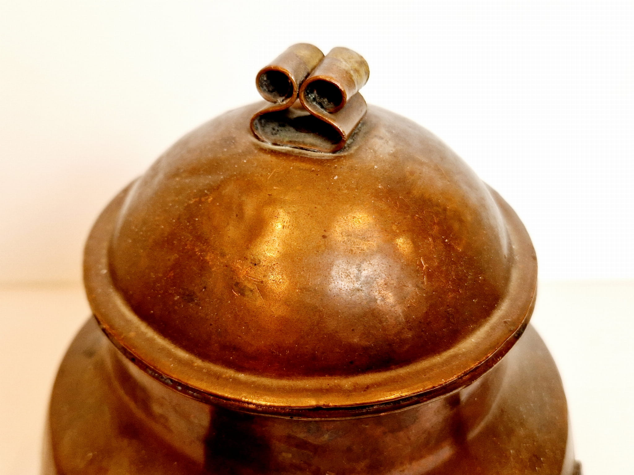 Pokrywka oryginalna, miedziana - z miedzianym, ozdobnym uchwytem.