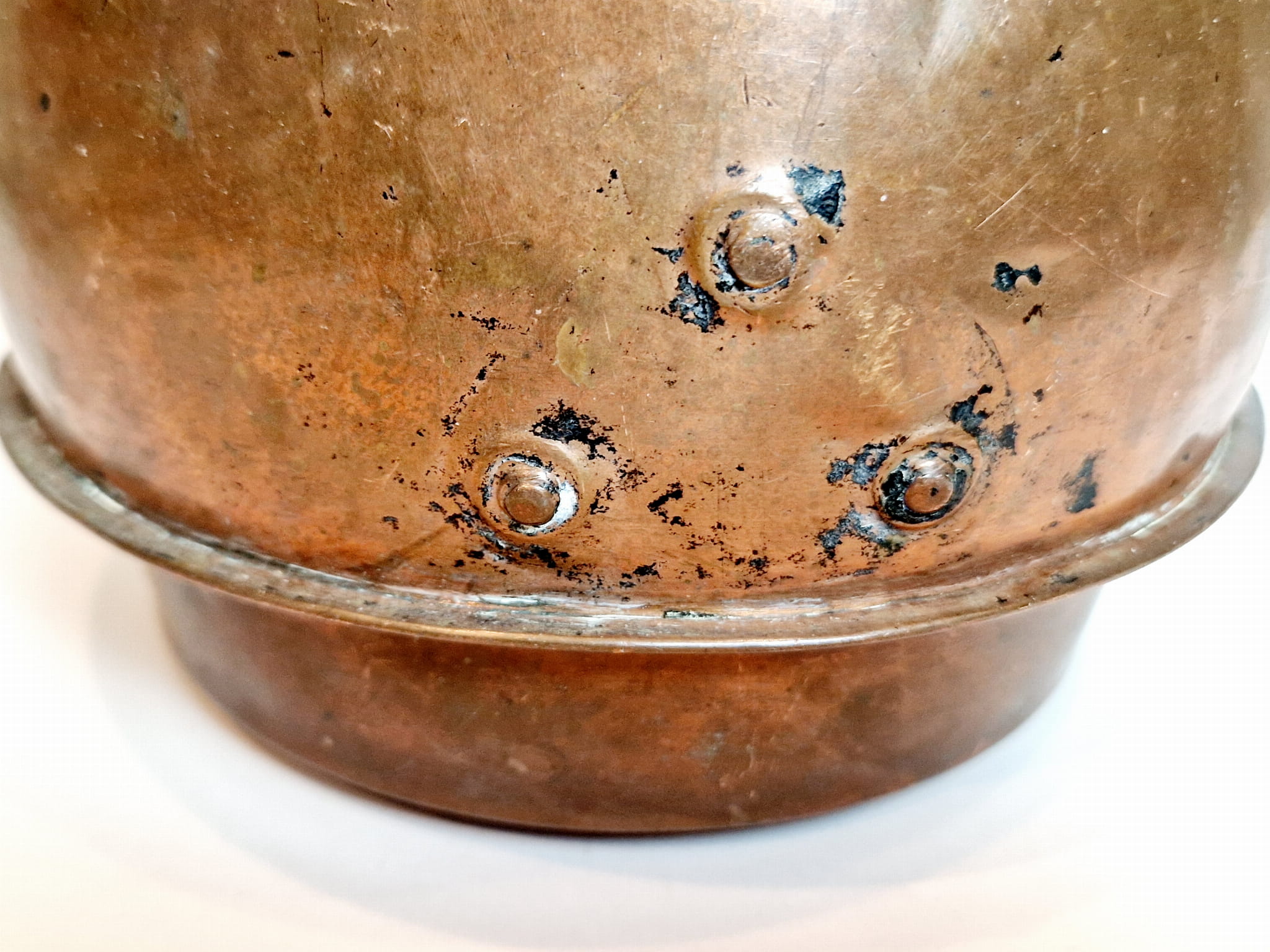 Nóżki żelazne, nitowane miedzią - stabilne - w bardzo dobrym stanie zachowania.
