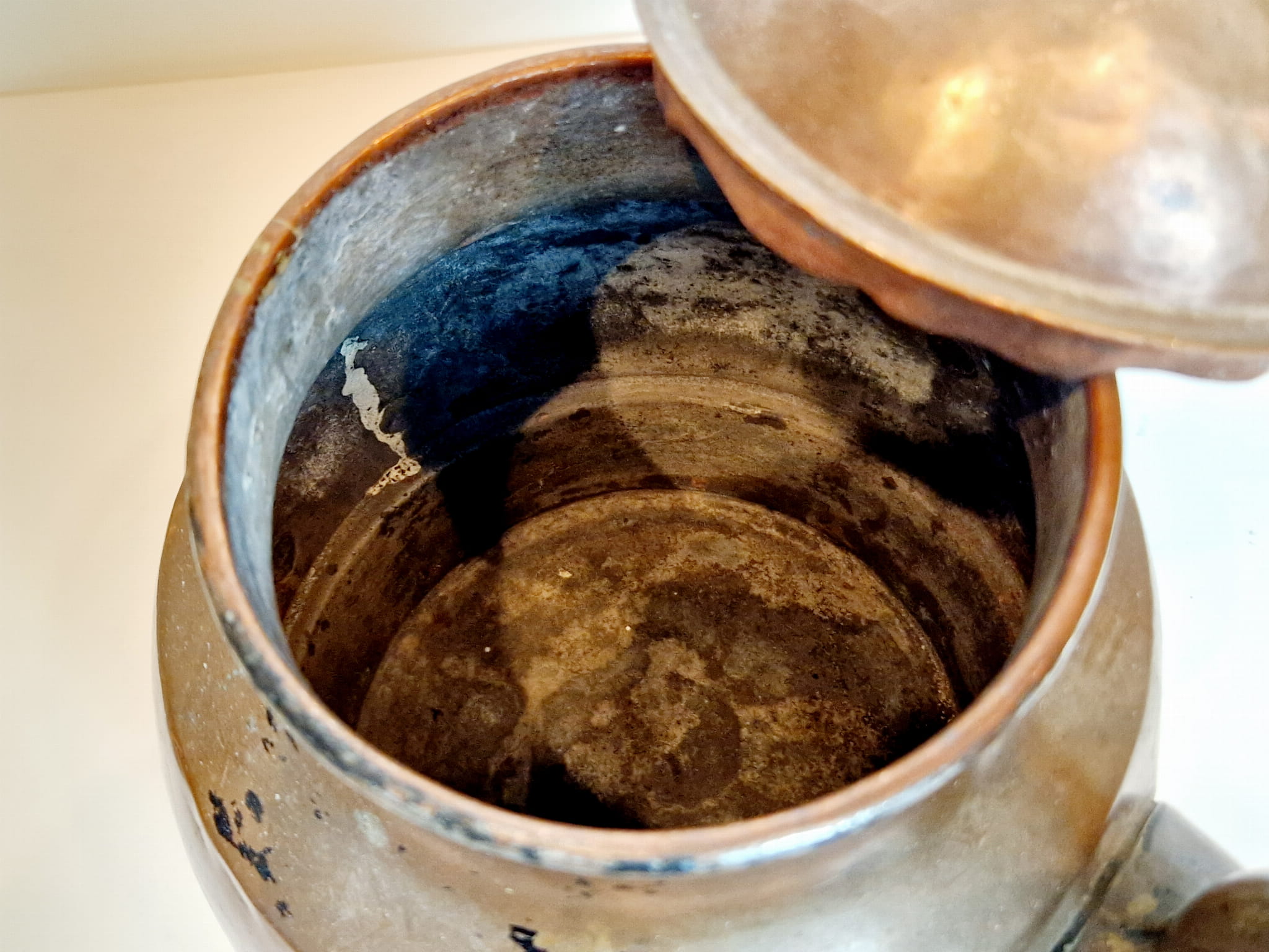 Podgrzewacz nie był czyszczony - pokryty na zewnątrz starą, ciemną patyną.