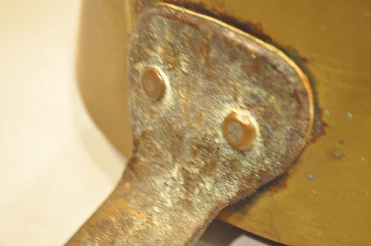 Uchwyt żelazny - nitowany mosiądzem - w bardzo dobrym stanie zachowania.