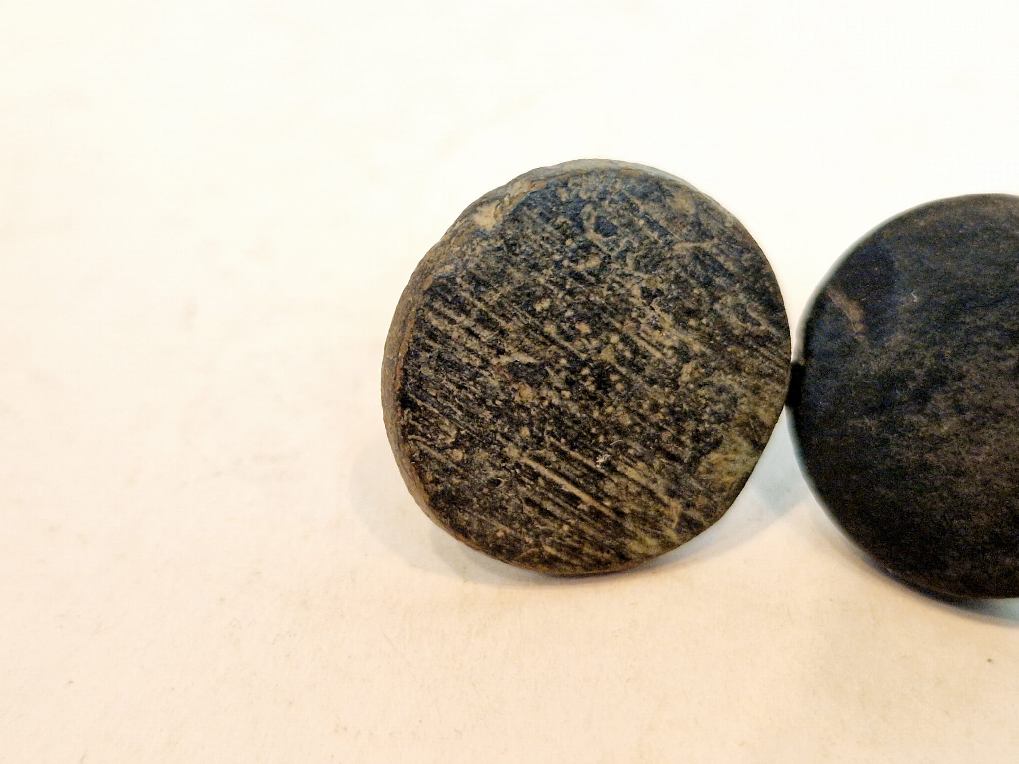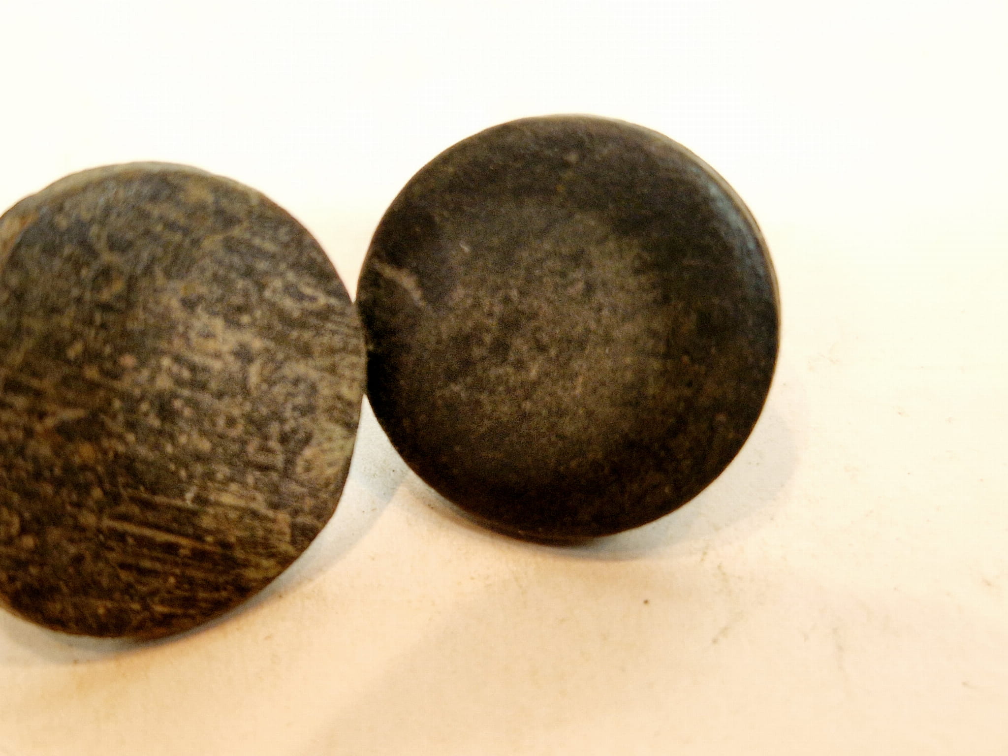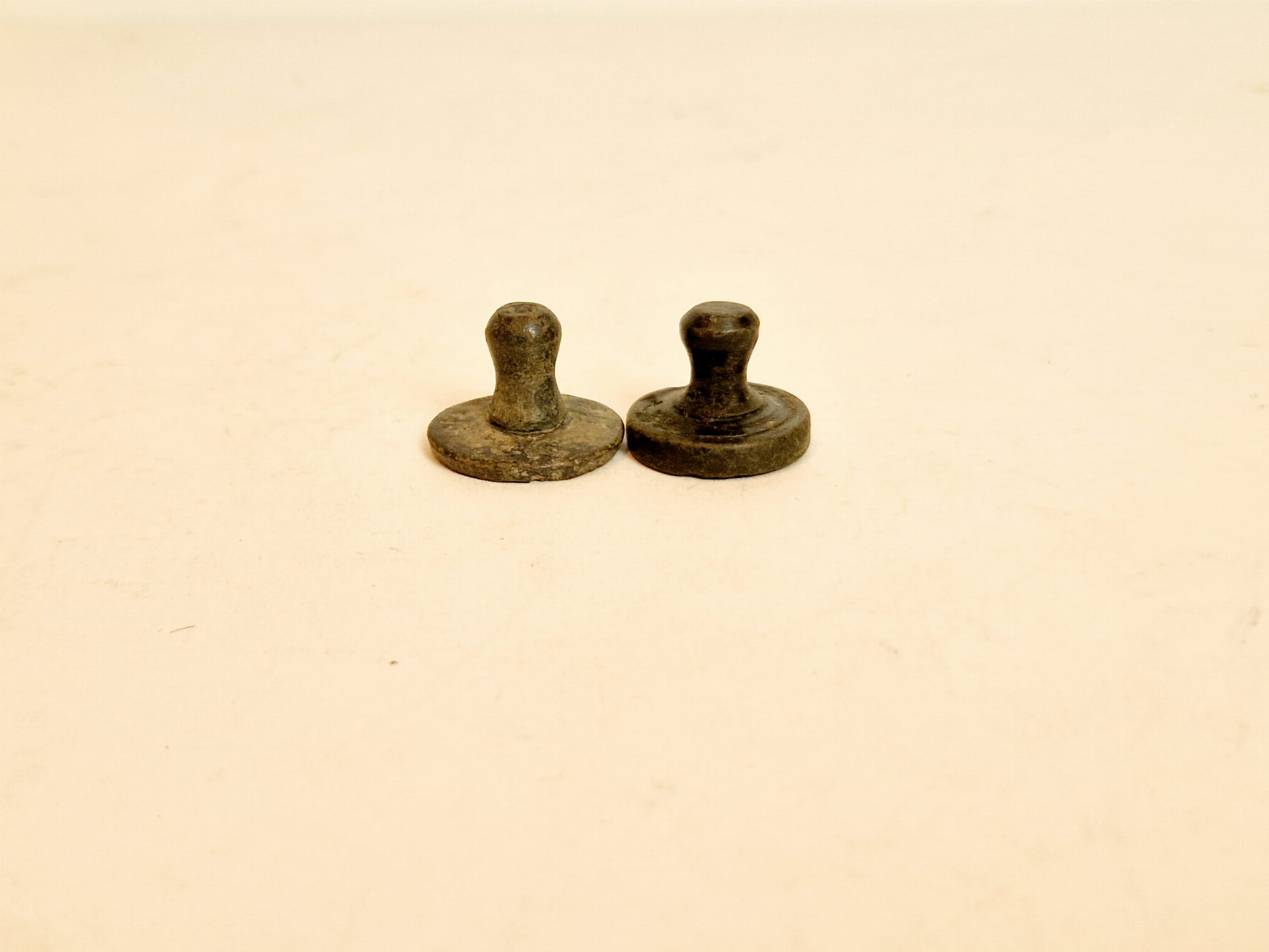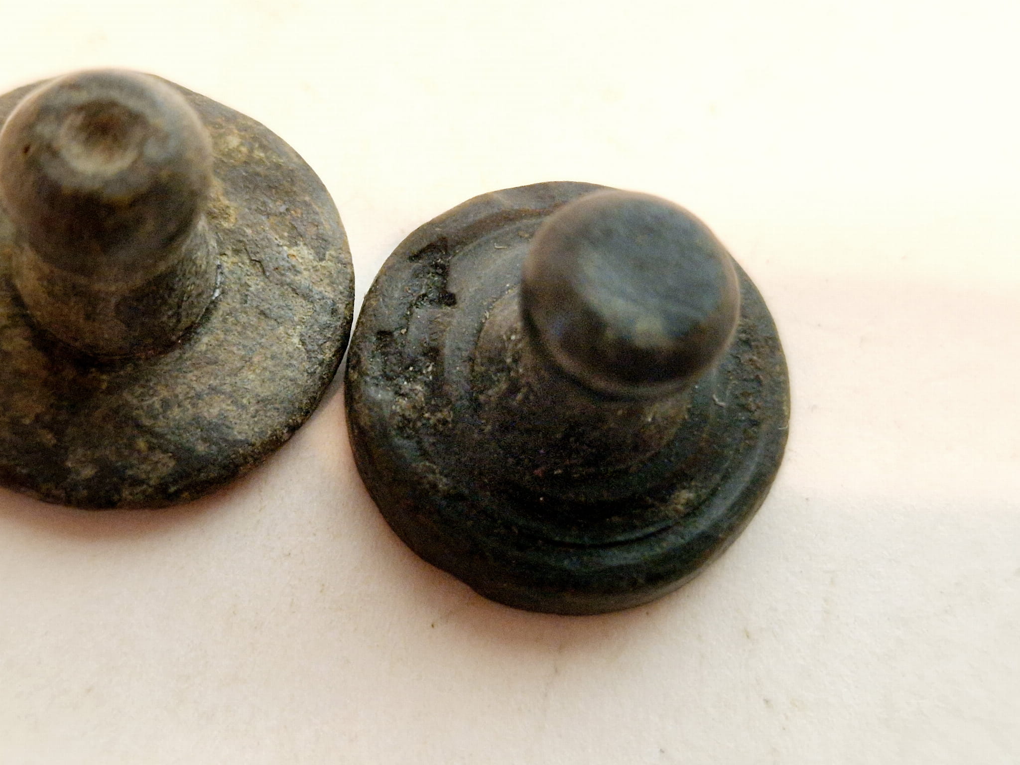 Odważniki nie były czyszczone, pokryte są oryginalną, starą, ciemną patyną.