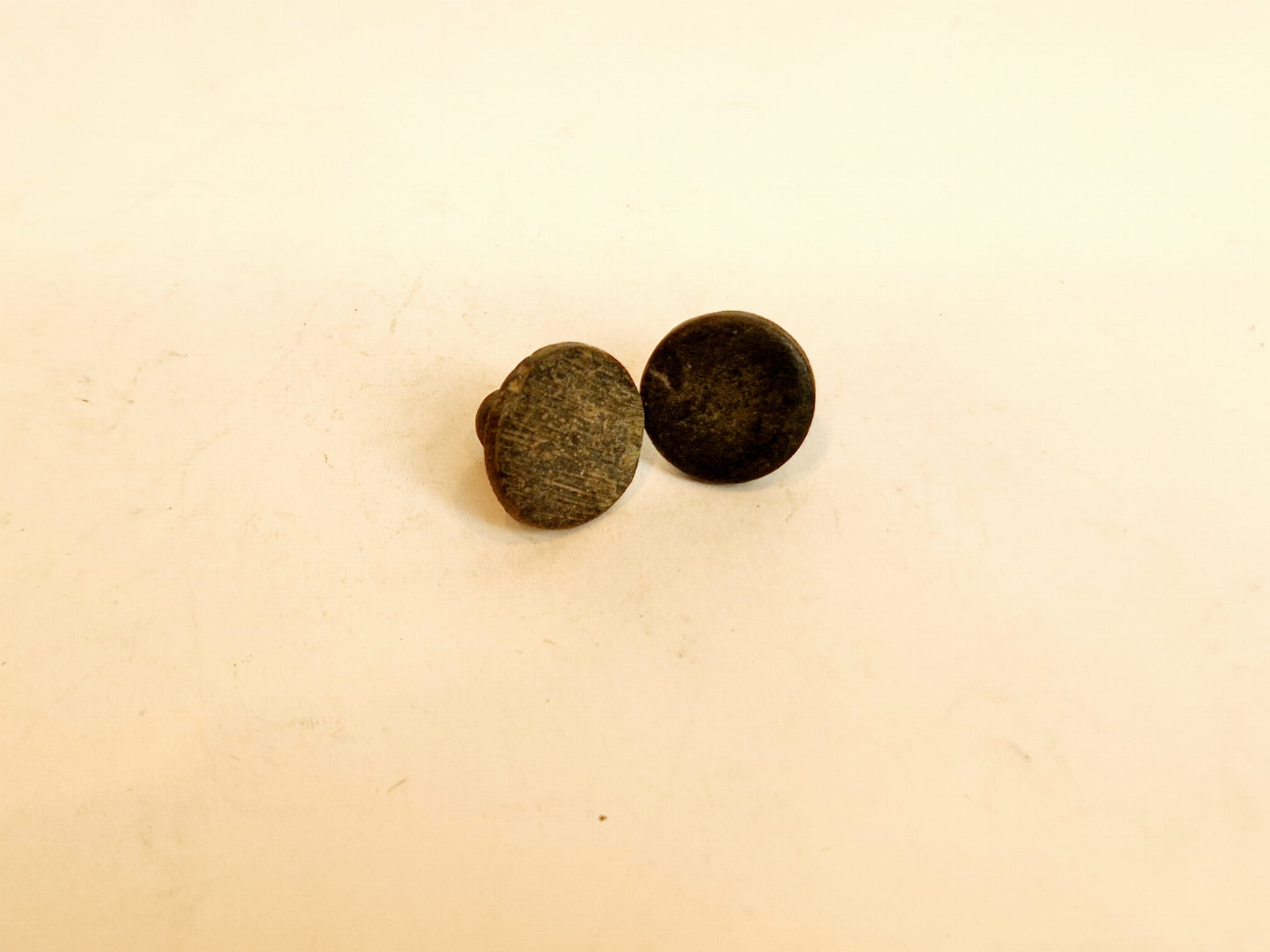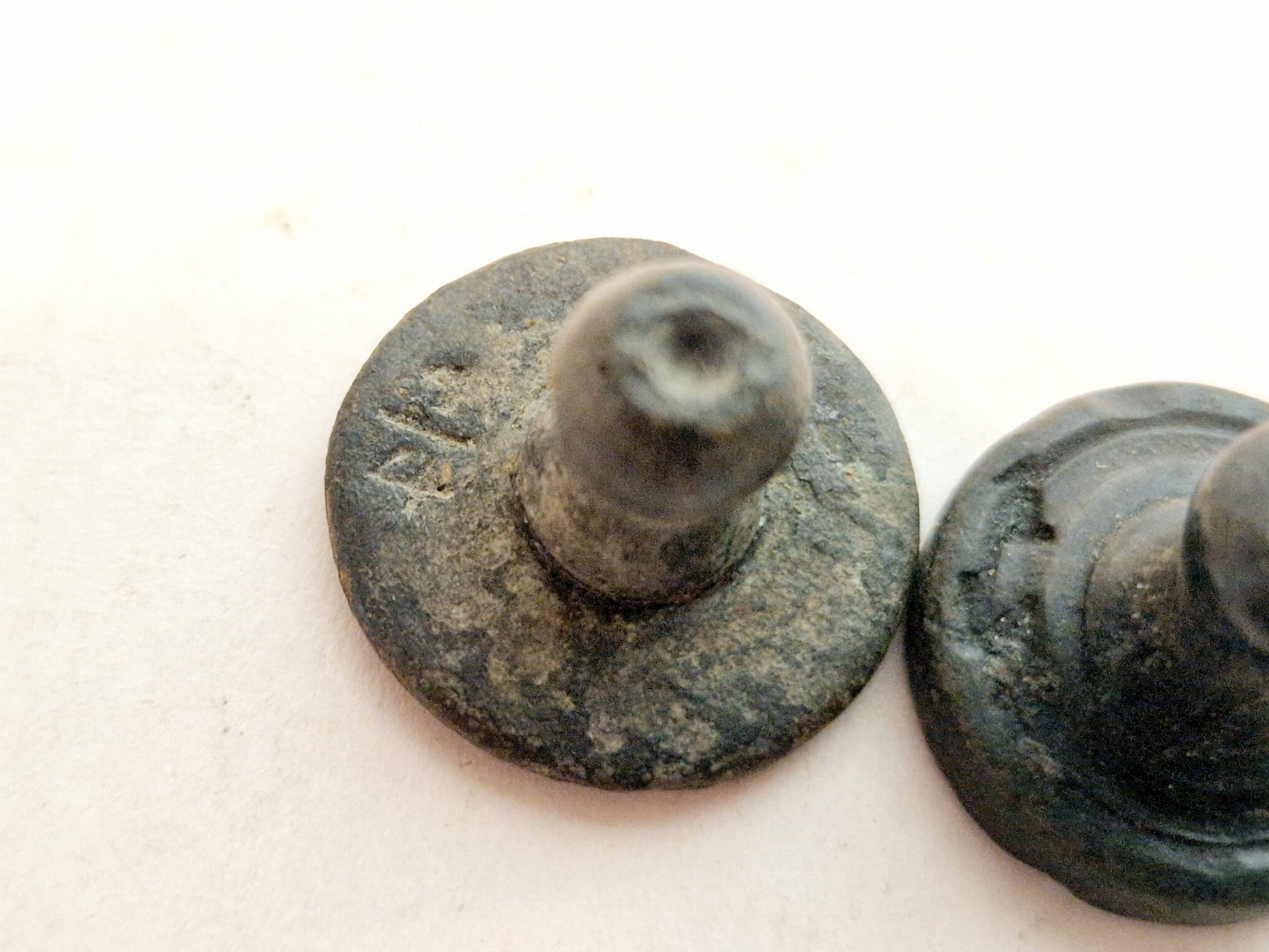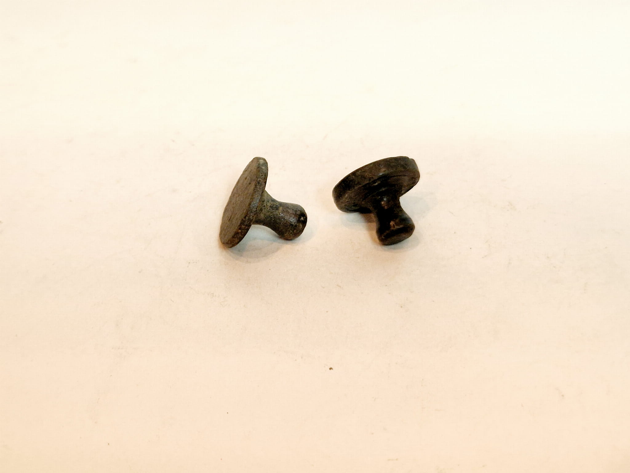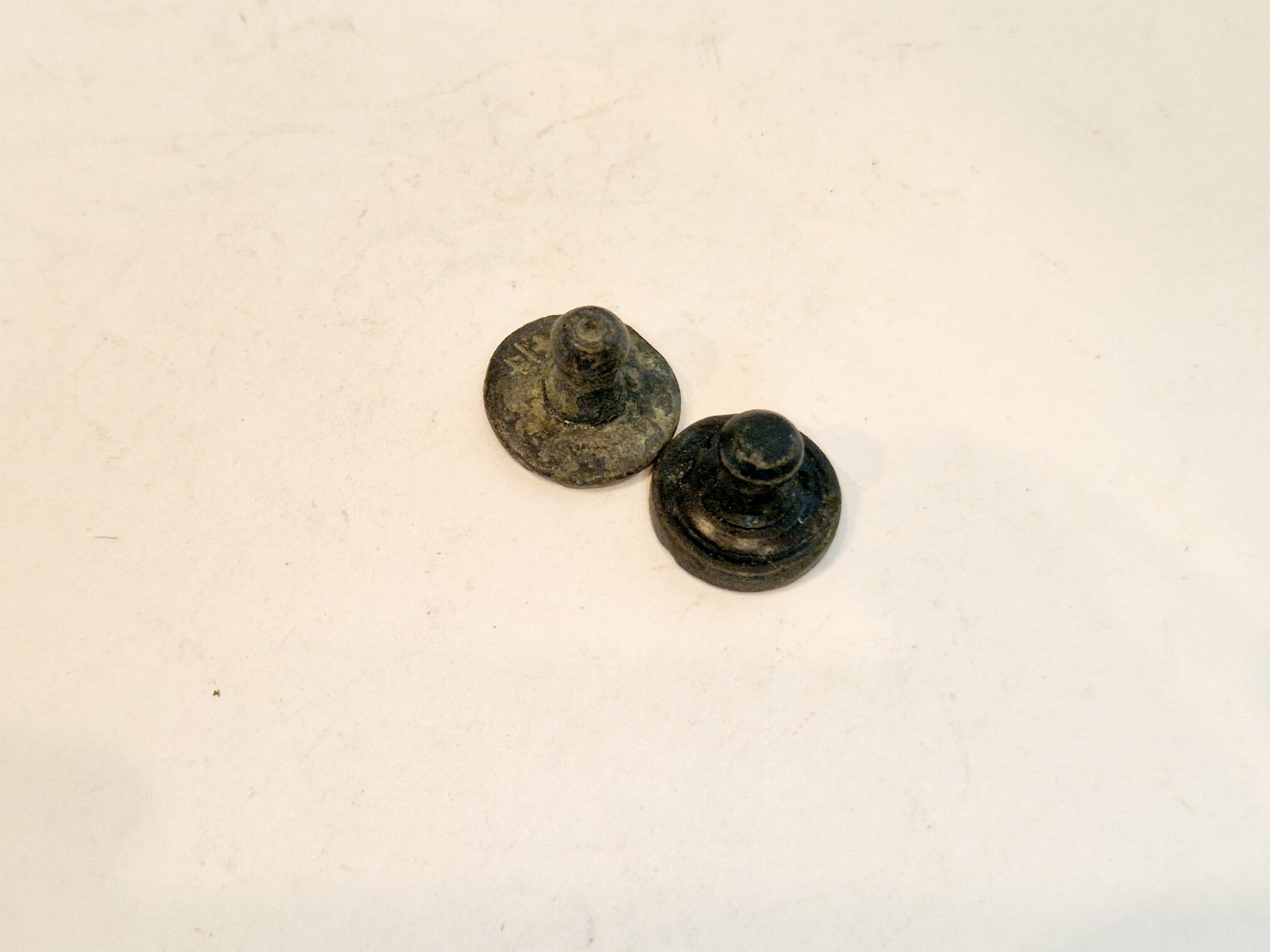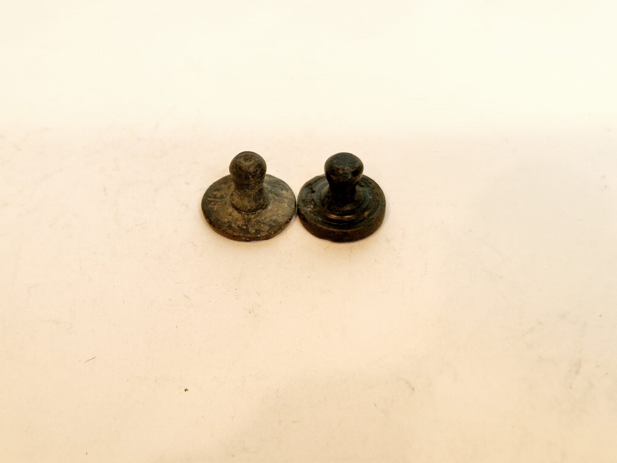 ZABYTKOWE (XIX w) PŁASKIE - CYLINDRYCZNE Z GŁÓWKĄ ODWAŻNIKI FUNTOWE Z BRĄZU (odważniki do wagi dziesiętnej)