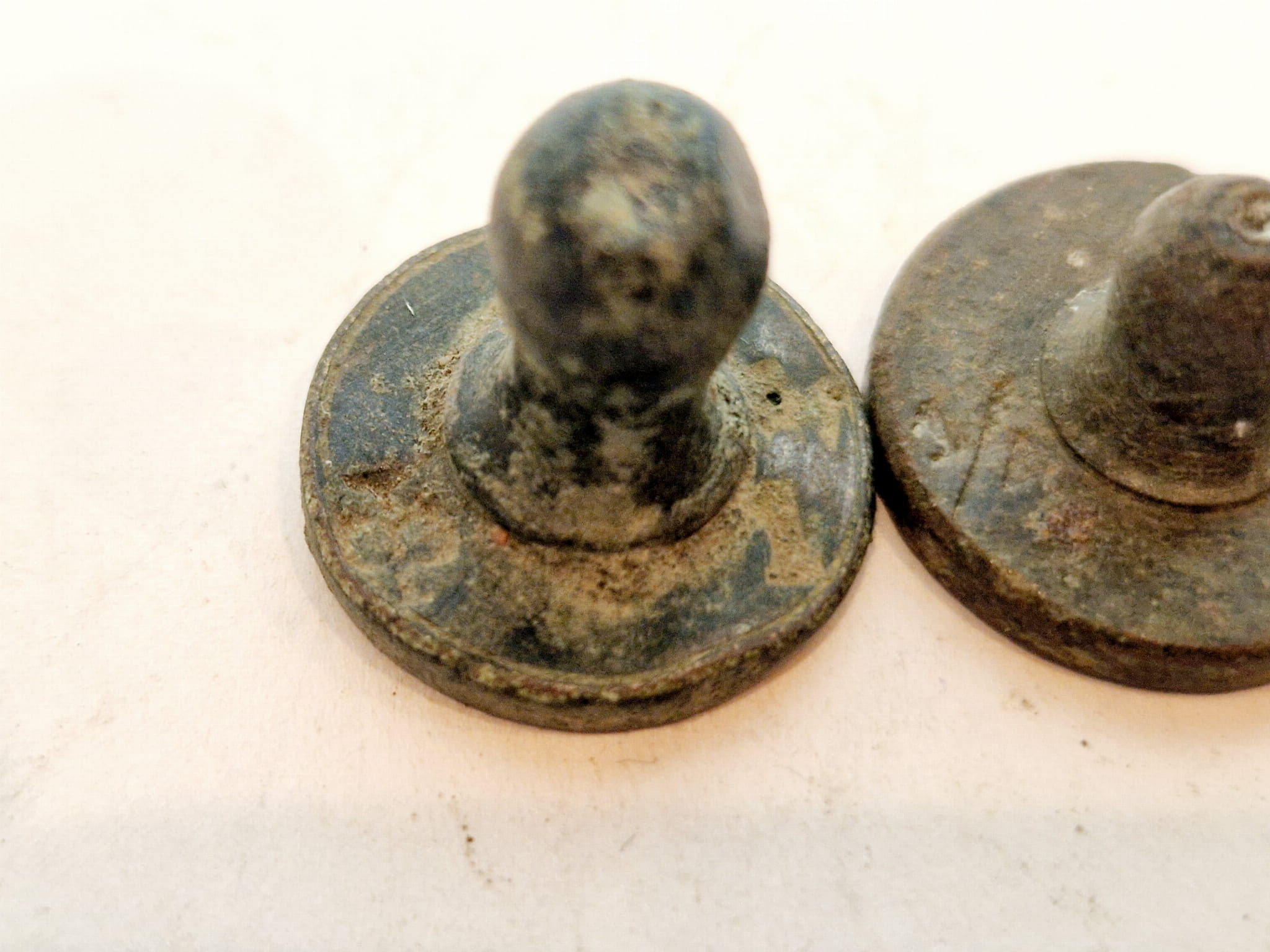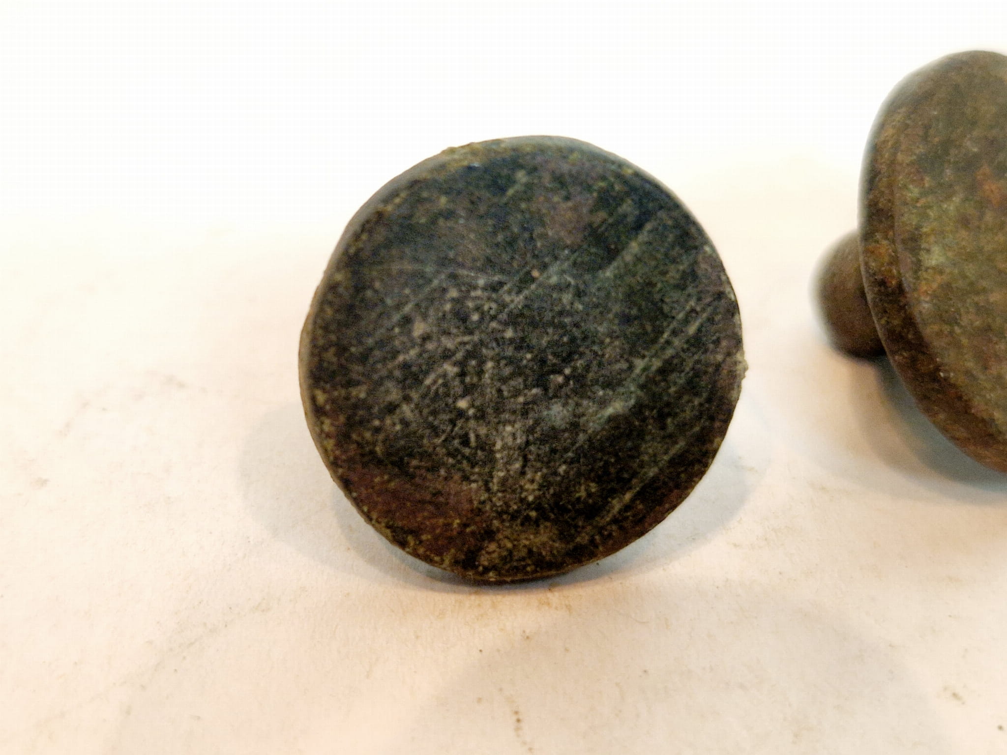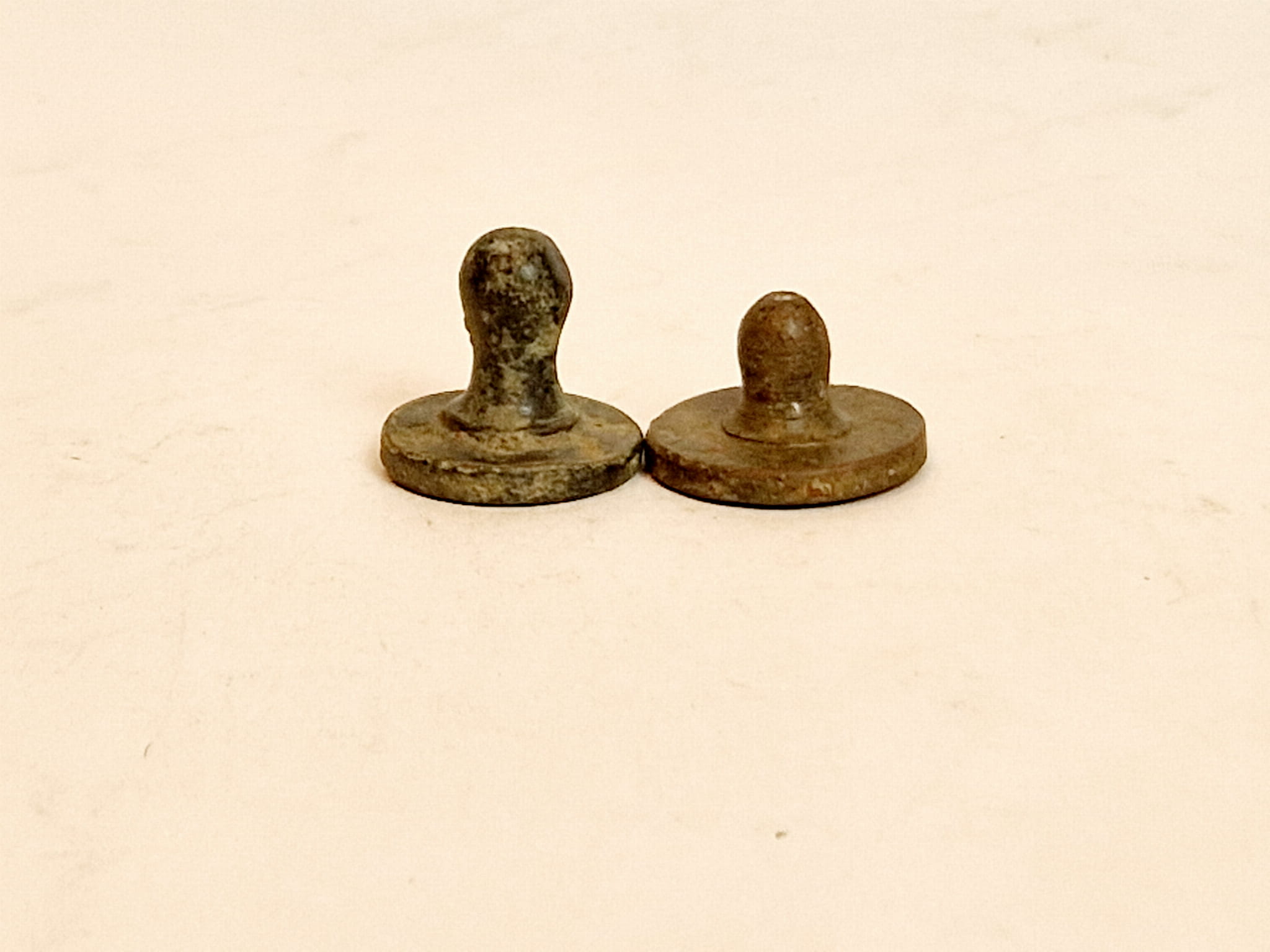 ZABYTKOWE (XIX w) PŁASKIE - CYLINDRYCZNE Z GŁÓWKĄ ODWAŻNIKI FUNTOWE Z BRĄZU (odważniki do wagi dziesiętnej)