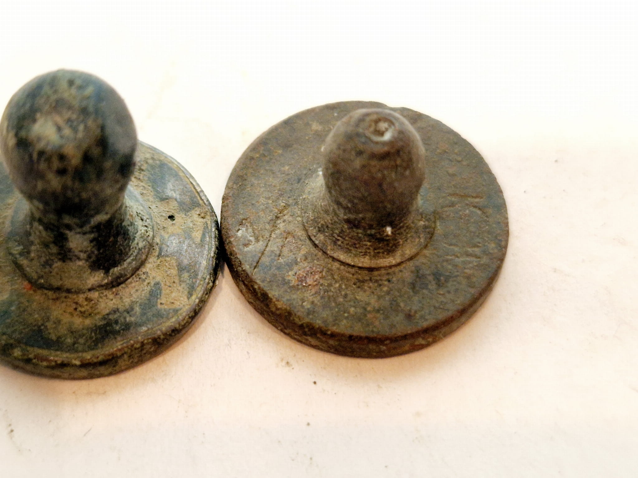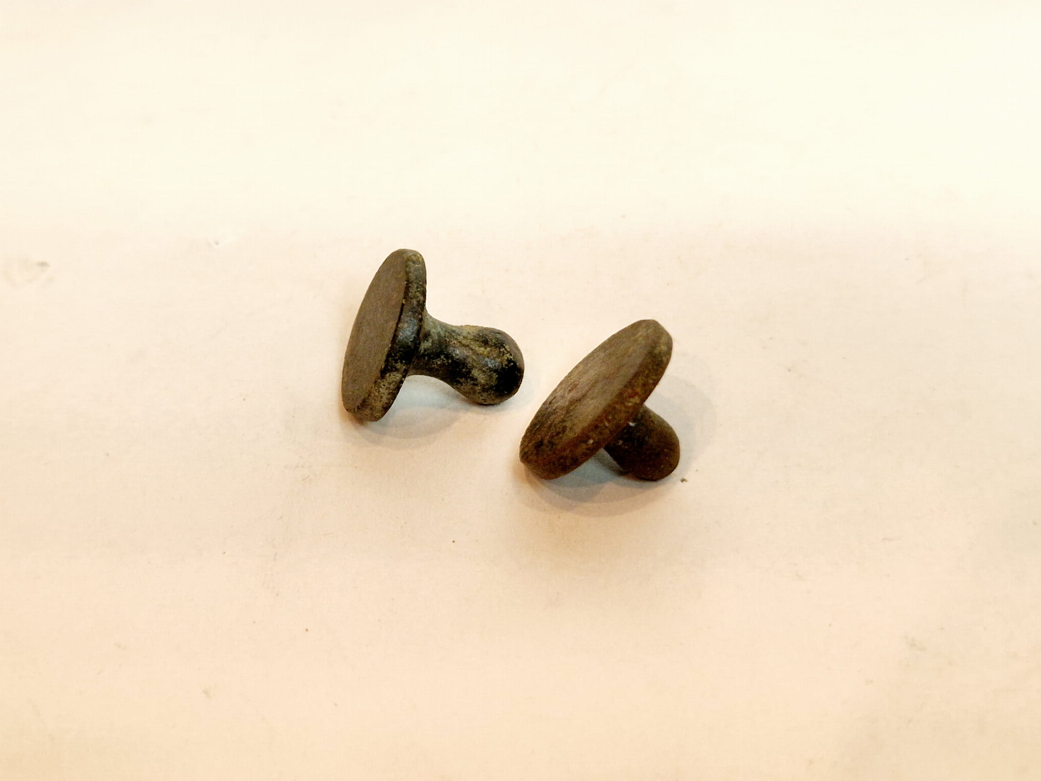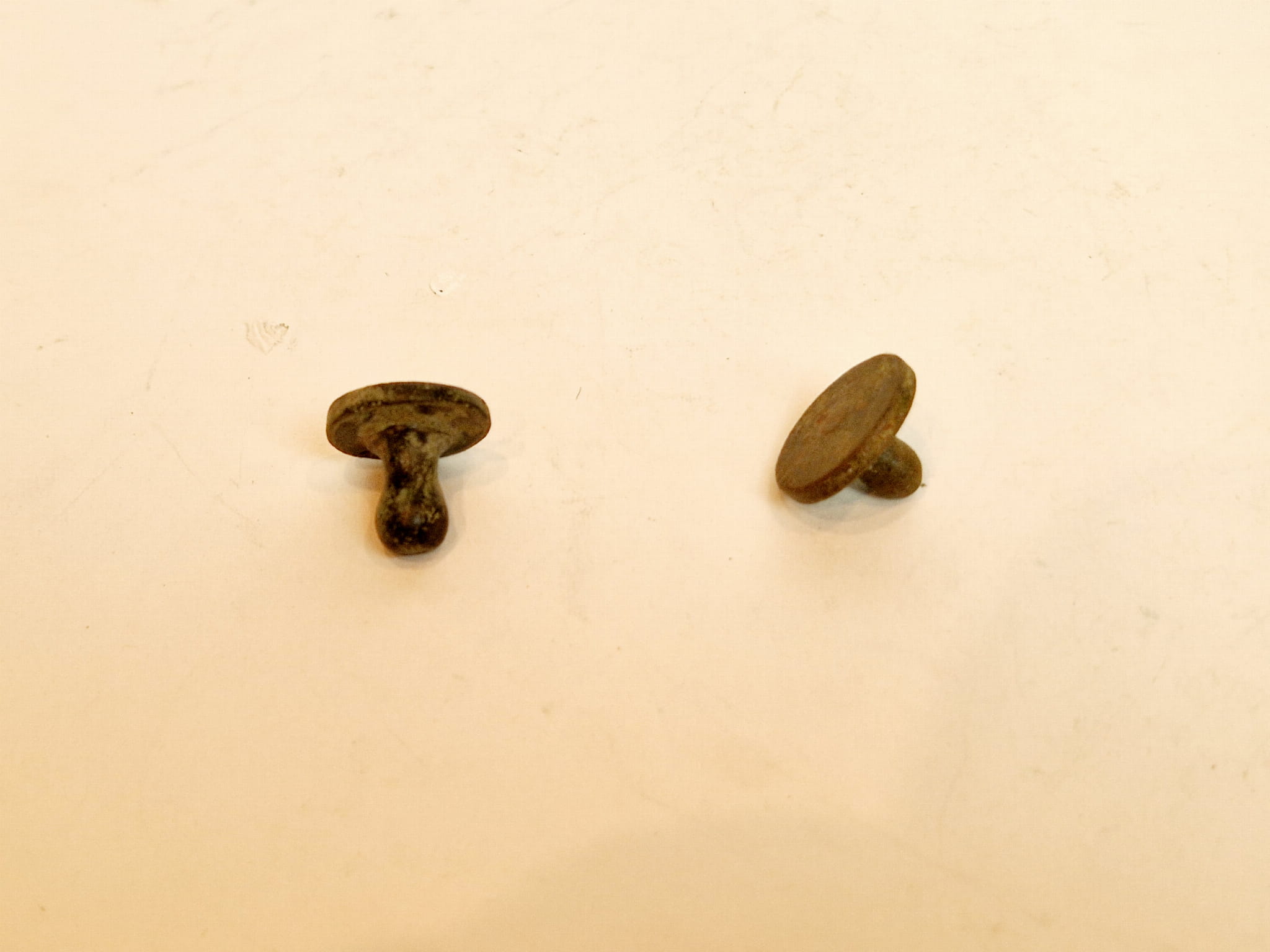 ZABYTKOWE (XIX w) PŁASKIE - CYLINDRYCZNE Z GŁÓWKĄ ODWAŻNIKI FUNTOWE Z BRĄZU (odważniki do wagi dziesiętnej)