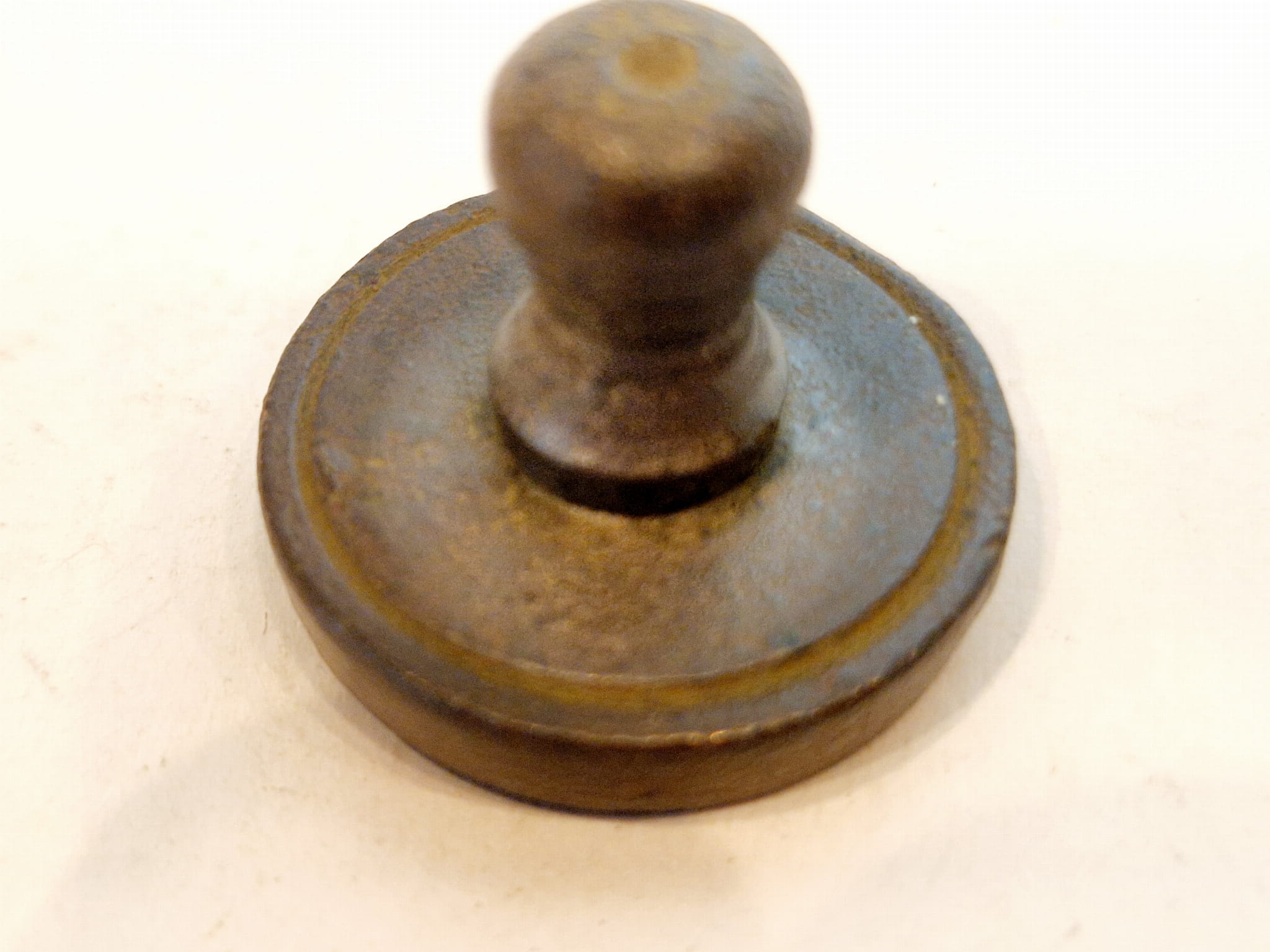 ZABYTKOWY (1880) PŁASKI - CYLINDRYCZNY Z GŁÓWKĄ ODWAŻNIK FUNTOWY Z BRĄZU (odważnik do wagi dziesiętnej)