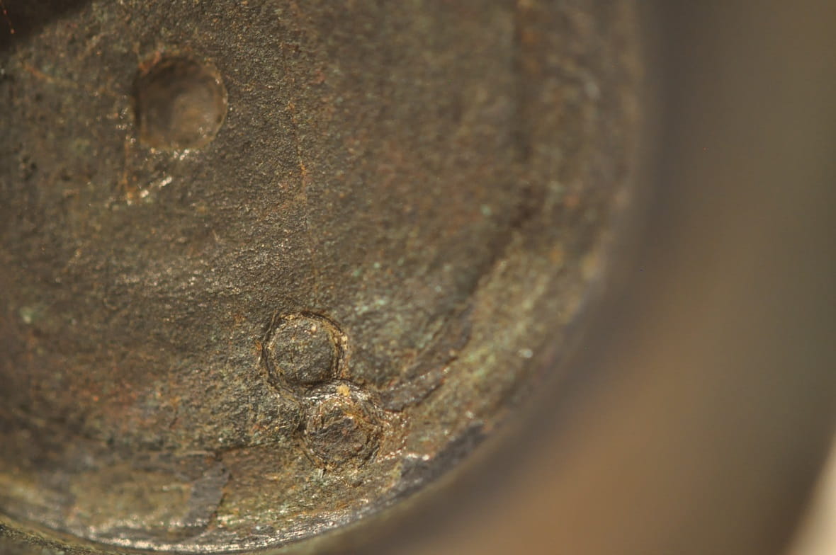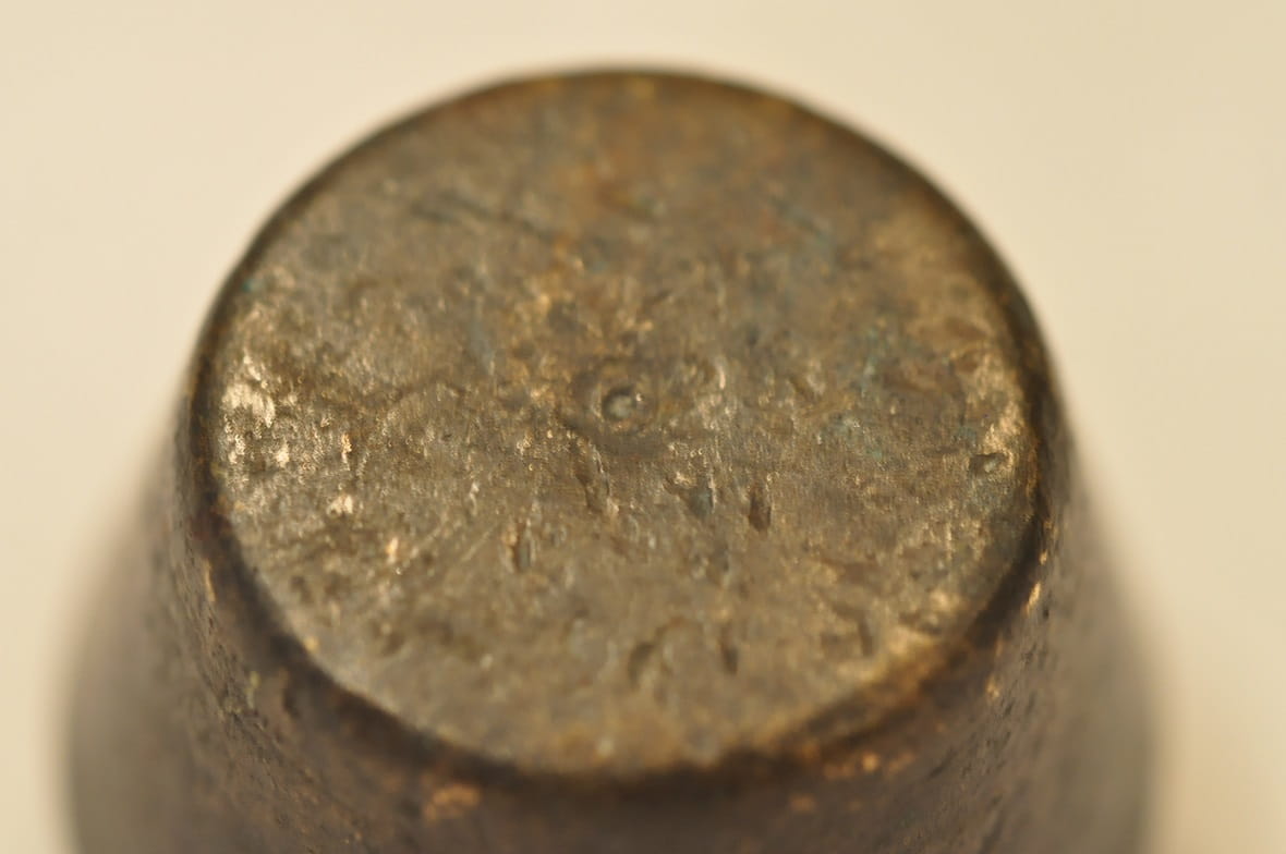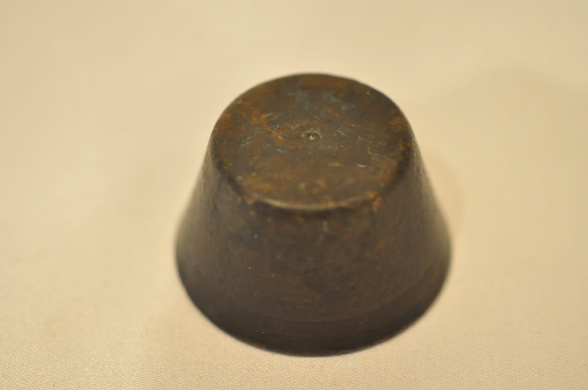Odważnik nie był czyszczony - pokryty jest starą patyną.