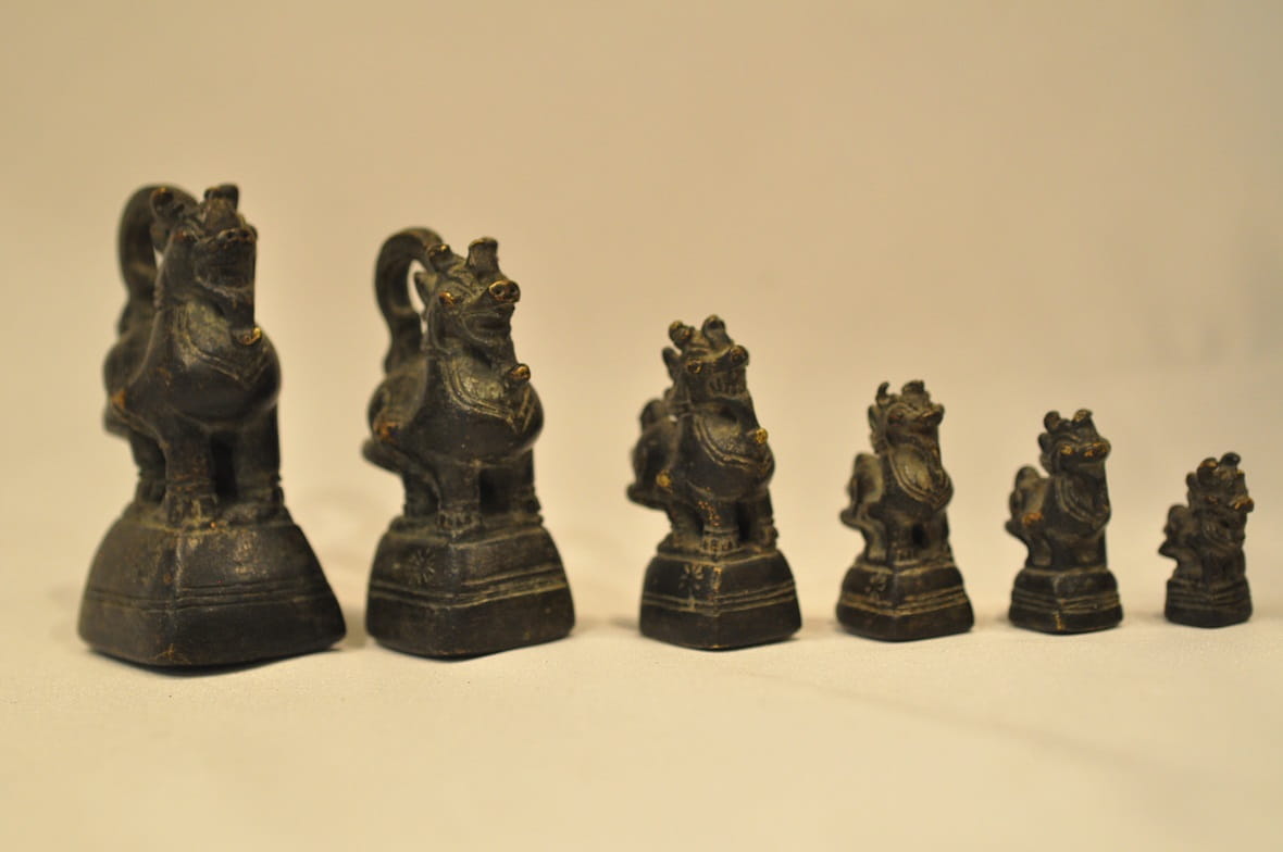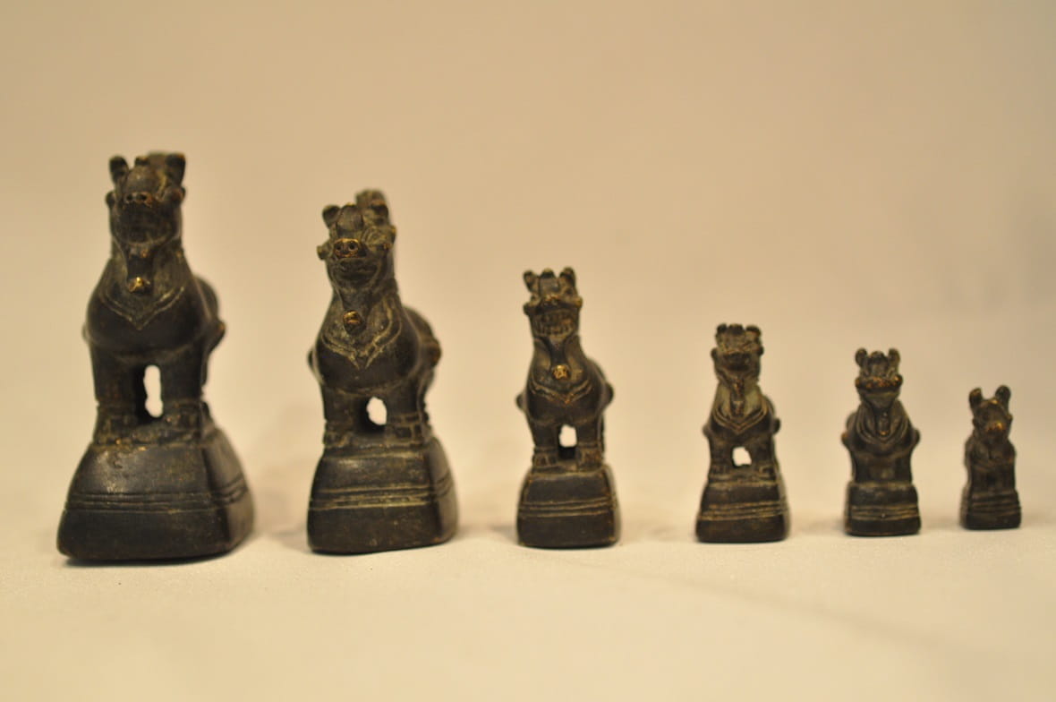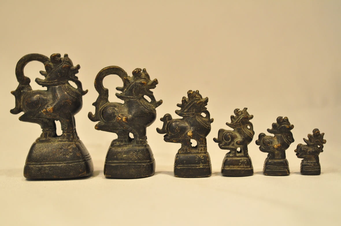 Odważniki używane początkowo przez królewskich urzędników do ważenia kruszców, potem w handlu opium.