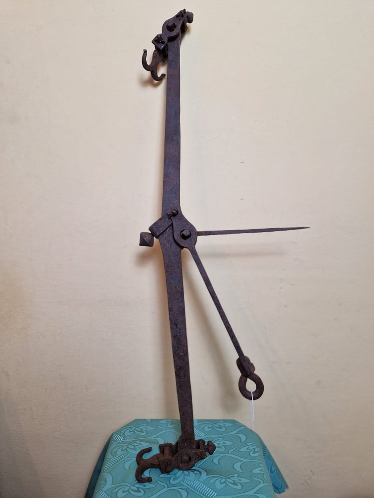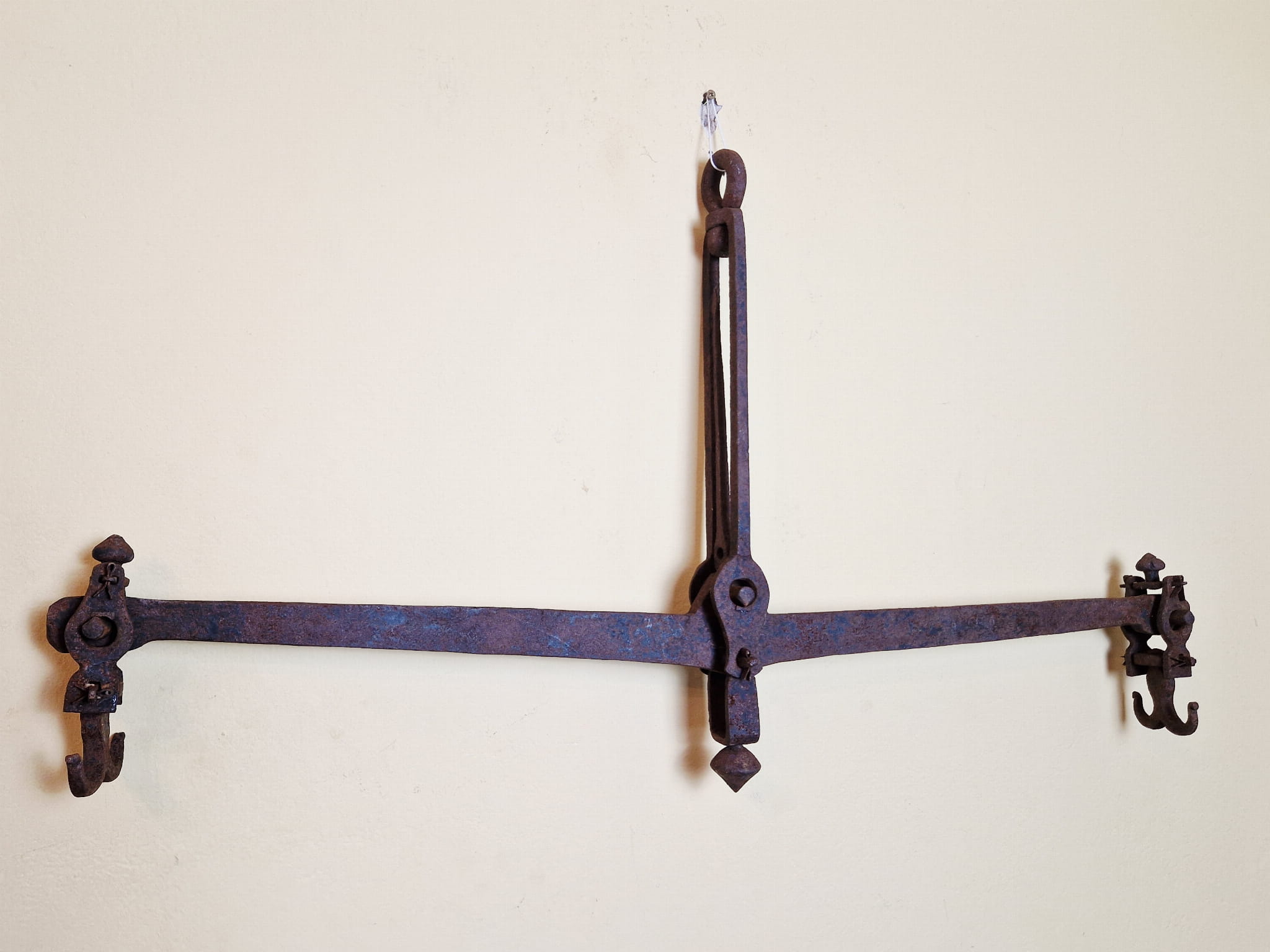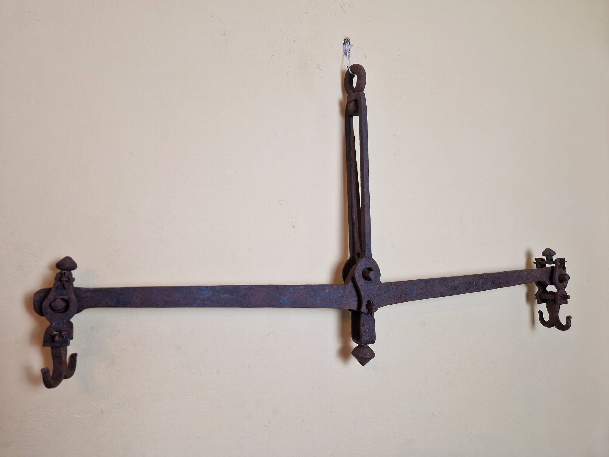 ZABYTKOWA (XVIII / XIX w) MASYWNA (94,5 cm / 6,40 kg) WISZĄCA KUTA ŻELAZNA WAGA SZALKOWA