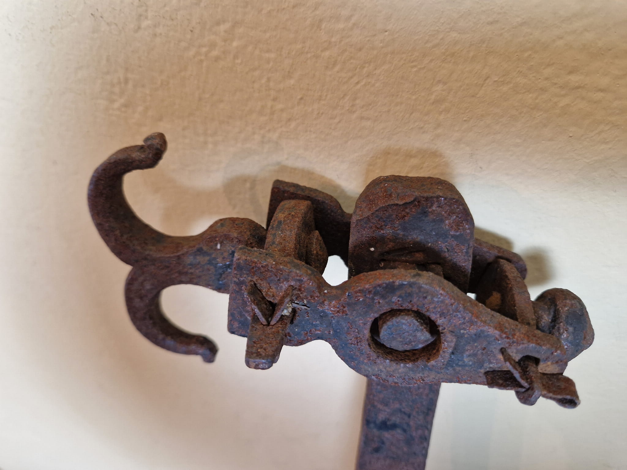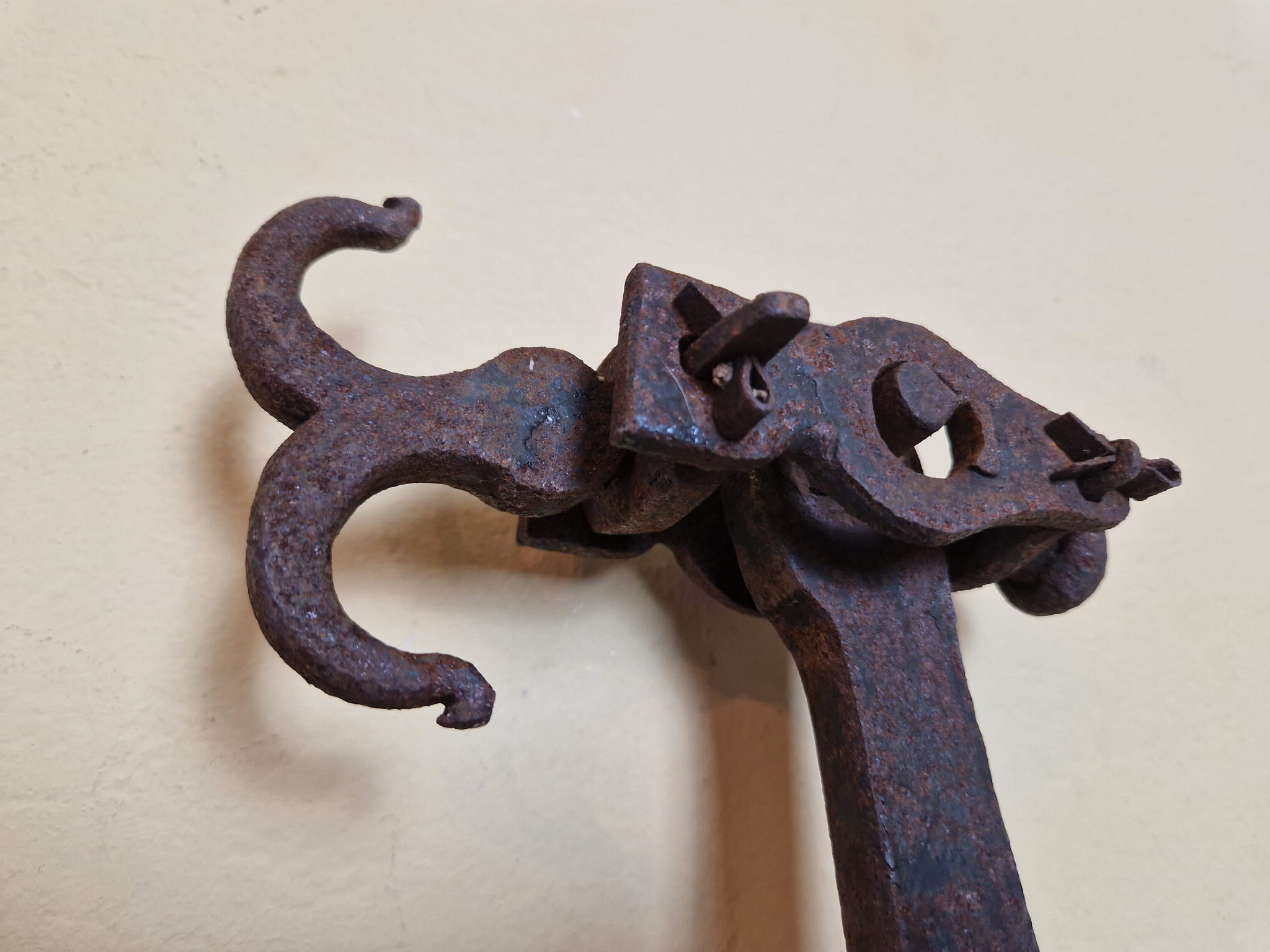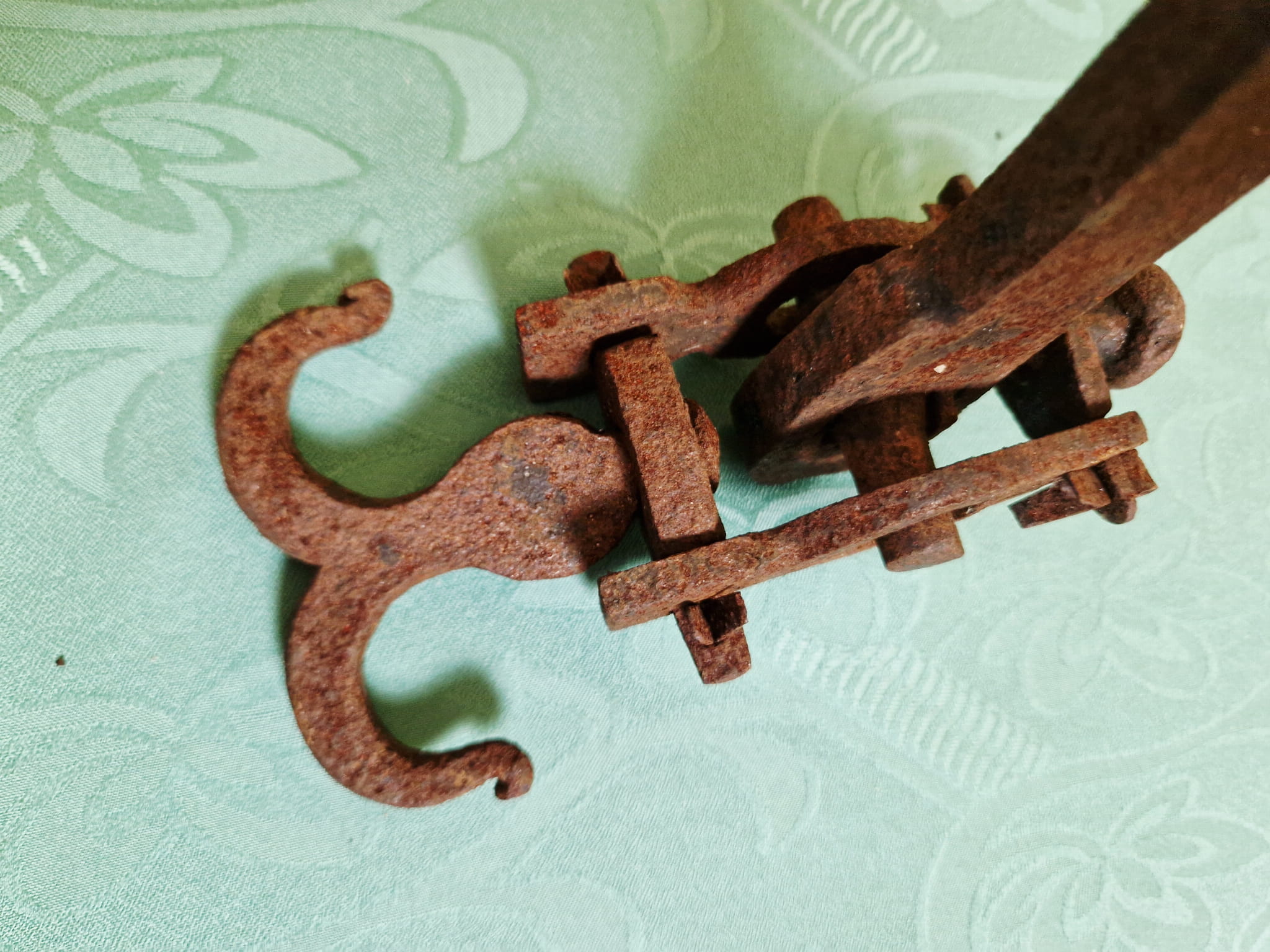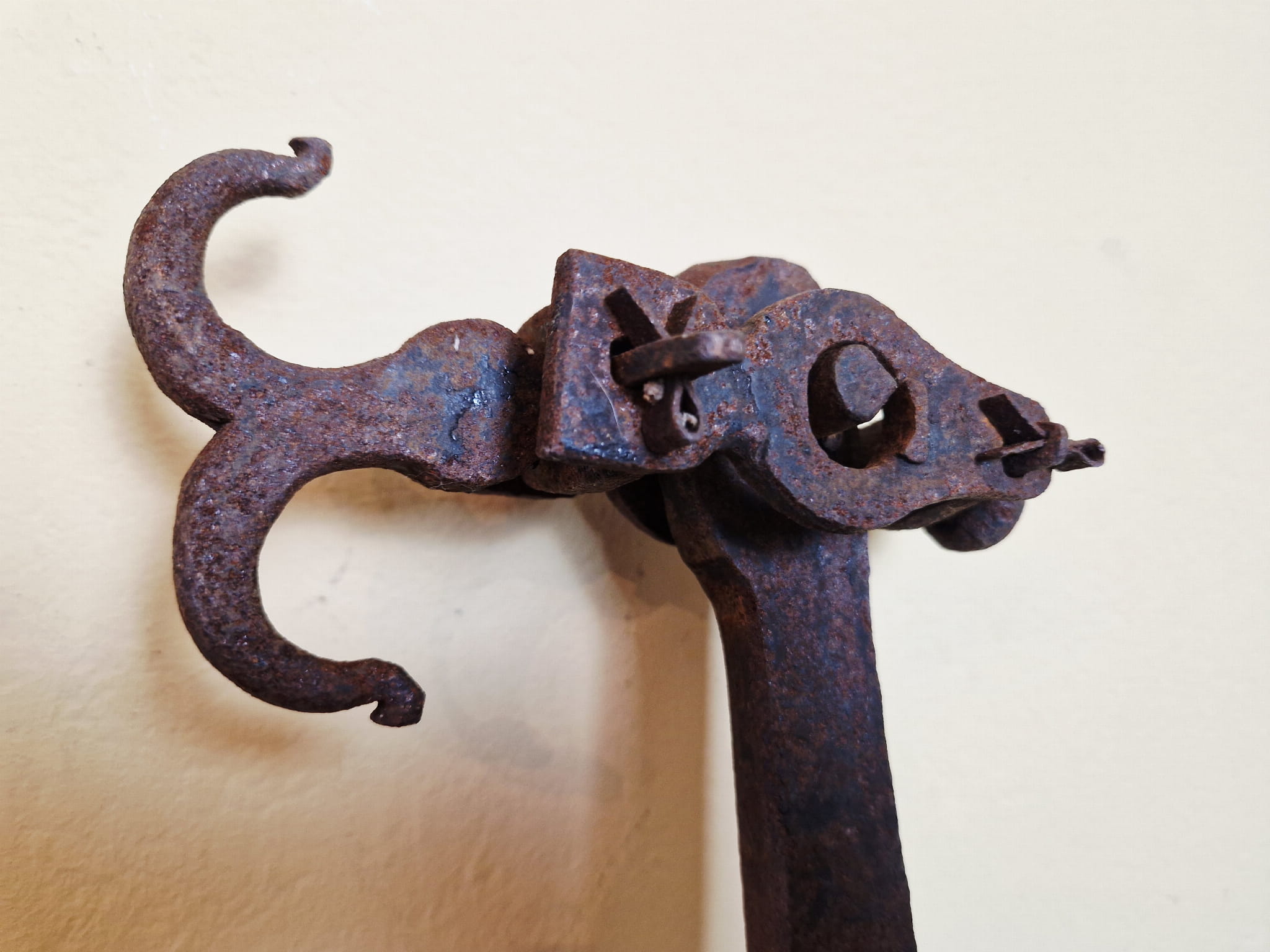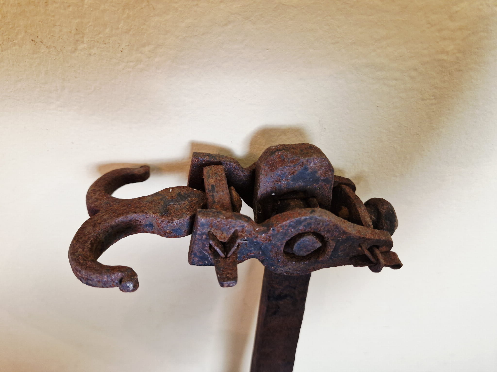 (XVIII / XIX w) ZABYTKOWA MASYWNA (94,5 cm / 2,14 kg) KUTA ŻELAZNA WAGA WISZĄCA